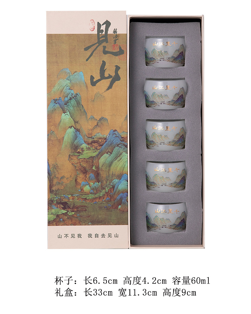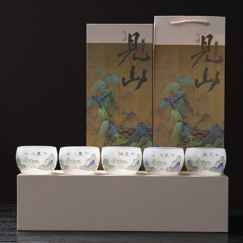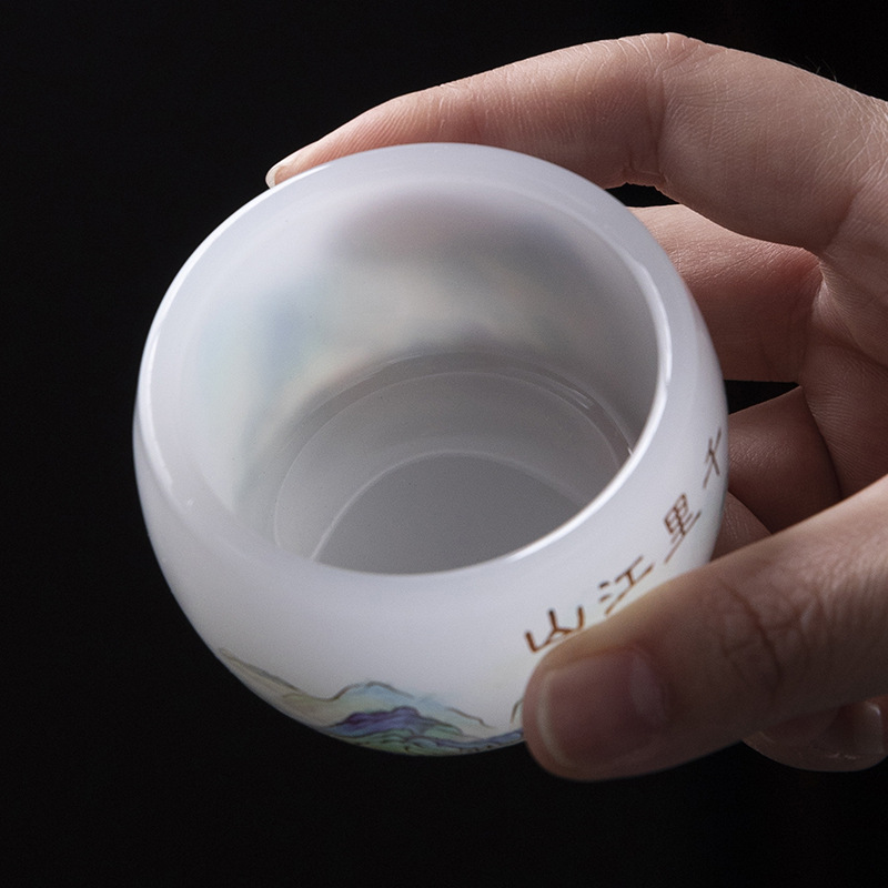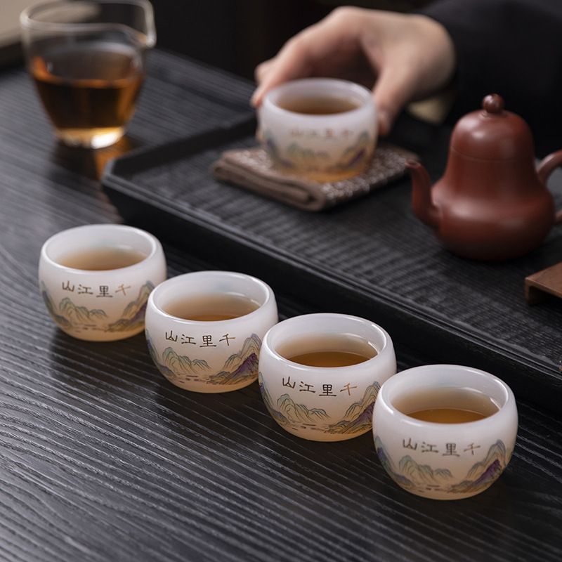 Bộ cốc chủ nhân Qianli Jiangshan Liuli Bộ dụng cụ trà Kung Fu Sản phẩm gia dụng tách trà cốc trà cao cấp sang trọng nhẹ
