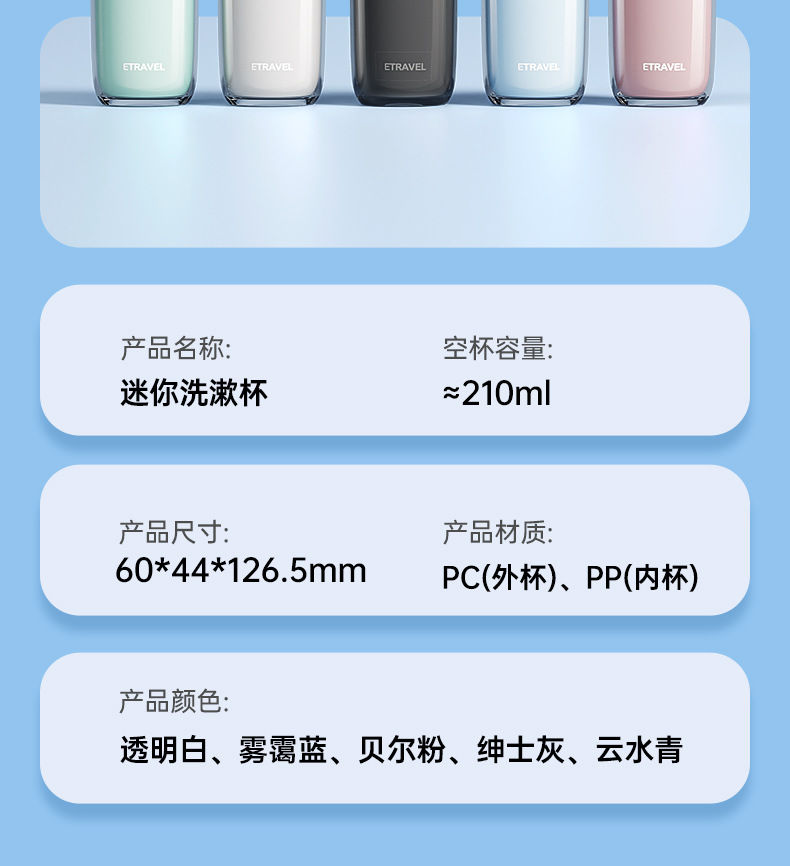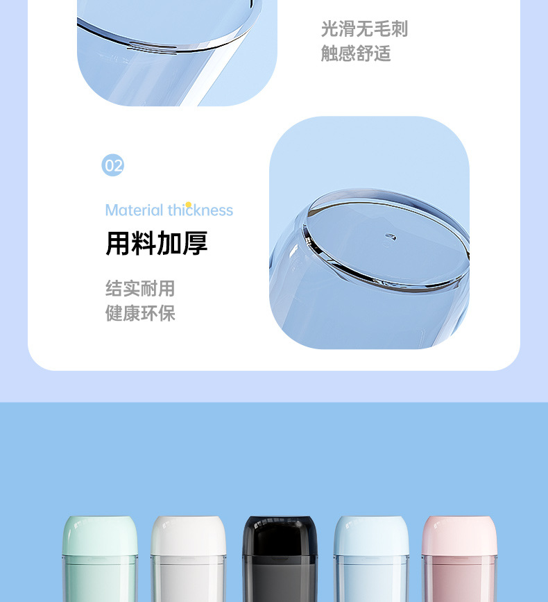 材质:PC(外杯)、ABS(上盖)、PP(内杯)
