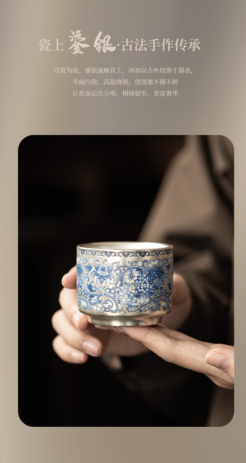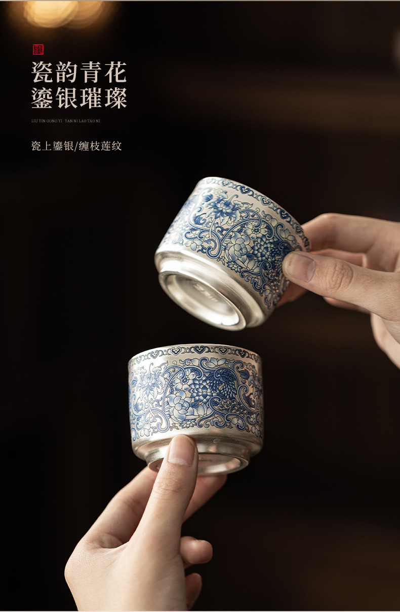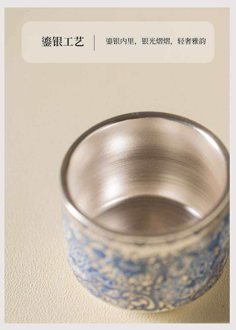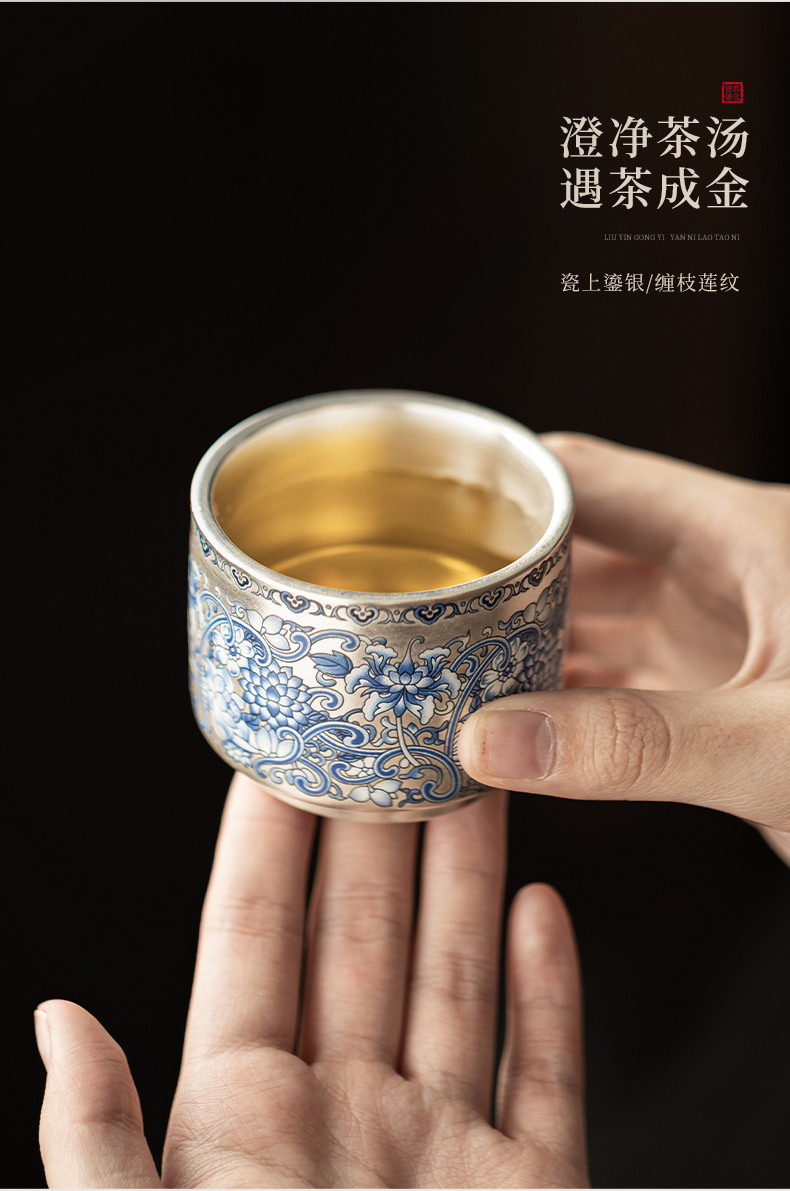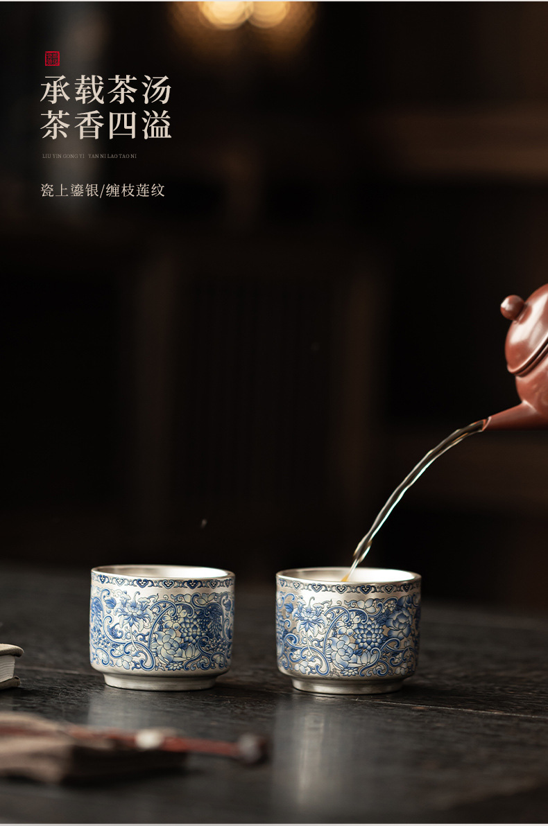 Bộ cốc mạ bạc họa tiết hoa sen, cốc chủ, cốc trà, cốc trà cá nhân gia đình, cốc trà gốm, bộ trà Kung Fu