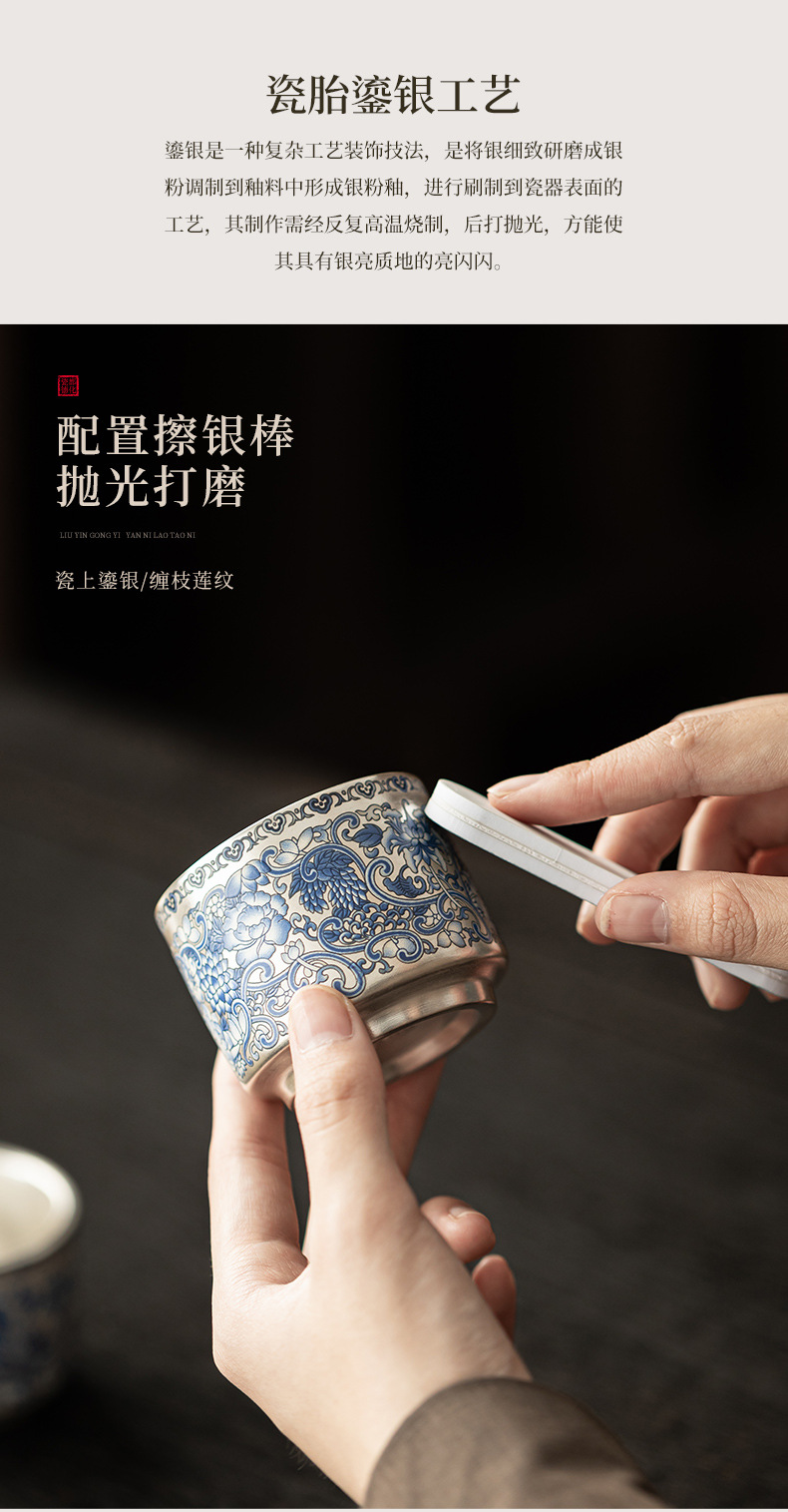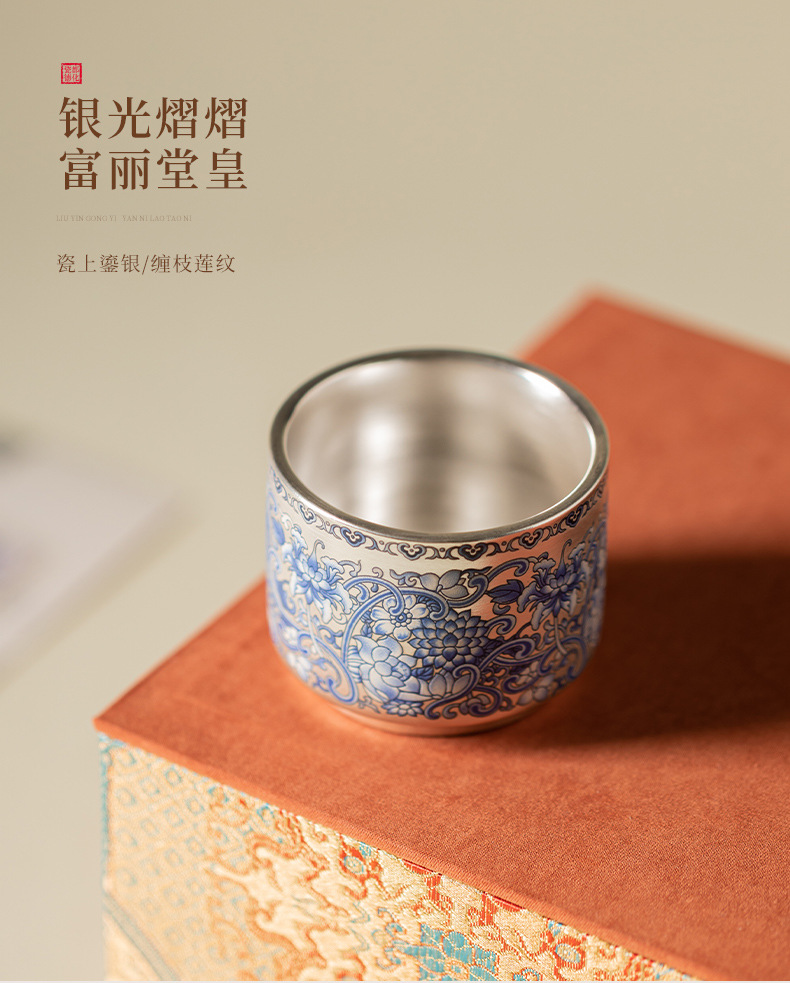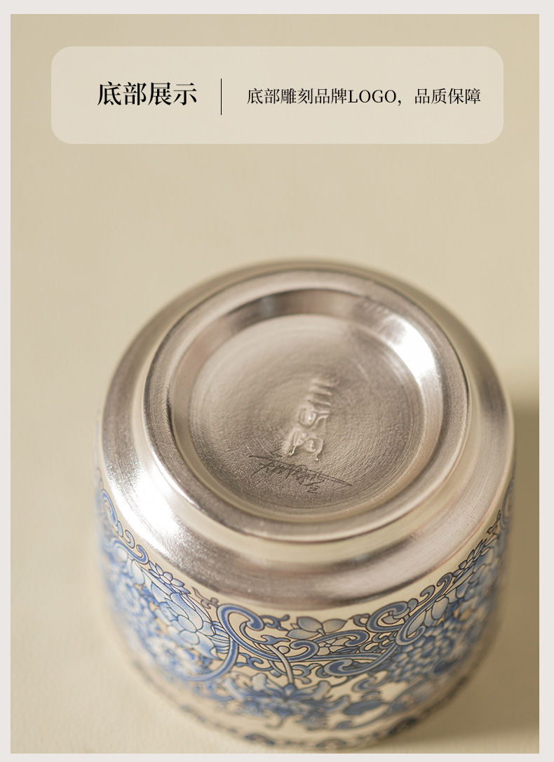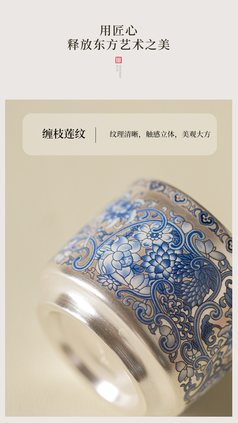 Bộ cốc mạ bạc họa tiết hoa sen, cốc chủ, cốc trà, cốc trà cá nhân gia đình, cốc trà gốm, bộ trà Kung Fu