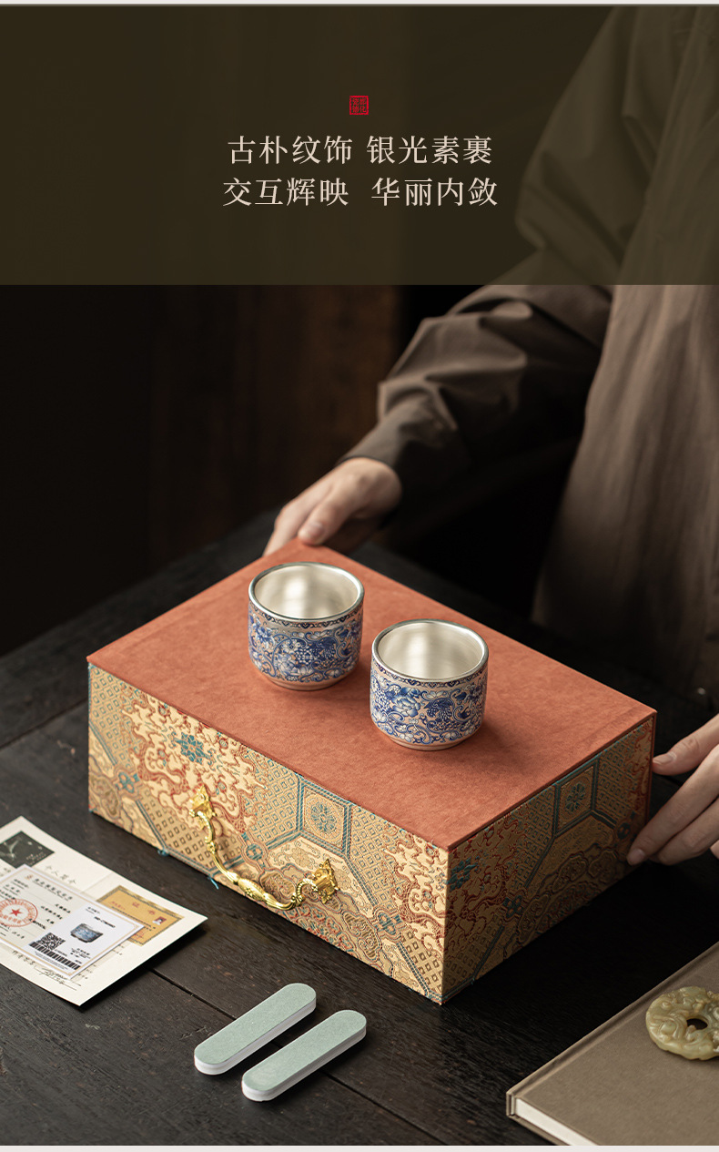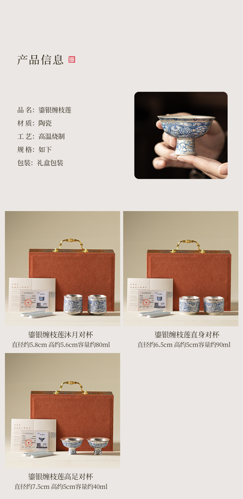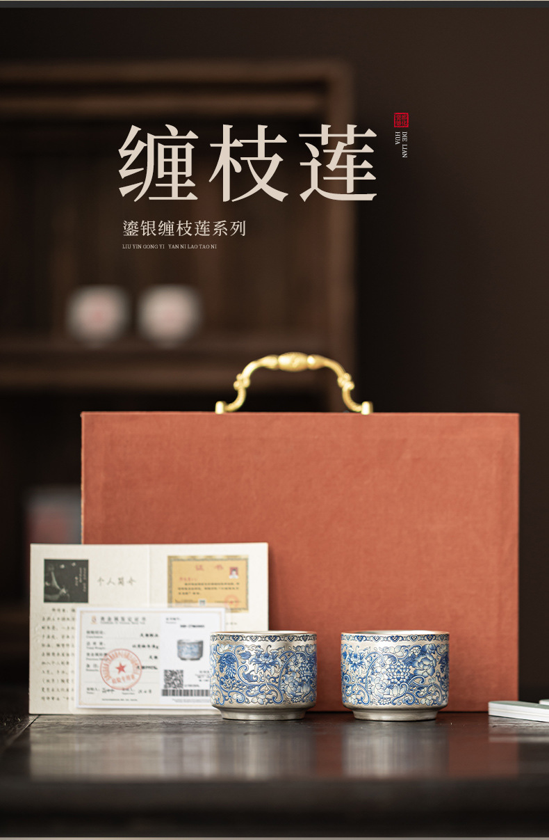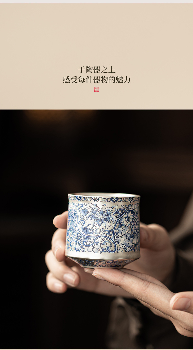 Bộ cốc mạ bạc họa tiết hoa sen, cốc chủ, cốc trà, cốc trà cá nhân gia đình, cốc trà gốm, bộ trà Kung Fu