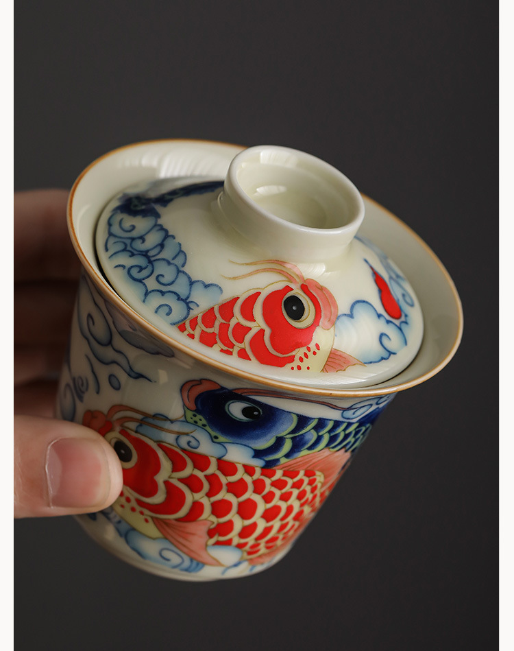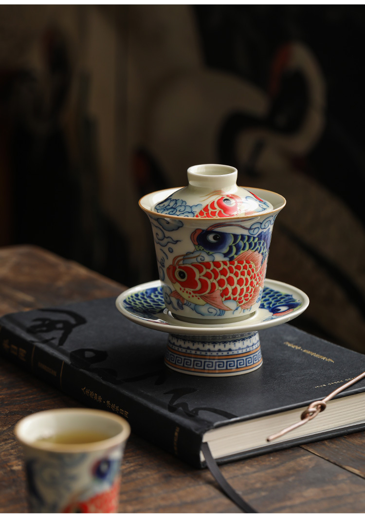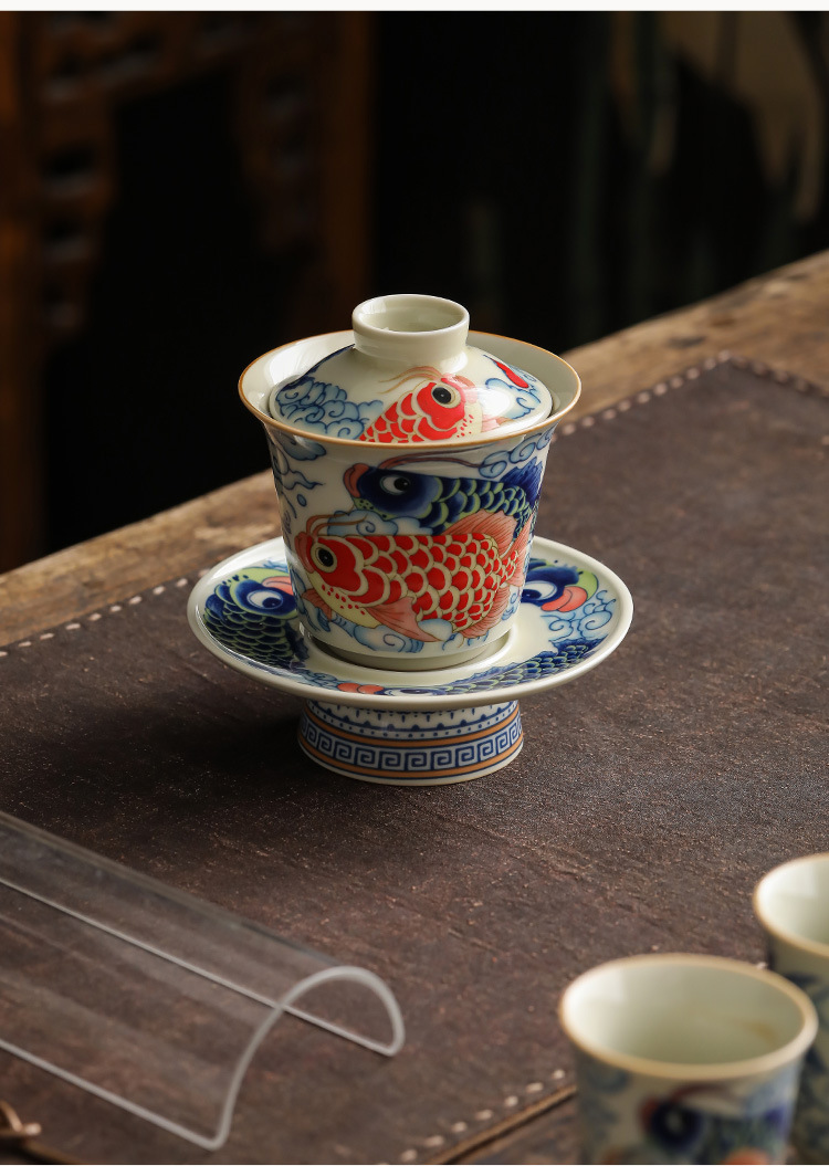 - Bộ cốc trà ba nắp cá rồng móng ngựa bộ bát trà không nóng chuyên dụng cá nhân bộ trà cao cấp bộ ba món