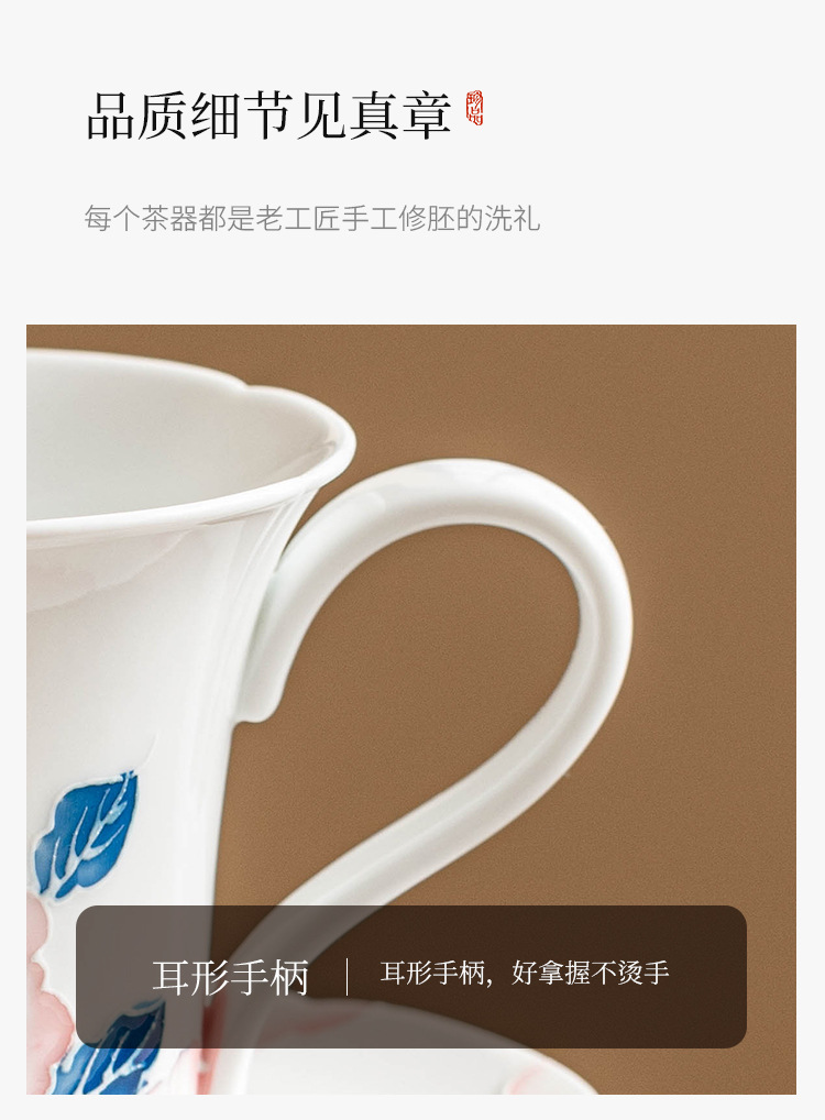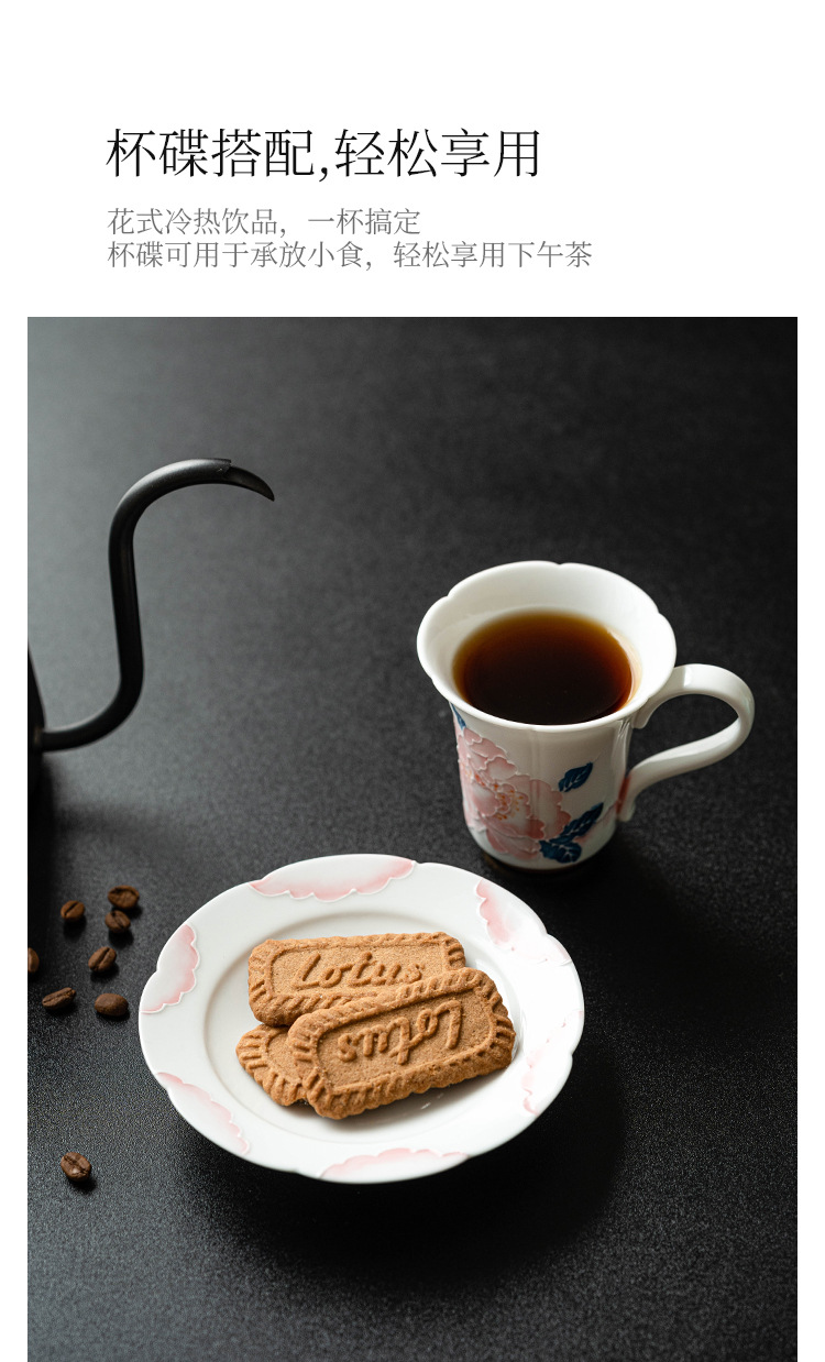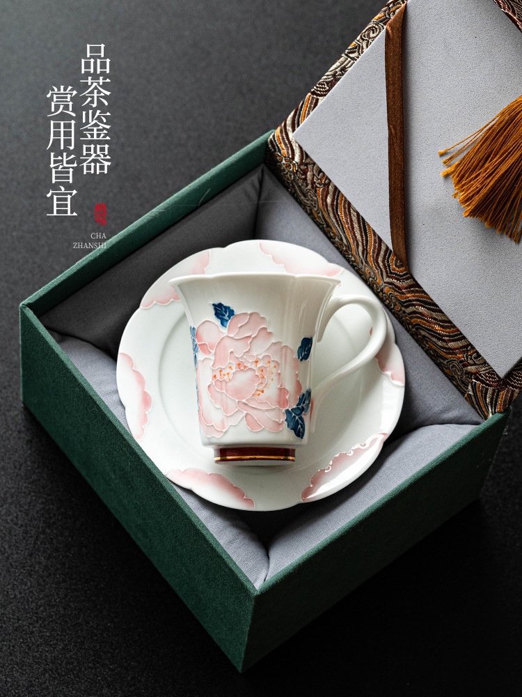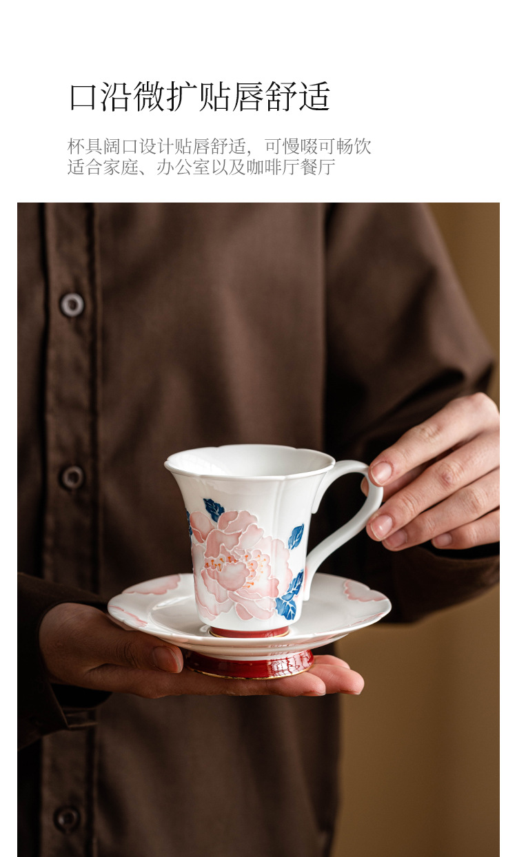 Bộ cốc và đĩa cà phê hoa mẫu đơn vẽ tay cho nữ cao cấp tinh tế cốc gốm sứ giá trị cao cốc nước