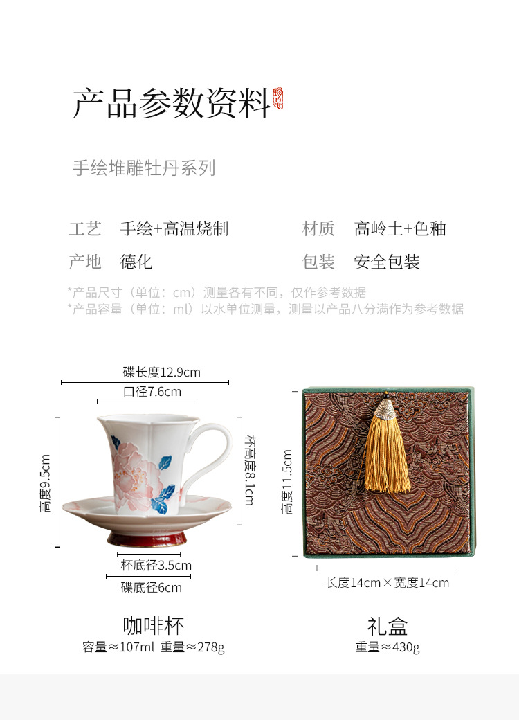 - Bộ cốc và đĩa cà phê hoa mẫu đơn vẽ tay cho nữ cao cấp tinh tế cốc gốm sứ giá trị cao cốc nước