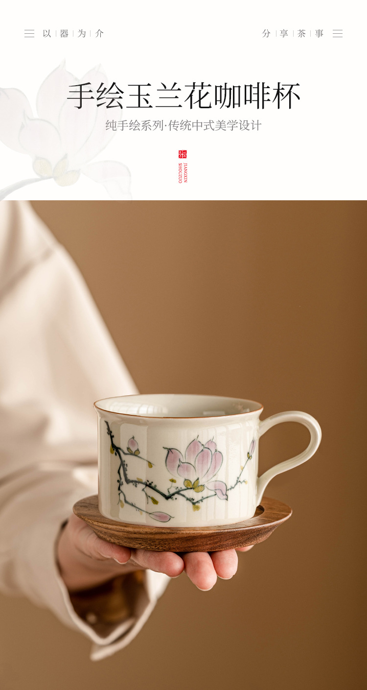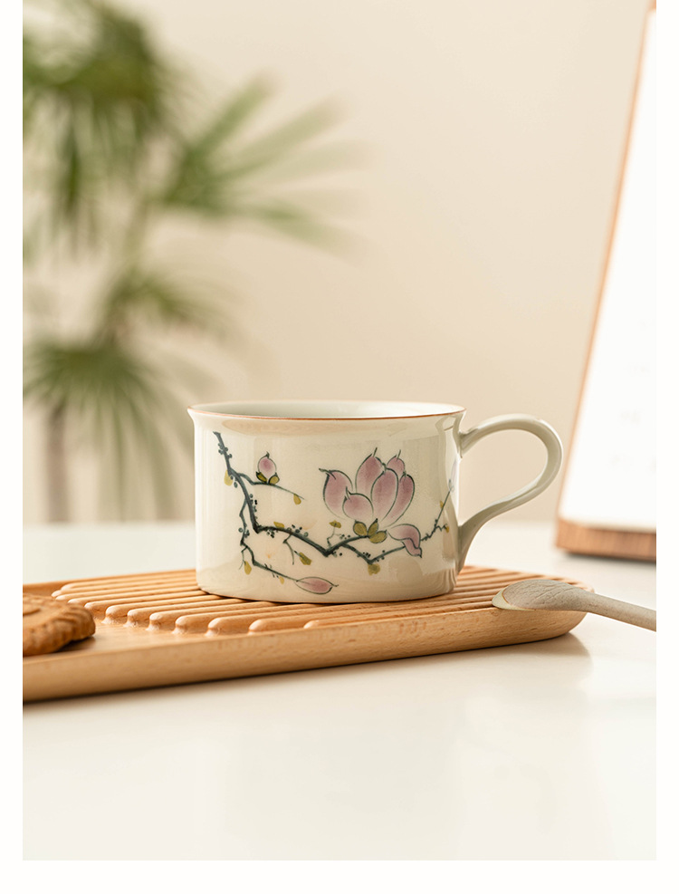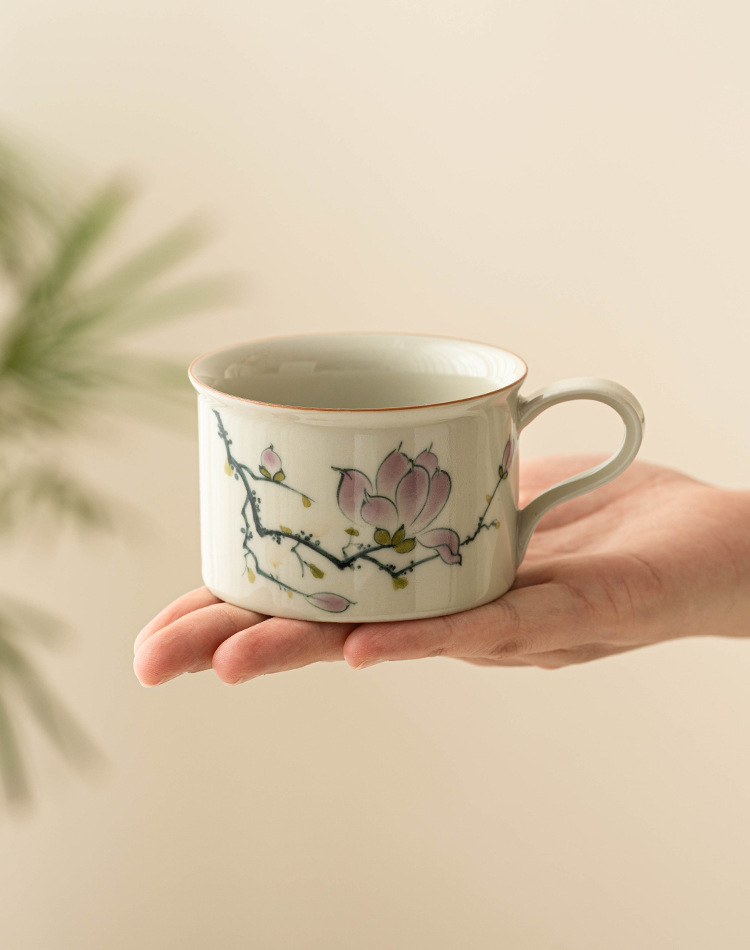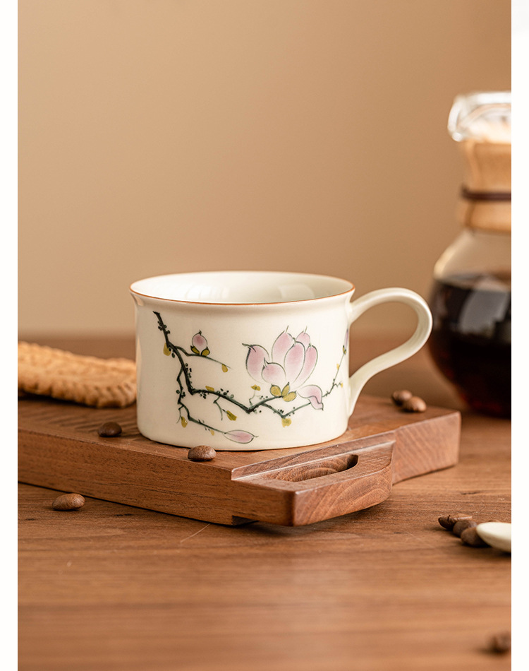 - Bộ cốc và đĩa cà phê hoa mộc lan vẽ tay, cốc latte cao cấp, cốc trà chiều cao cấp tinh tế, cốc gốm sứ