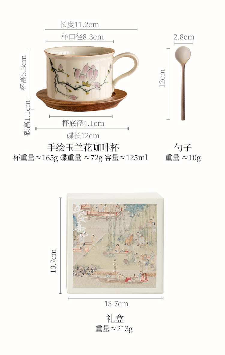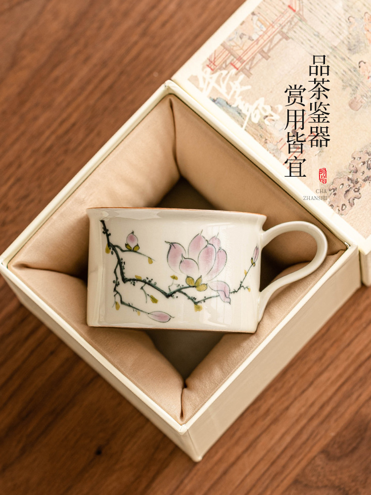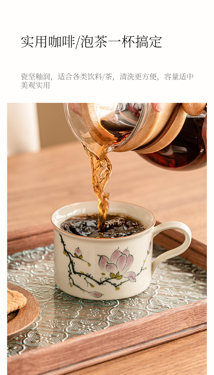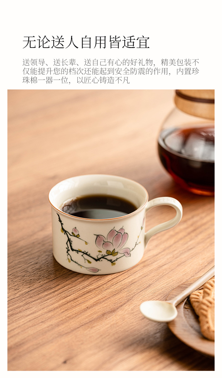 - Bộ cốc và đĩa cà phê hoa mộc lan vẽ tay, cốc latte cao cấp, cốc trà chiều cao cấp tinh tế, cốc gốm sứ