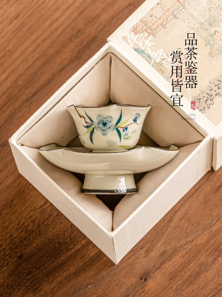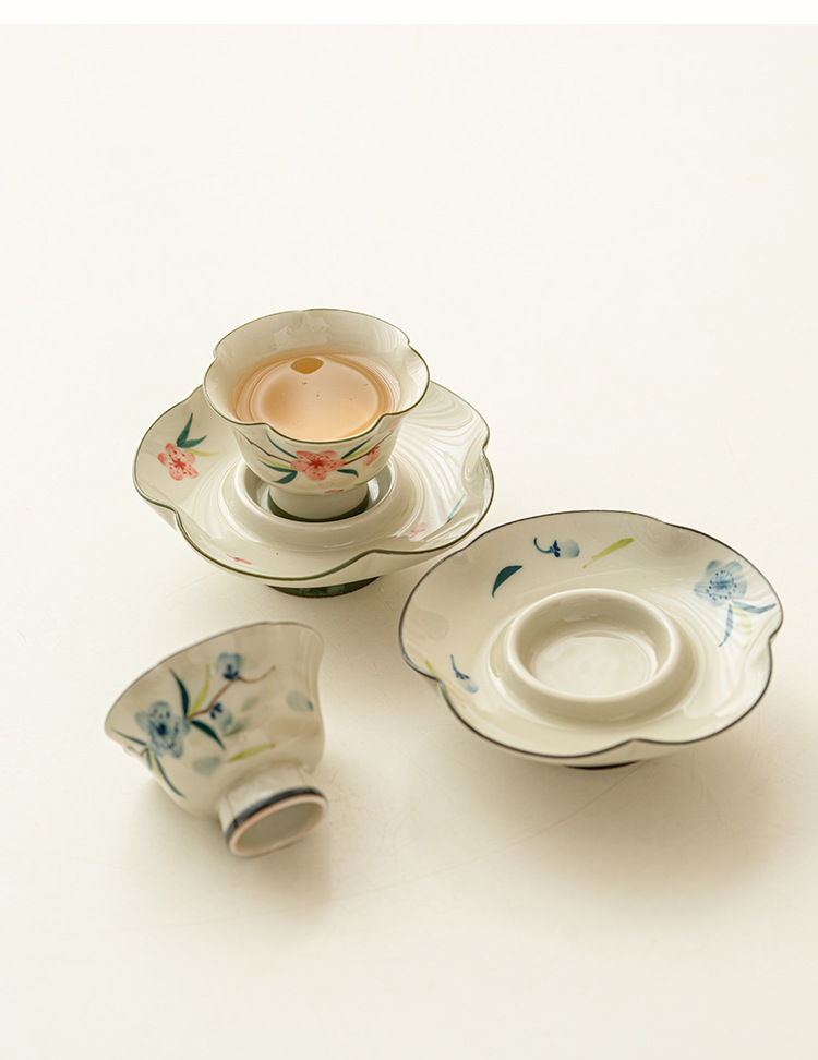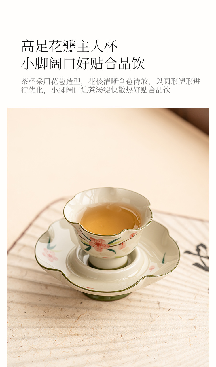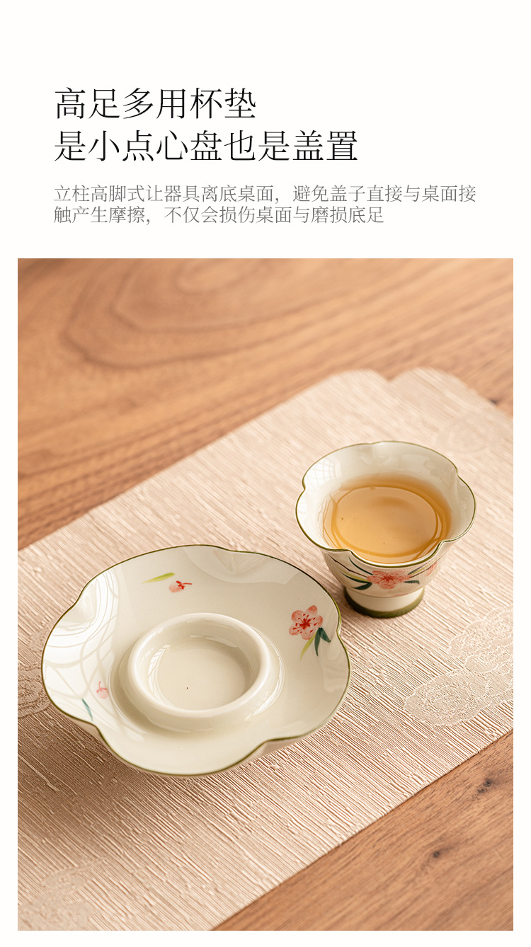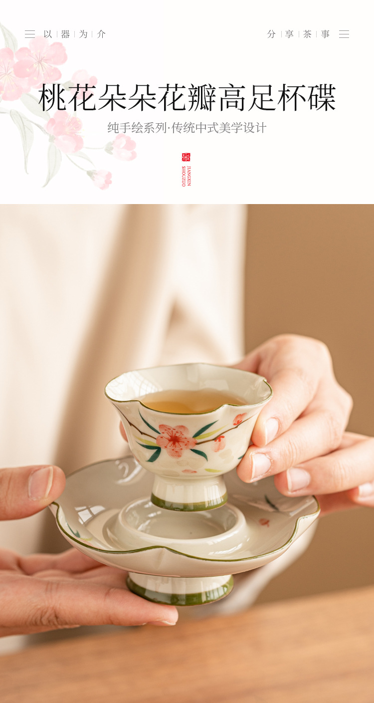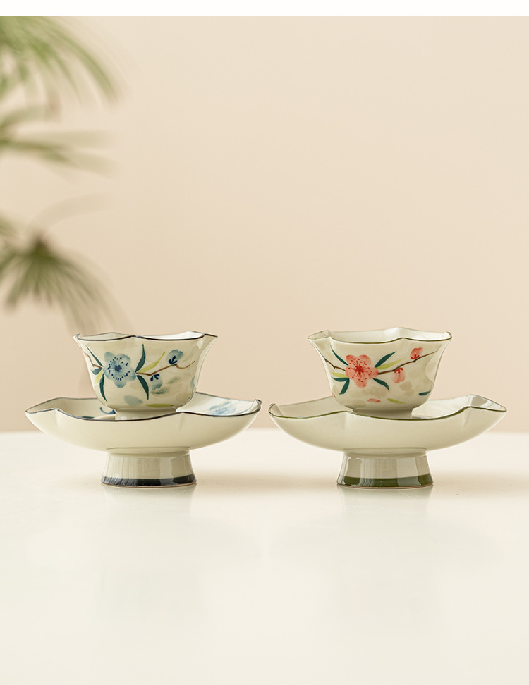- Bộ cốc và đĩa chân cao hoa đào vẽ tay cốc chủ nhân gốm sứ tinh xảo cao cấp cốc trà chuyên dụng cá nhân cốc trà bộ trà