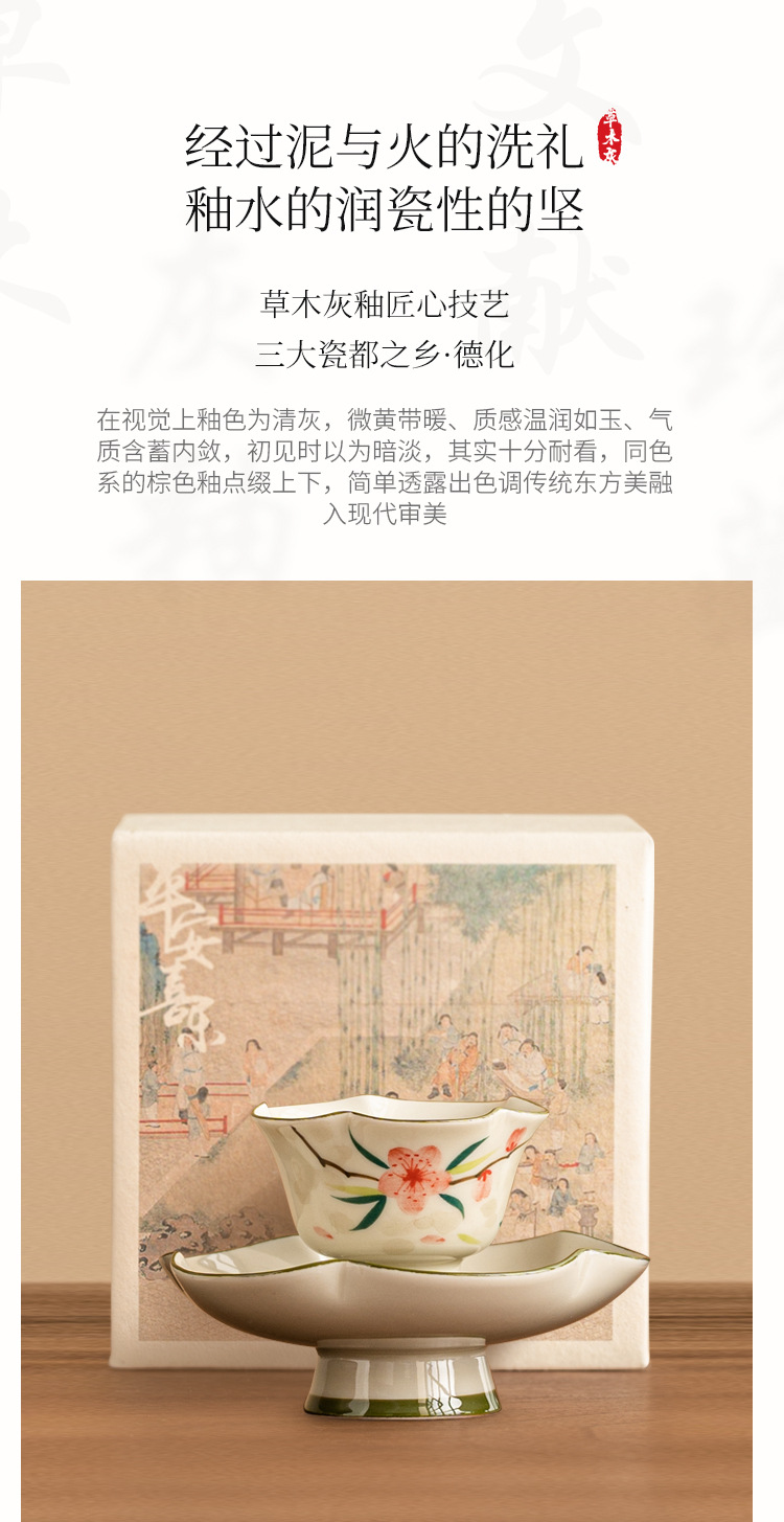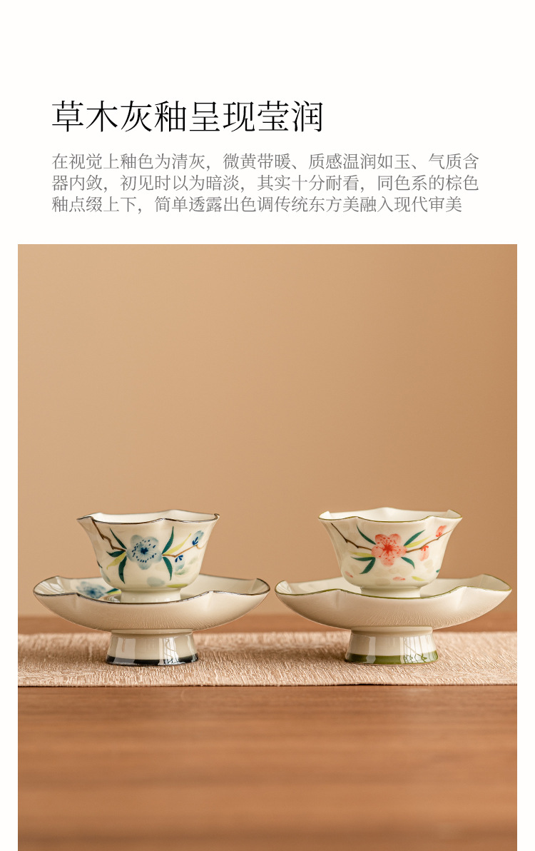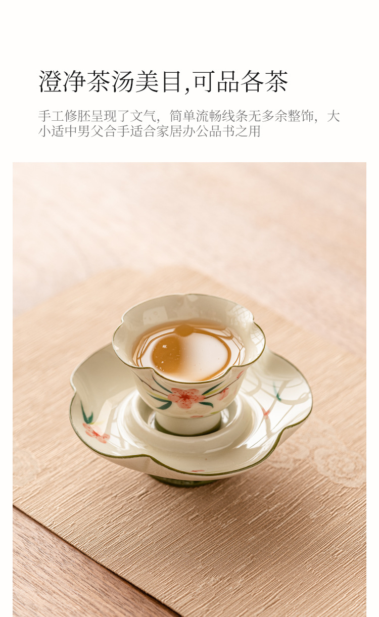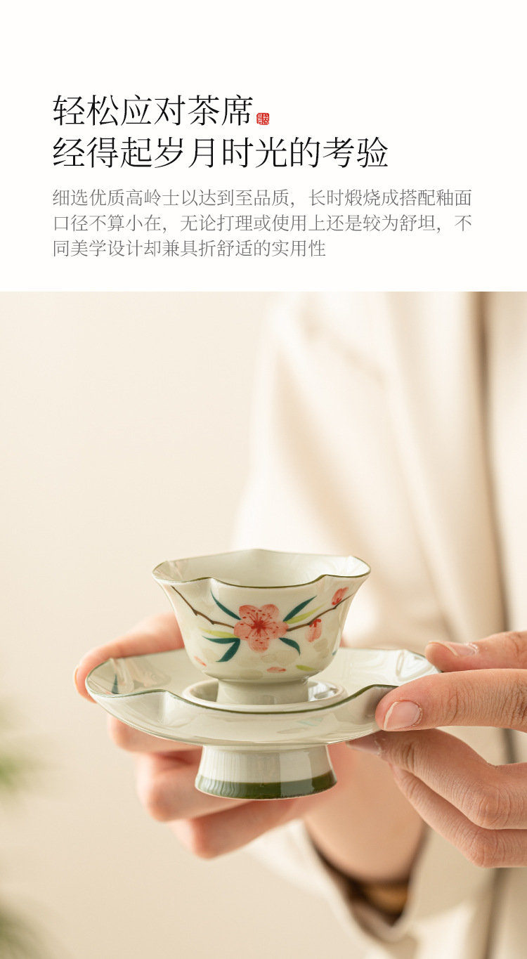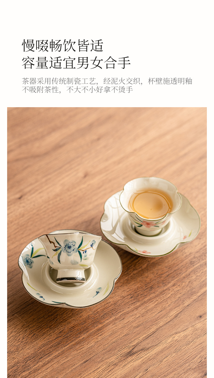 - Bộ cốc và đĩa chân cao hoa đào vẽ tay cốc chủ nhân gốm sứ tinh xảo cao cấp cốc trà chuyên dụng cá nhân cốc trà bộ trà