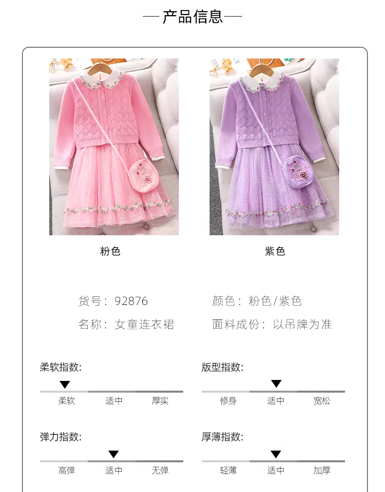 - Bộ đầm cardigan hai mảnh cho bé gái xuân thu 2025, quần áo trẻ em mới, bộ cardigan màu tím kèm chân váy cho bé gái
