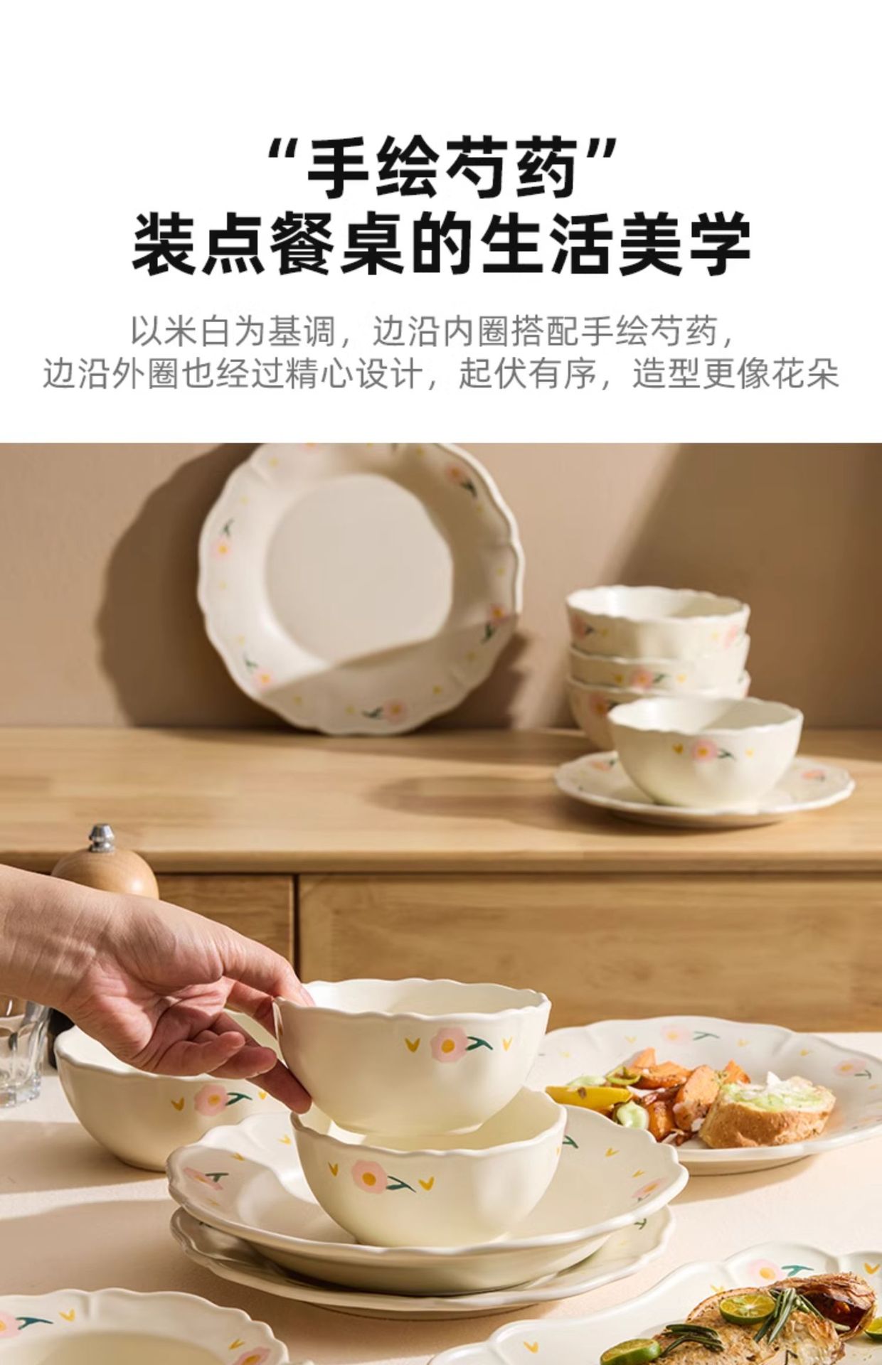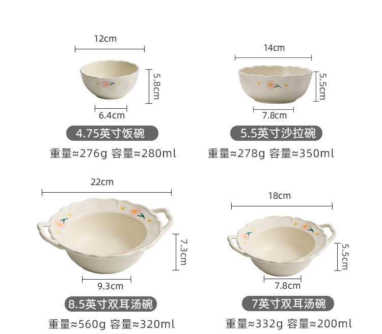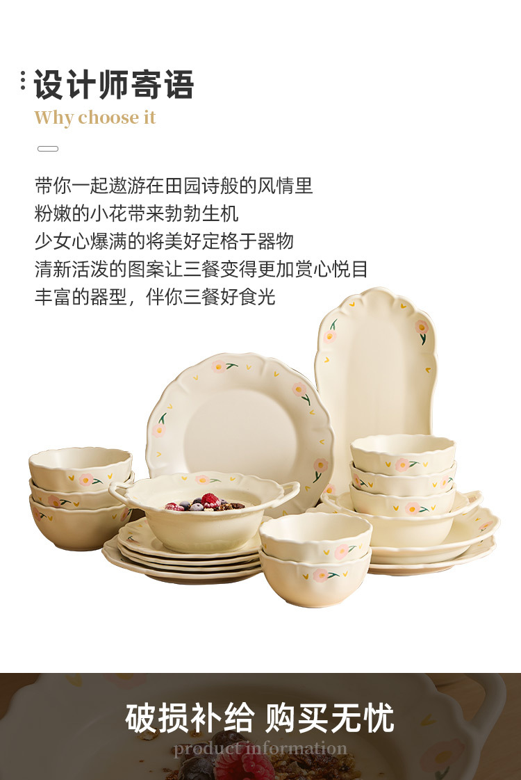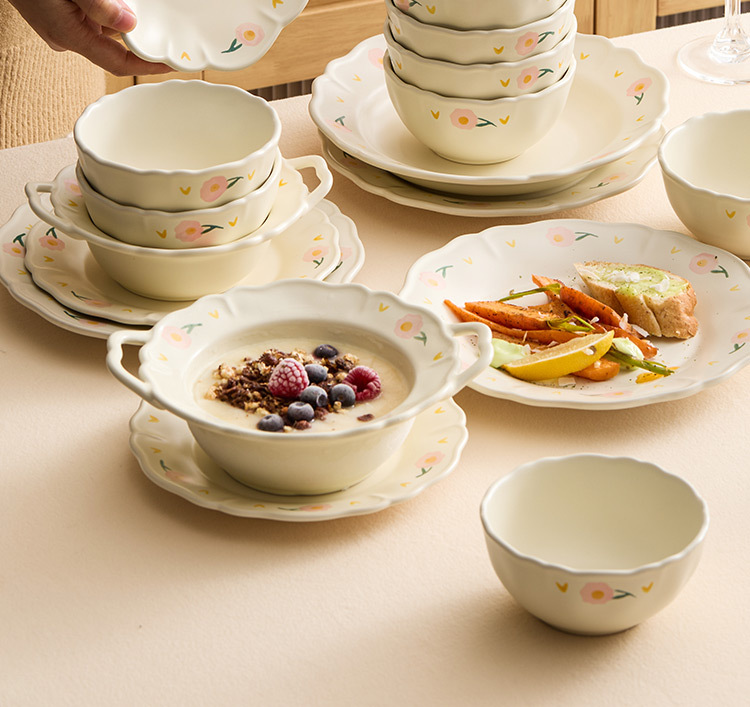 - Bộ đồ ăn gốm sứ họa tiết hoa mẫu đơn, gồm bát và đĩa, dùng trong nhà, mẫu mới 2025, đồ dùng nhà bếp, đĩa ăn, bát ăn, thẩm mỹ cao