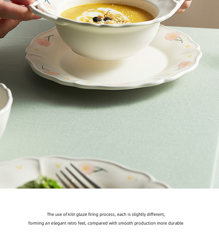 Bộ đồ ăn Nghi Lễ hoa nhỏ vẽ tay, đĩa cao cấp cùng kiểu Instagram đồng quê kiểu Pháp, bát sứ ren, bát cơm gia dụng