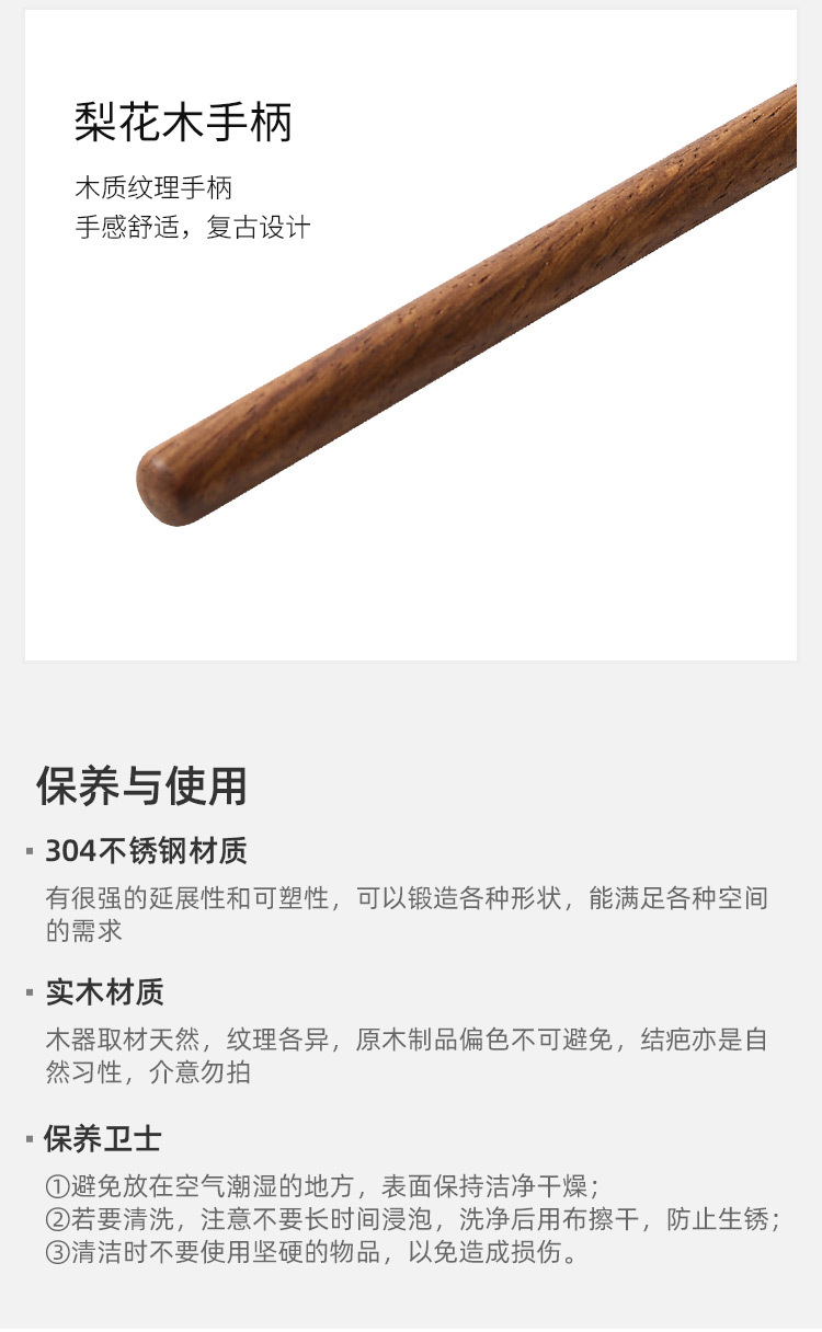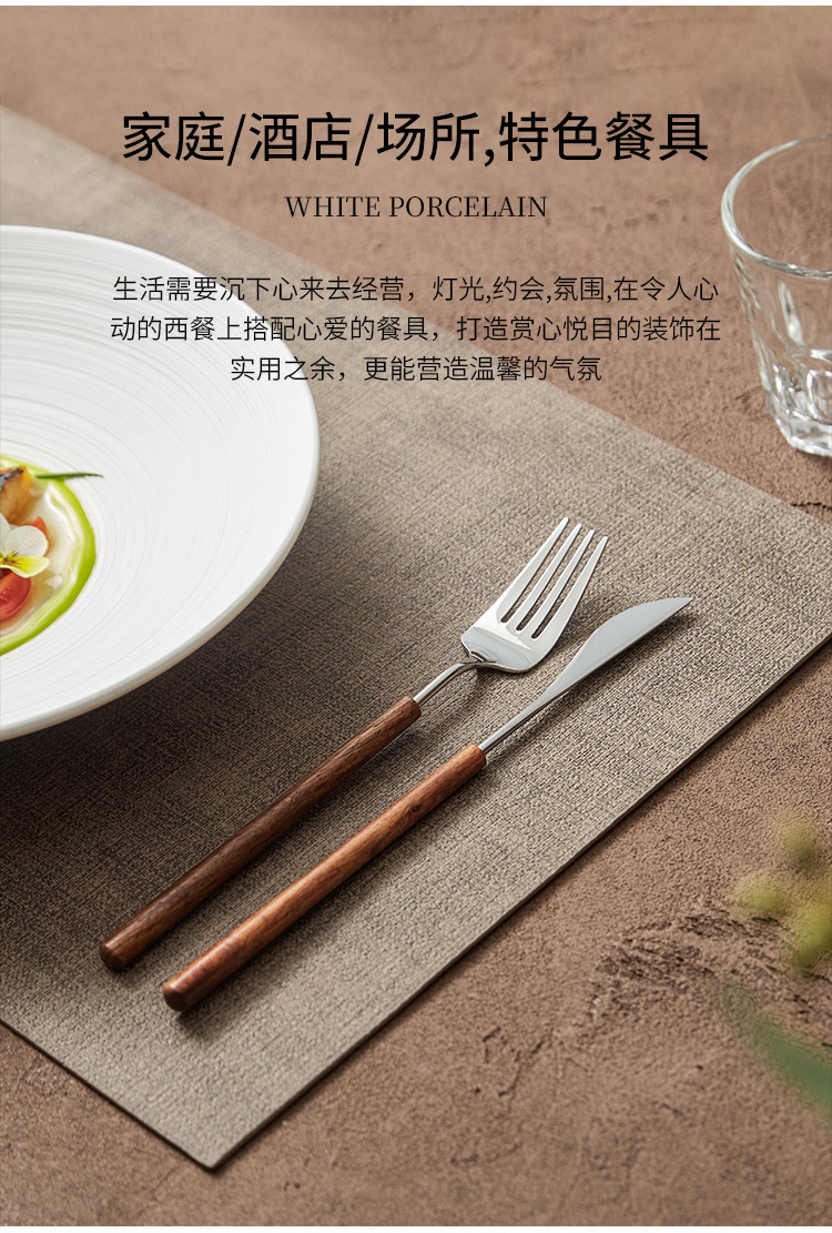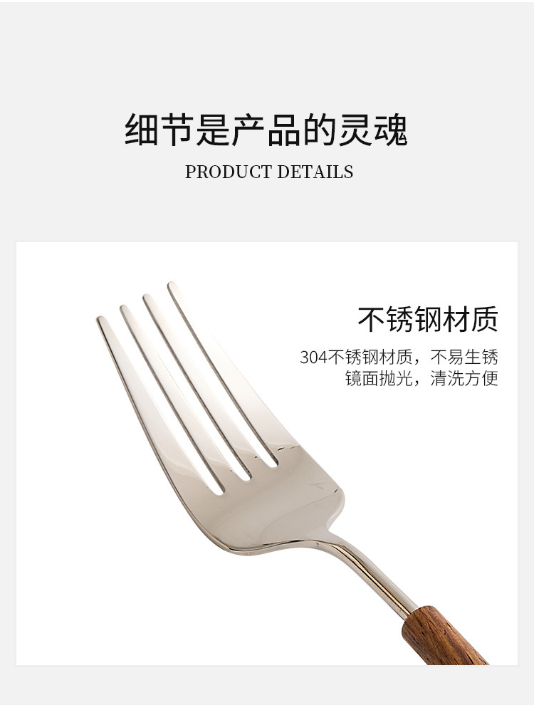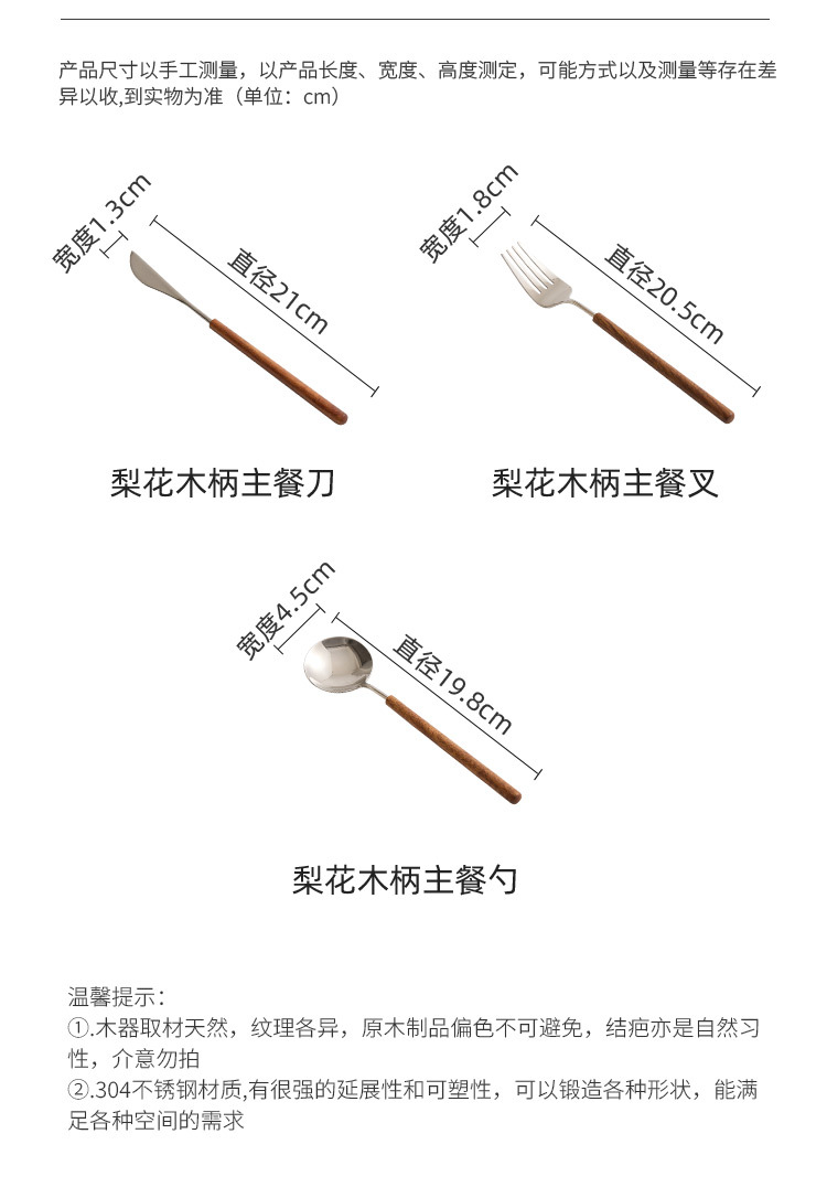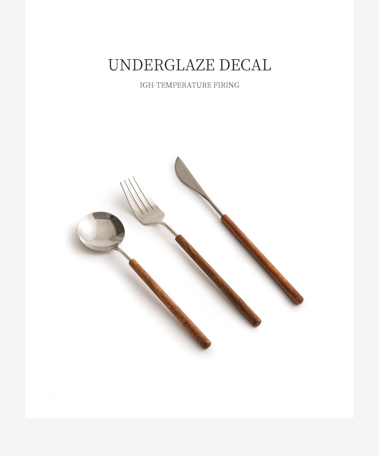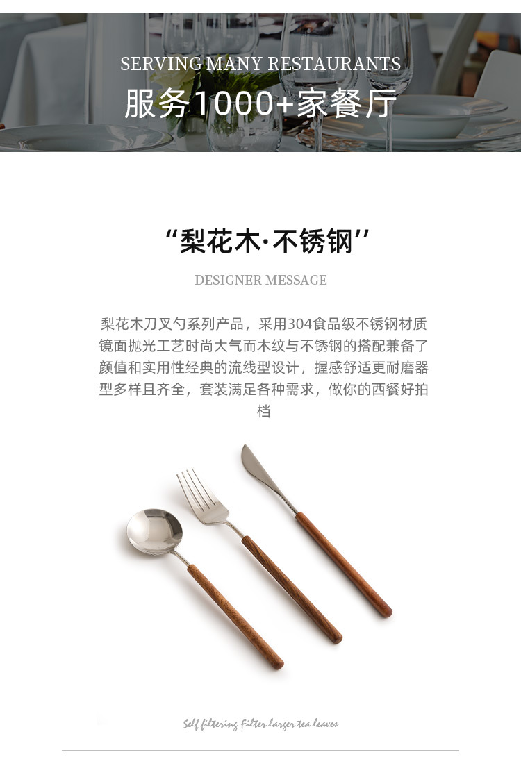 - Bộ đồ ăn phương Tây tay cầm bằng gỗ hoa lê, dao, nĩa và thìa ba miếng, inox 304 thương mại, thìa tráng miệng bít tết