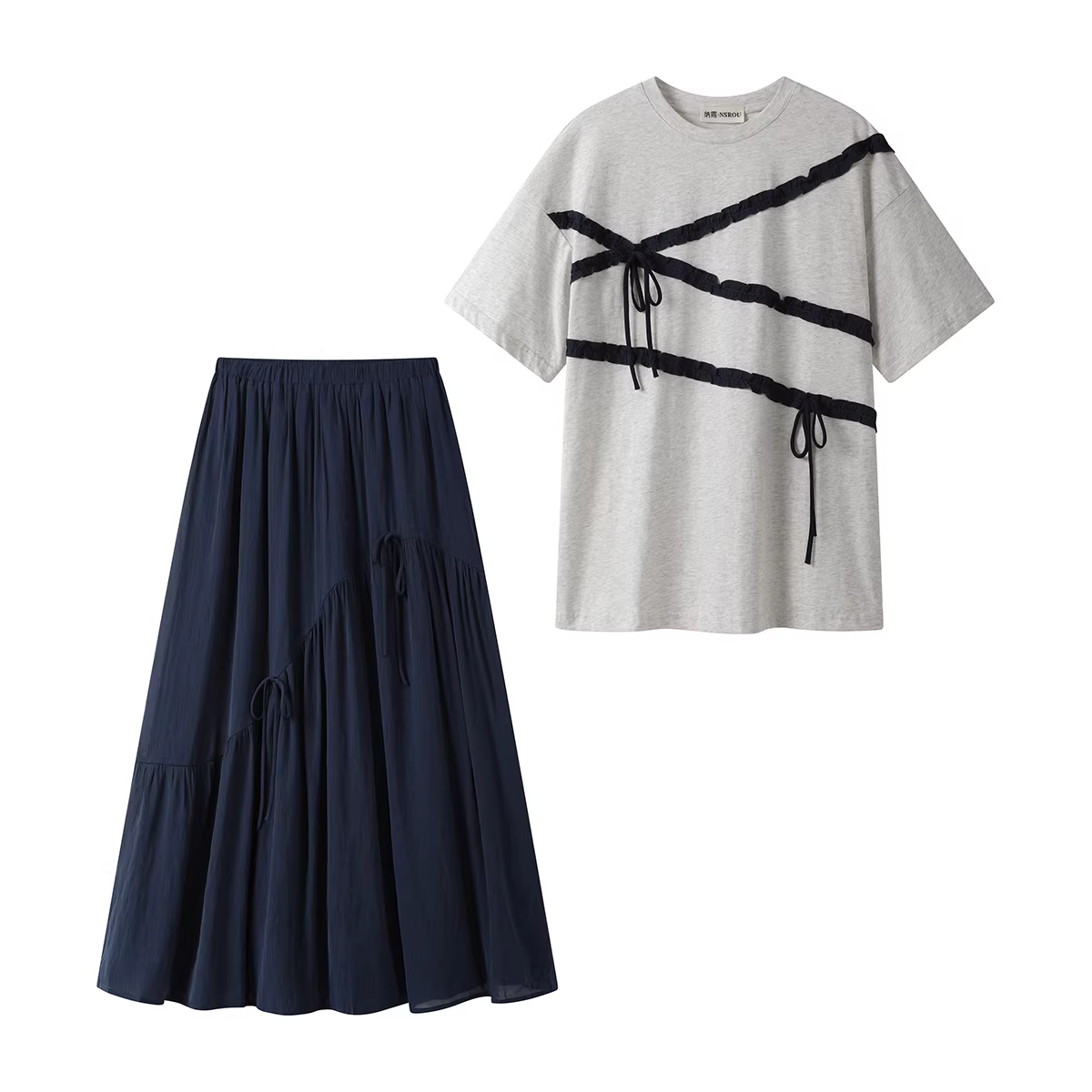 - Bộ đồ hai mảnh áo thun ngắn tay và váy phối ren nhẹ nhàng kiểu Pháp dành cho nữ, phong cách mùa hè mới