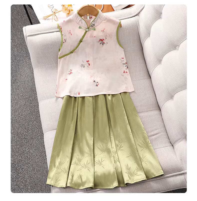 - Bộ đồ Hanfu kiểu Trung Hoa dành cho bé gái, áo không tay mùa hè dành cho bé gái lớn hơn, trang phục thường ngày kiểu Tang dành cho trẻ em.