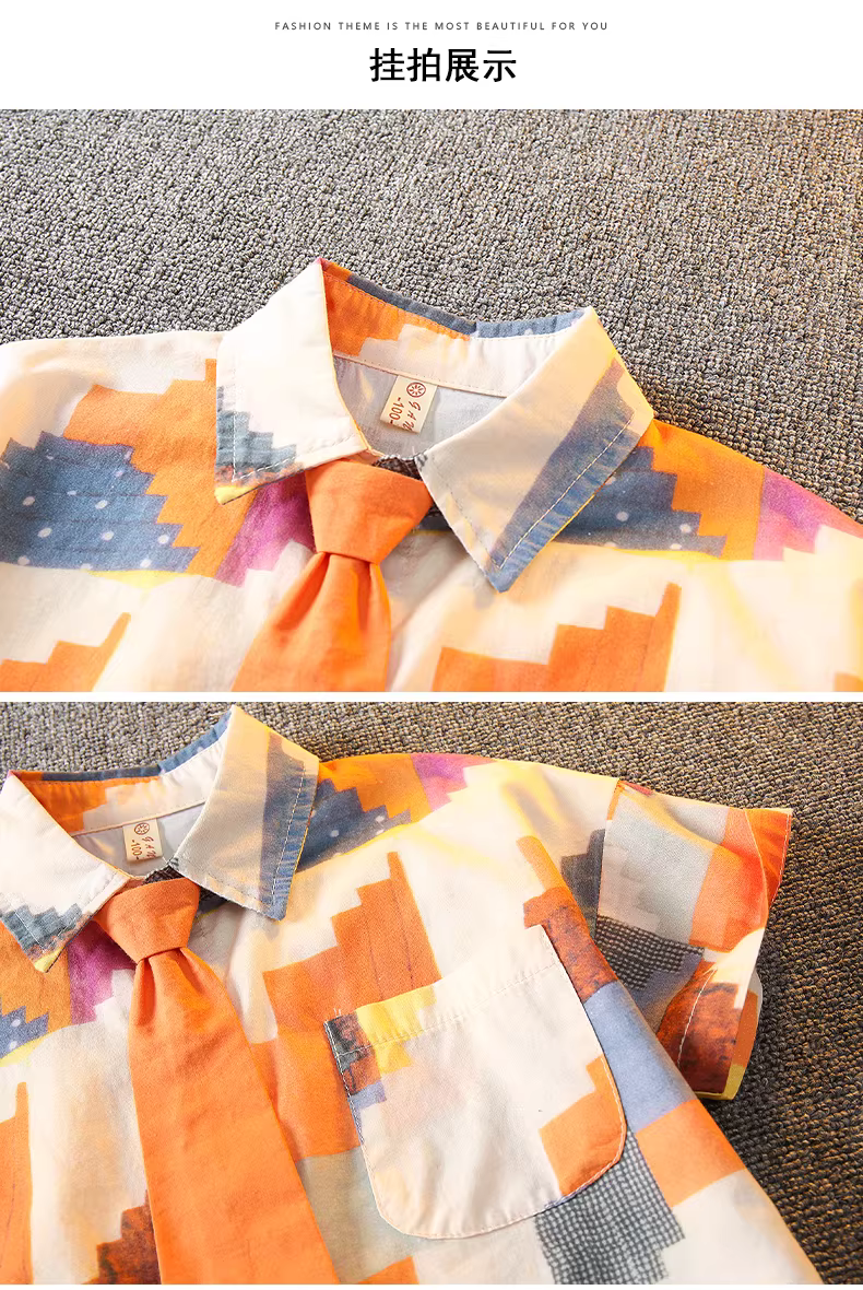 - Bộ đồ hè bé trai 2025 kiểu Hàn Quốc thời trang đường phố, bộ hai mảnh lịch lãm cho bé trai với áo sơ mi có cổ
