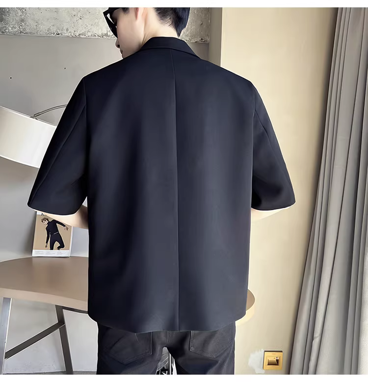- Bộ đồ lụa mỏng mùa hè dành cho nam, tay áo ba phần tư, áo khoác ngắn tay nam dáng rộng hợp thời trang, đa năng và phong cách.