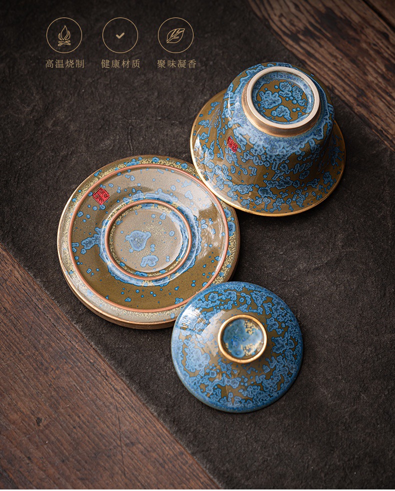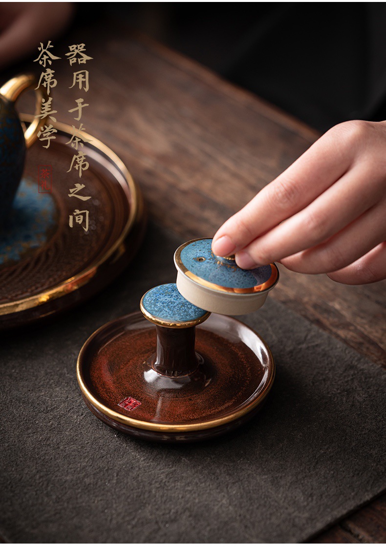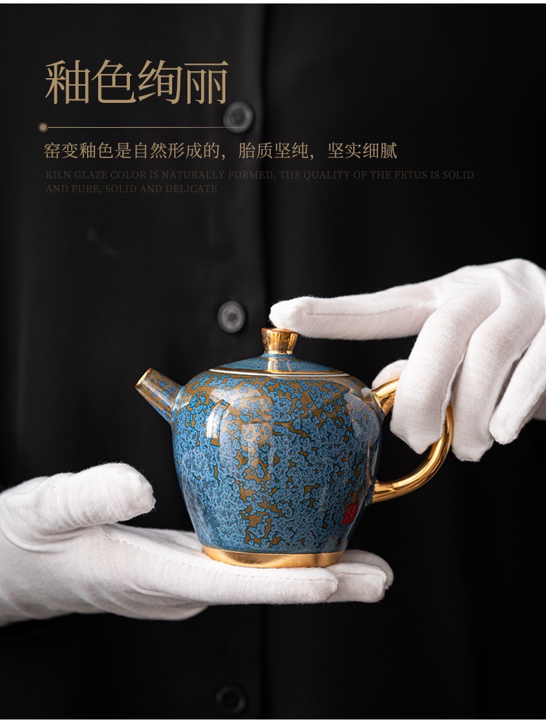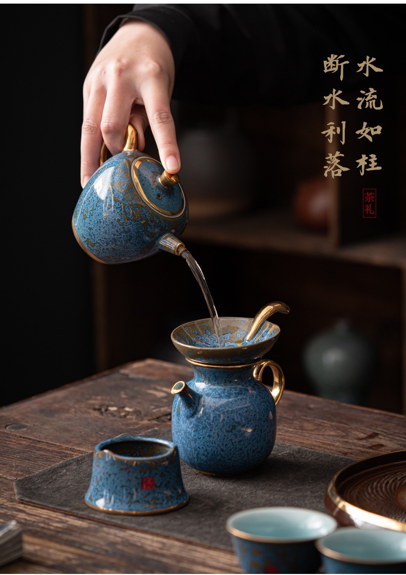 - Bộ đồ pha trà Kung Fu tráng men lò sứ Zhang Jinxi Jun Bộ tách trà gốm cao cấp sang trọng văn phòng gia đình cao cấp quà tặng