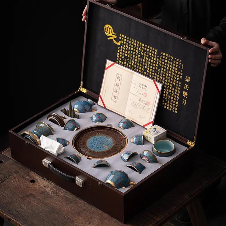 Bộ đồ pha trà Kung Fu tráng men lò sứ Zhang Jinxi Jun Bộ tách trà gốm cao cấp sang trọng văn phòng gia đình cao cấp quà tặng