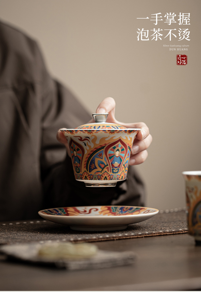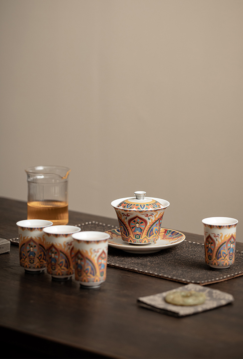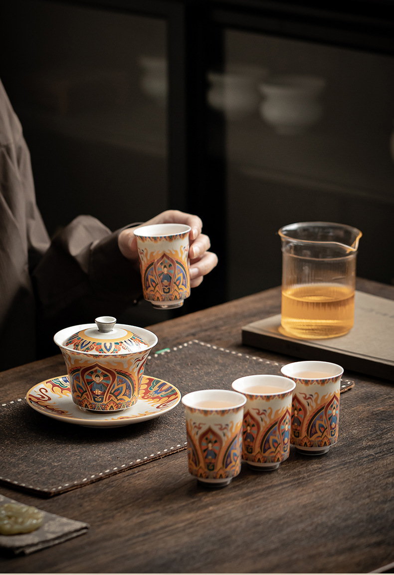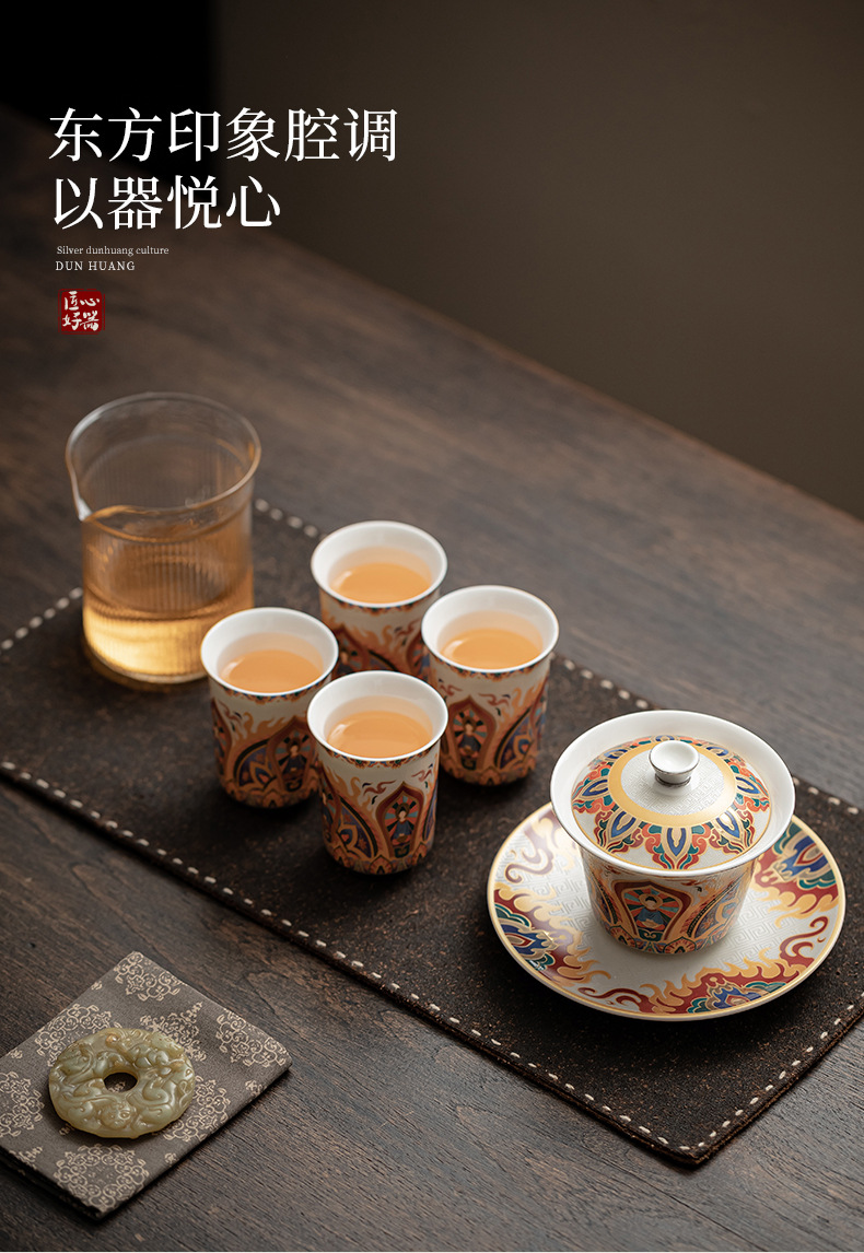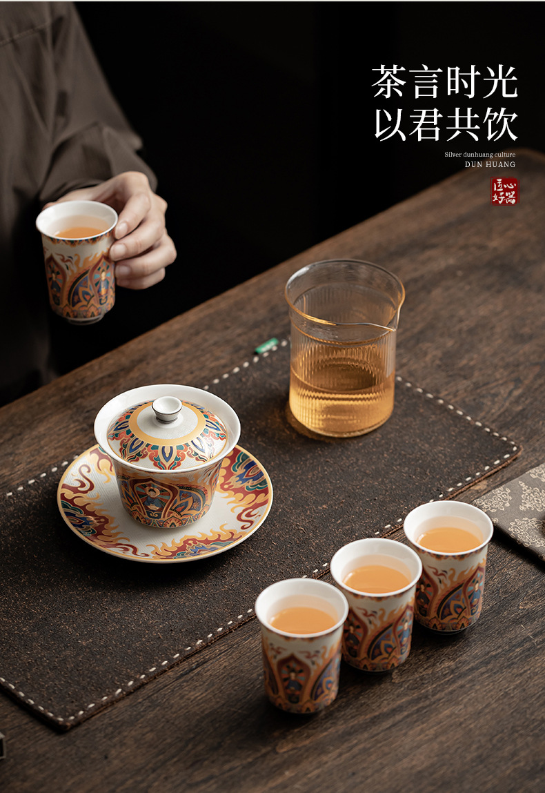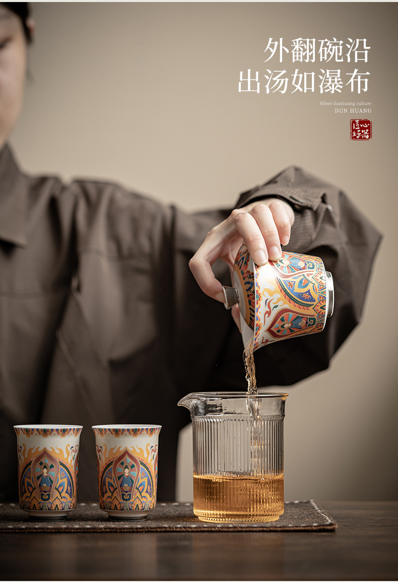 Bộ đồ sứ trắng không pha Đôn Hoàng Bộ đồ trà Kung Fu gia dụng Bộ trà cổ điển kiểu Trung Quốc Bộ quà tặng hộp quà tặng