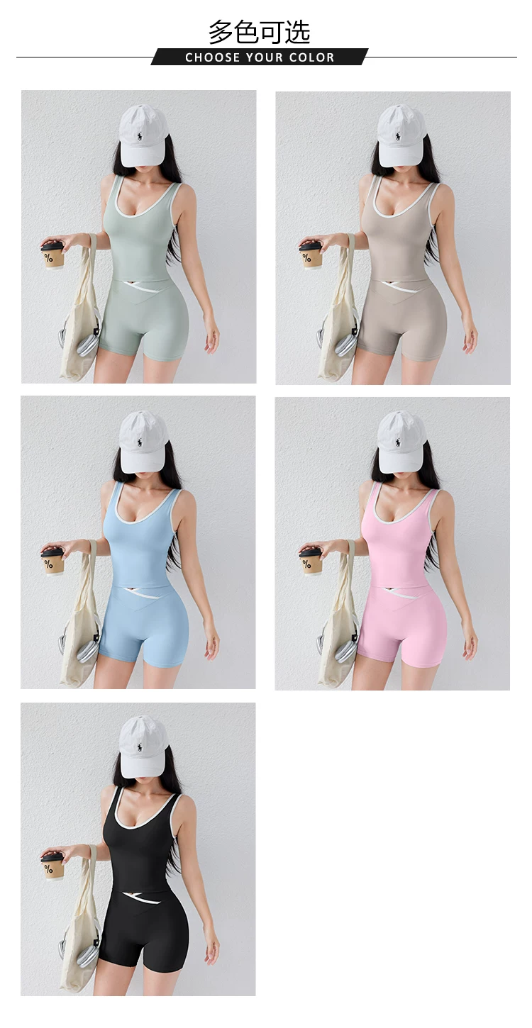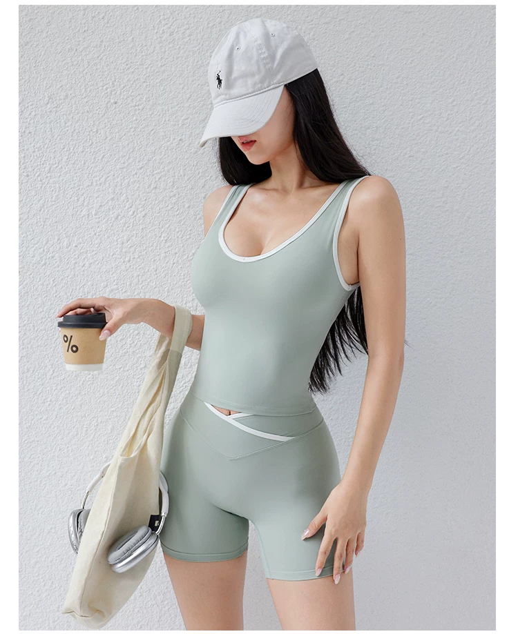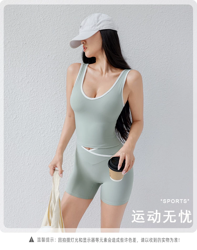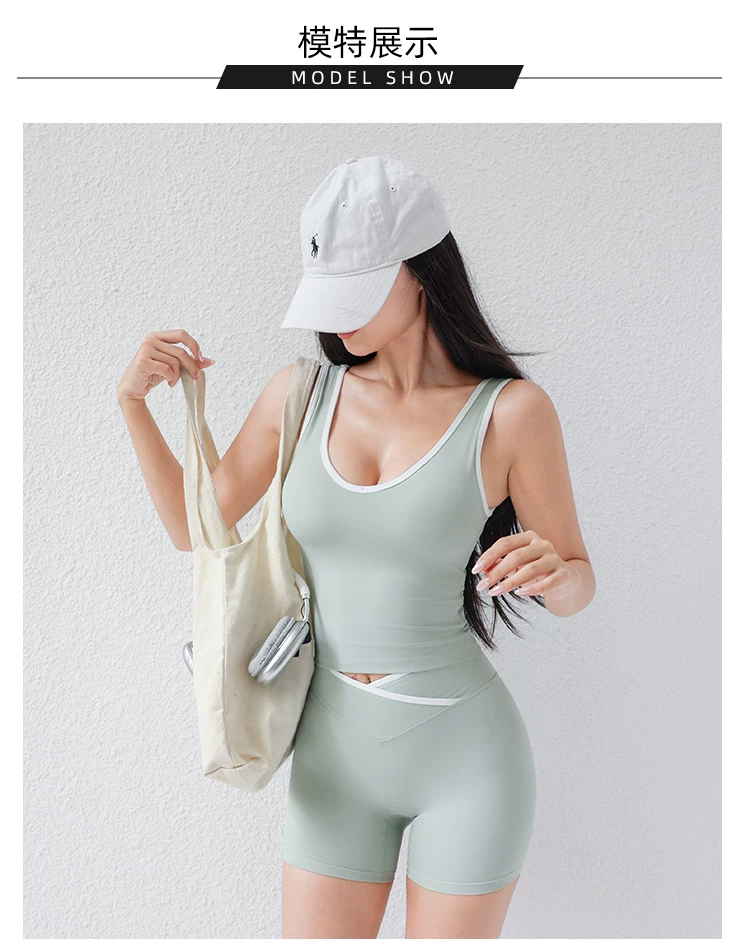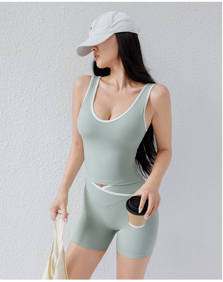 Bộ đồ tập yoga hè 2026 kiểu Âu Mỹ, chất liệu nhanh khô, thấm hút mồ hôi, quần ba phần, áo thể thao, bộ hai món