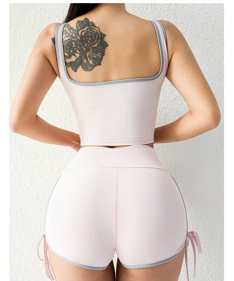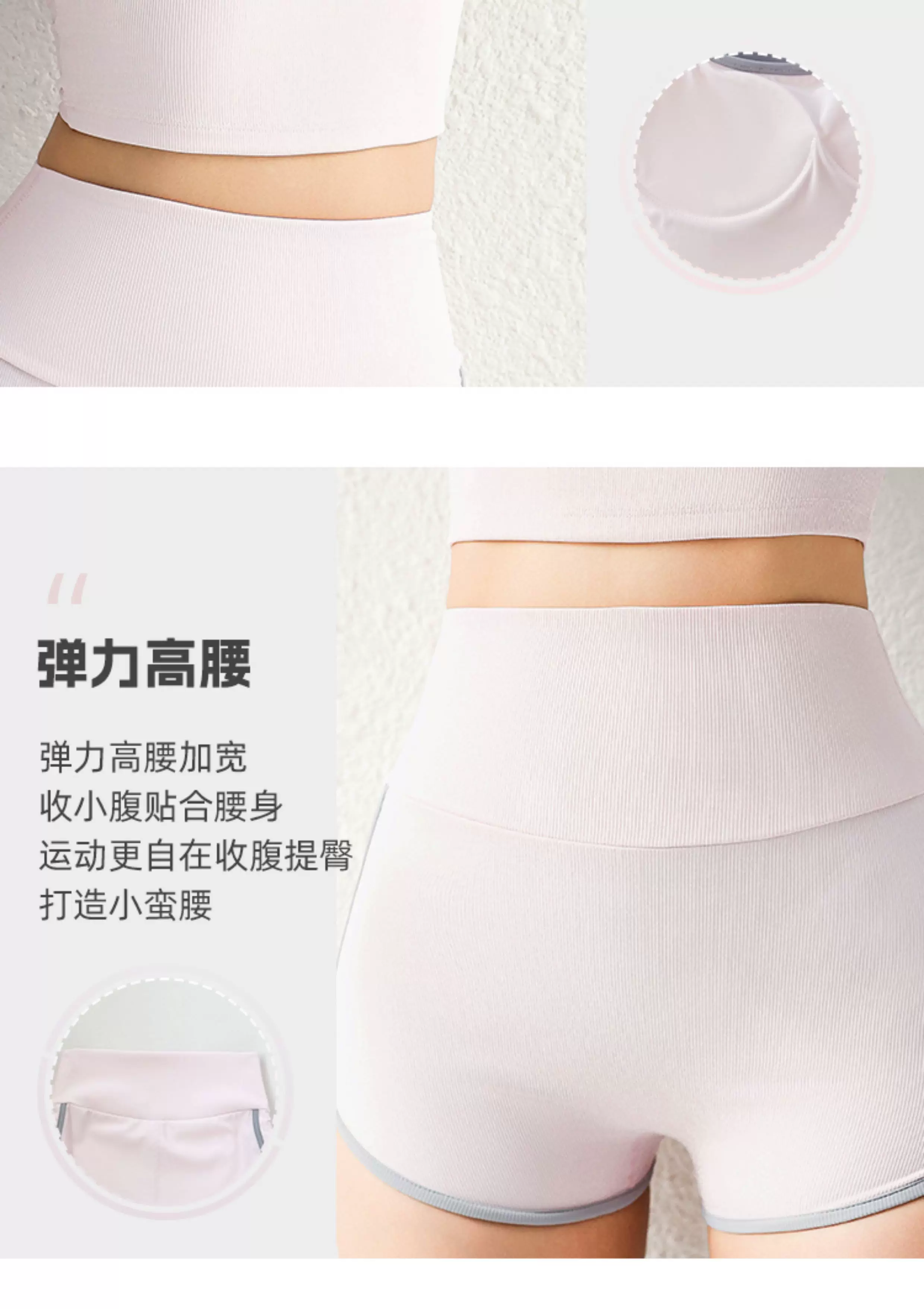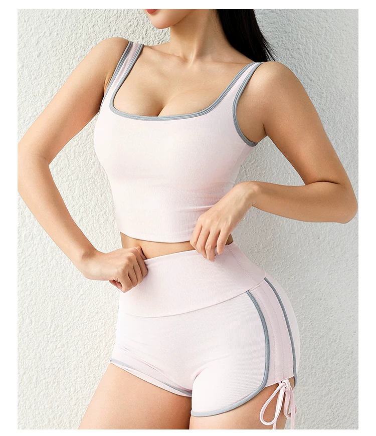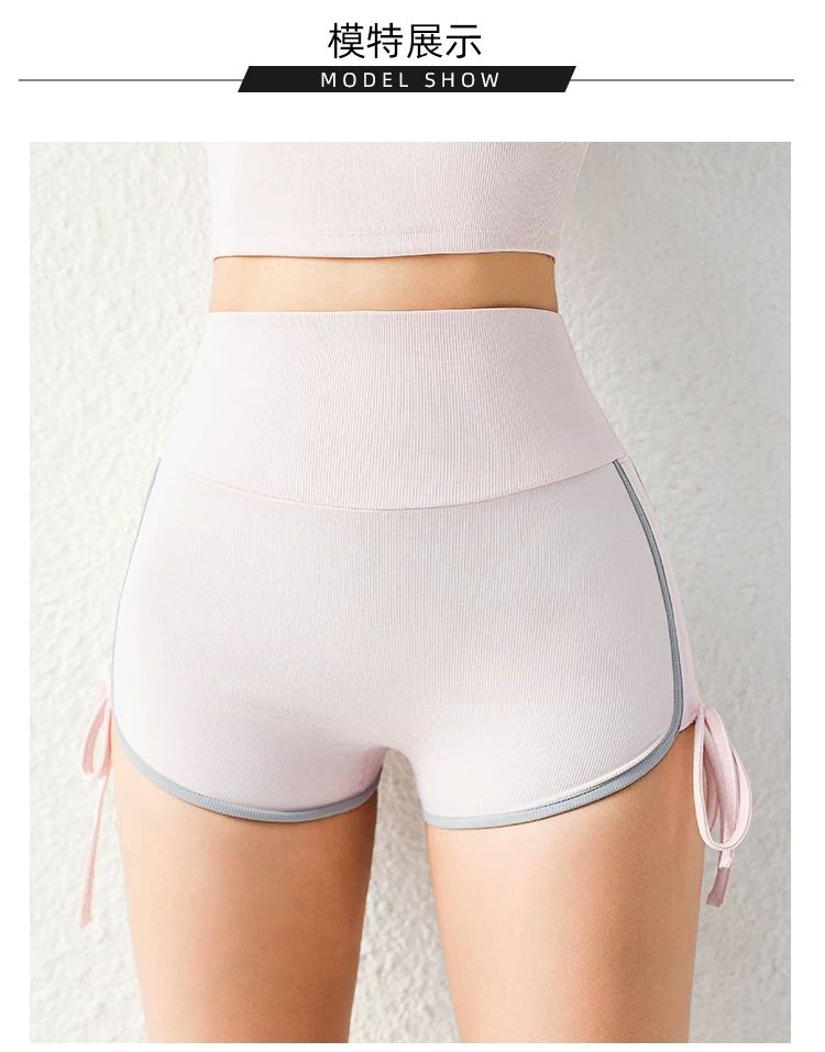 - Bộ đồ thể thao nữ mùa hè mới của cô gái dễ thương, quần short cạp cao có dây rút, bộ đồ tập yoga Pilates, chạy bộ.