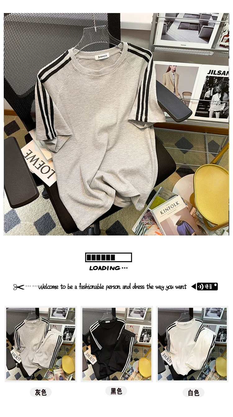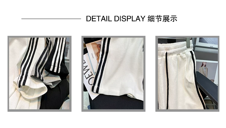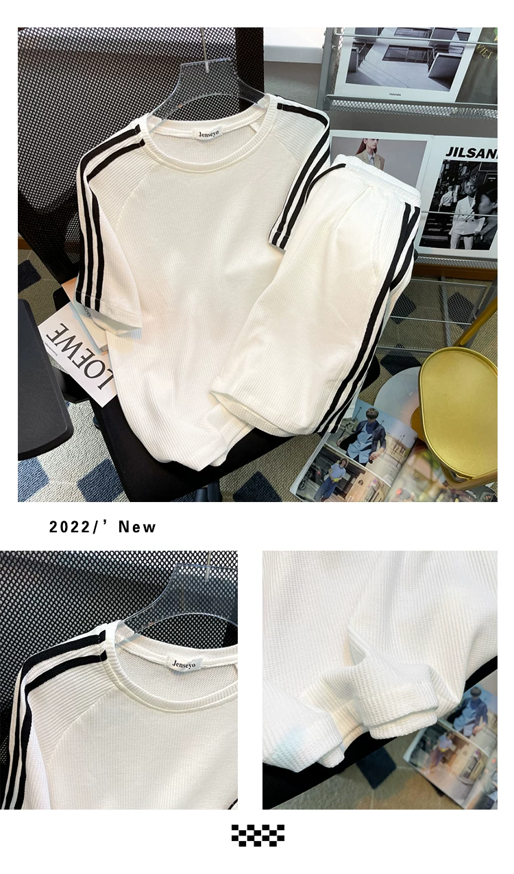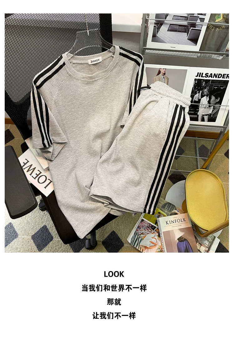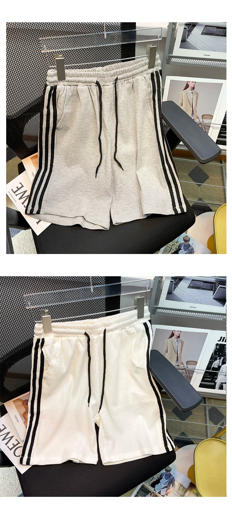 - Bộ đồ thể thao Waffle dành cho nam, bộ đôi áo phông và quần đùi kẻ sọc rộng rãi thời trang mùa hè dành cho cặp đôi.
