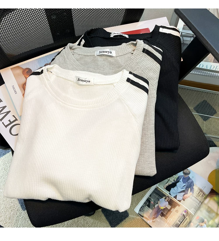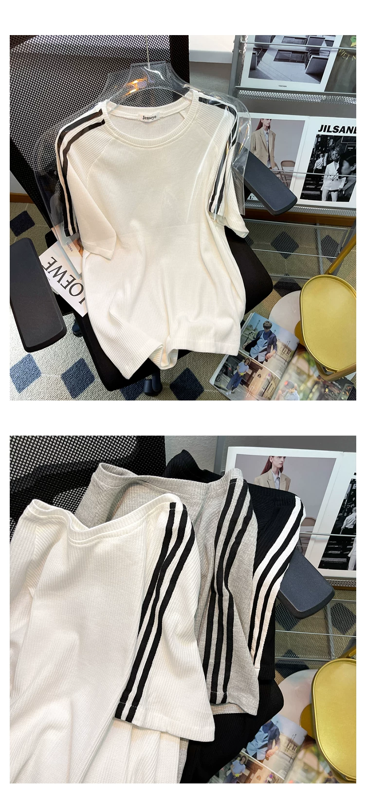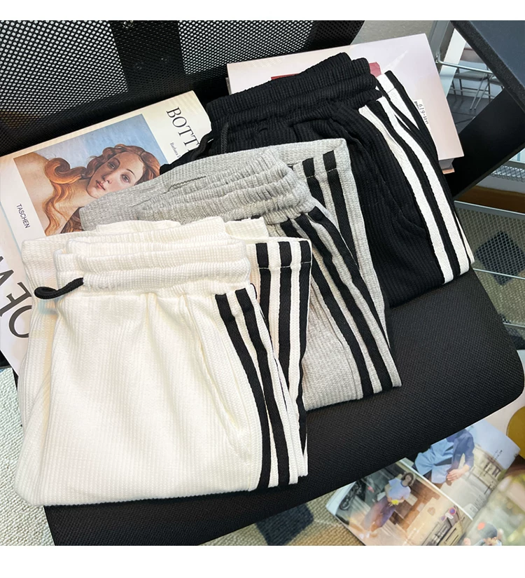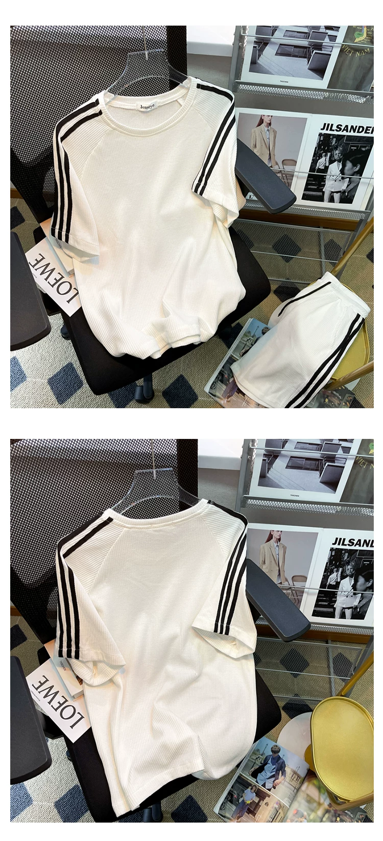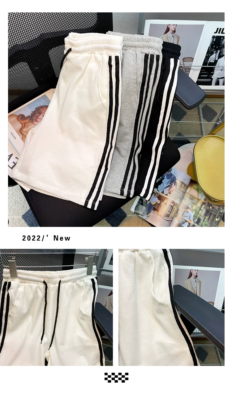 - Bộ đồ thể thao Waffle dành cho nam, bộ đôi áo phông và quần đùi kẻ sọc rộng rãi thời trang mùa hè dành cho cặp đôi.
