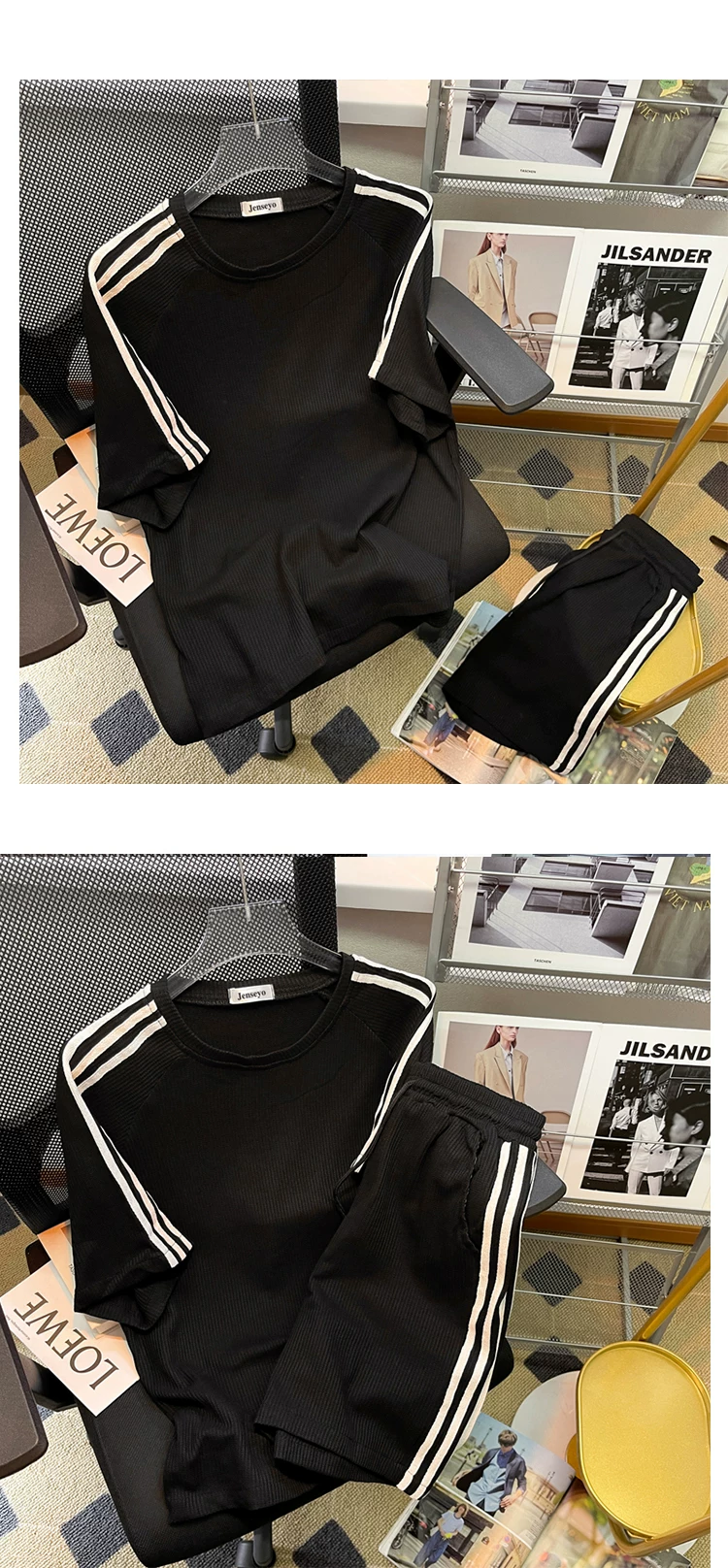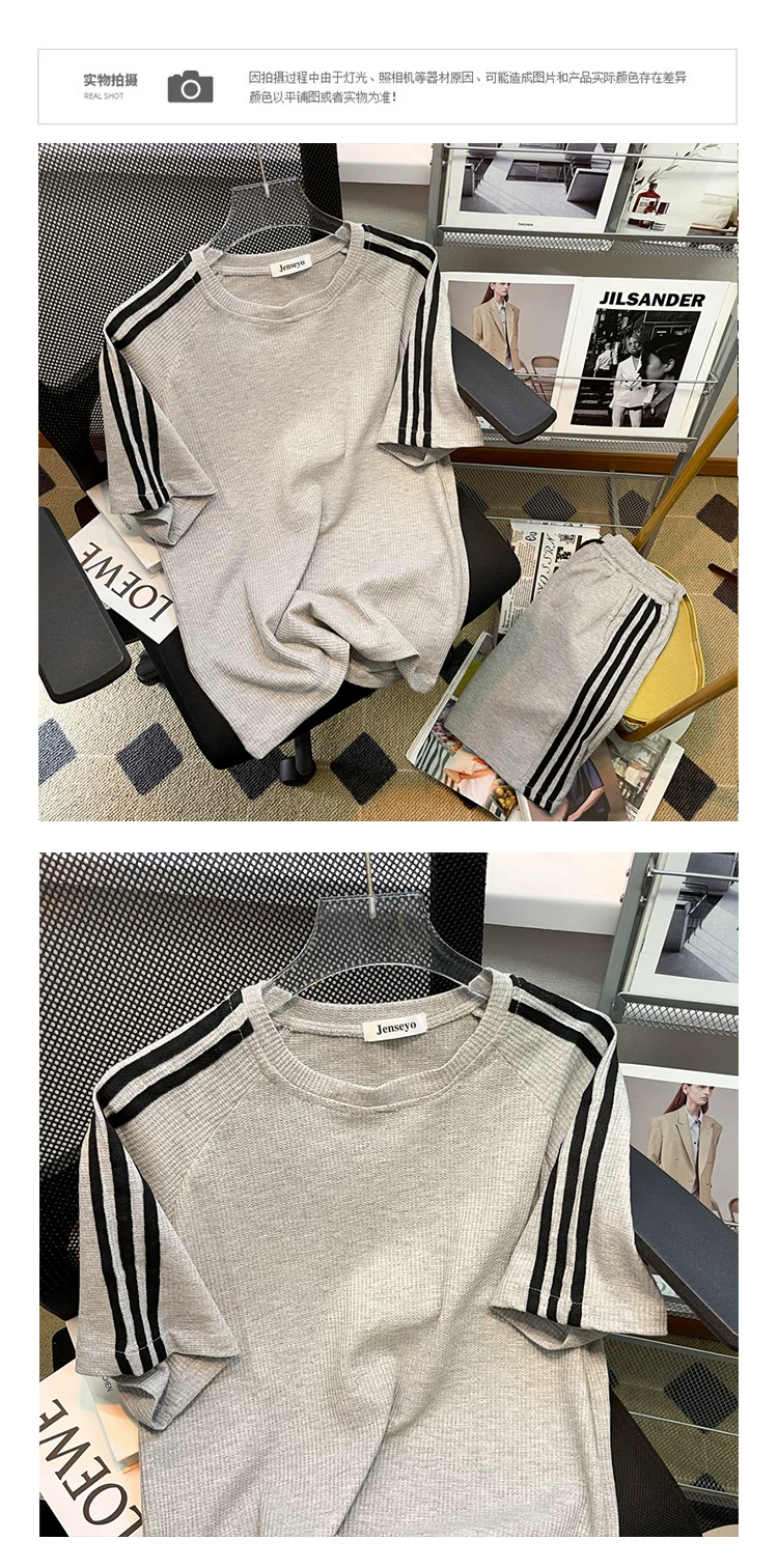 Bộ đồ thể thao Waffle dành cho nam, bộ đôi áo phông và quần đùi kẻ sọc rộng rãi thời trang mùa hè dành cho cặp đôi.