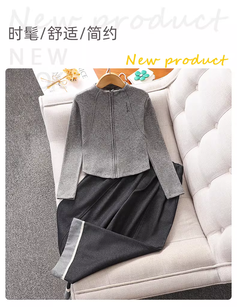 - Bộ đồ thu đông bé gái, áo khoác có khóa kéo trẻ em, kiểu mới xuân thu 2025, quần jean thời trang cá tính hai mảnh