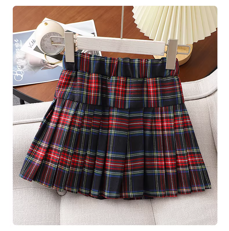 - Bộ đồ thu đông nữ 2025 kiểu mới thời trang áo len đỏ chân váy xếp ly dành cho trẻ lớn, chân váy kiểu JK trẻ em