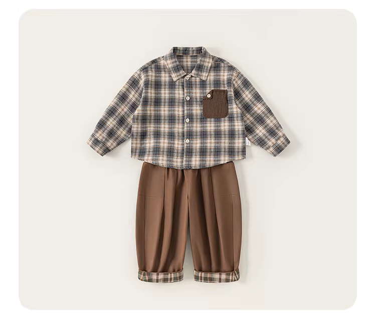 - Bộ đồ trẻ em INSbobo kiểu mới 2025, áo sơ mi thời trang thu đông cho bé trai, quần thời trang thu đông trẻ em cá tính