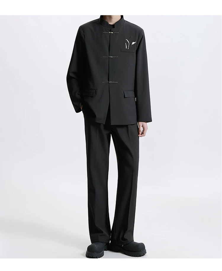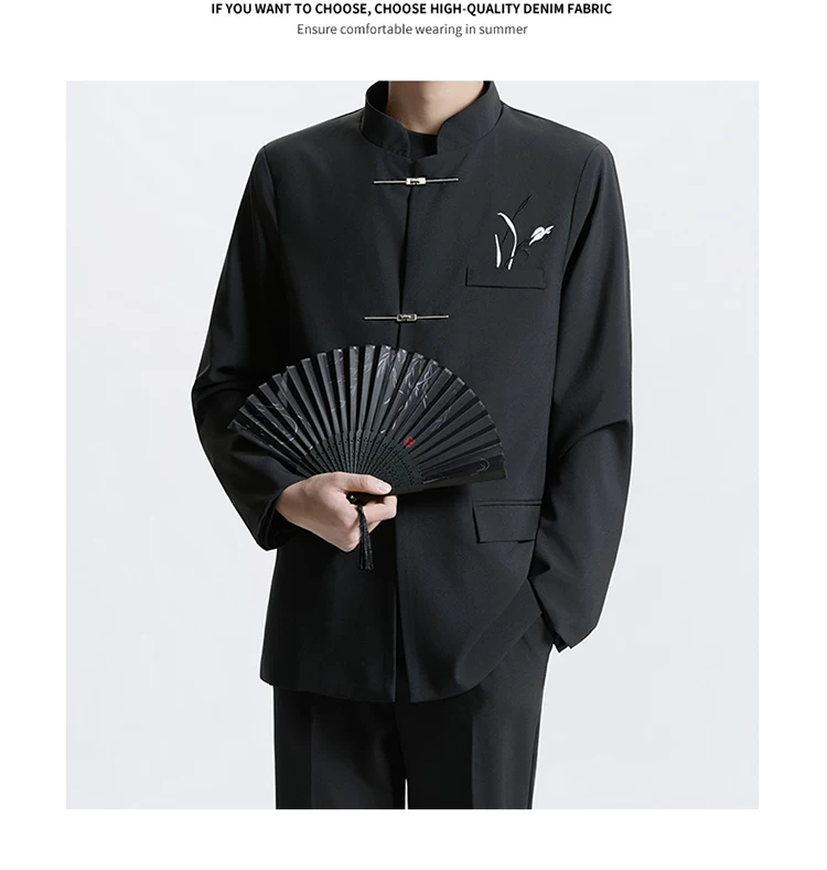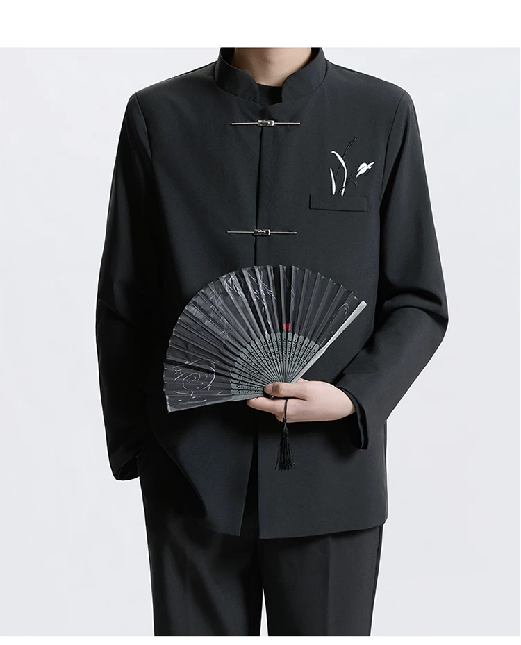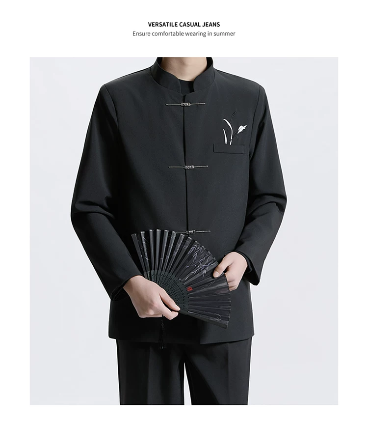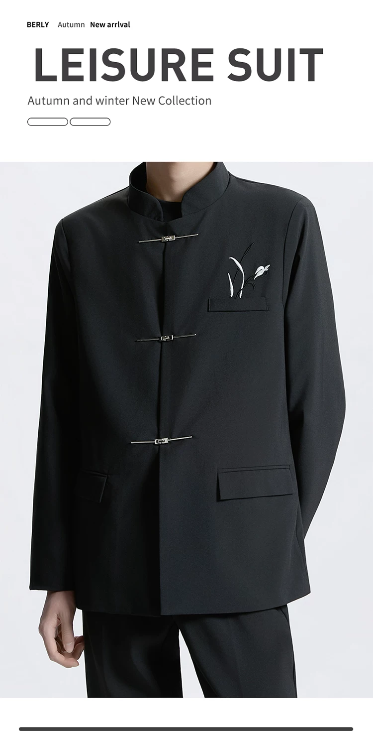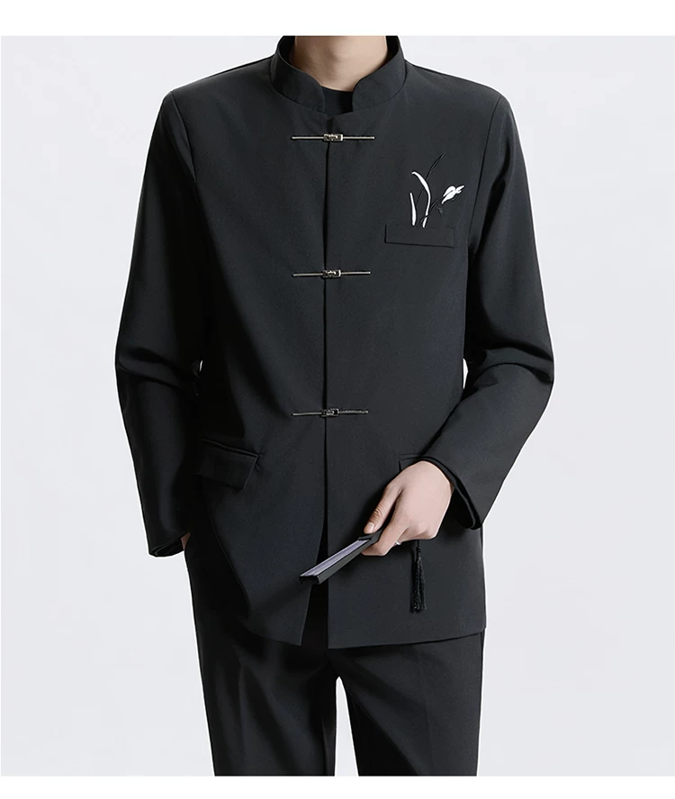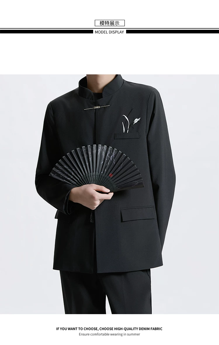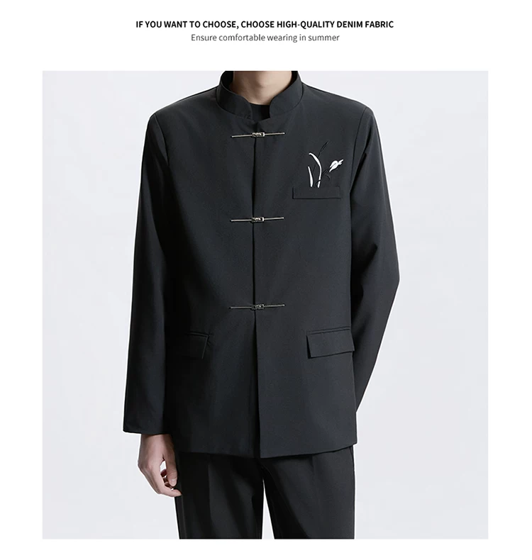 - Bộ đồ Trung Sơn thêu kiểu Trung Quốc mới dành cho nam, áo khoác blazer cài cúc cổ đứng mùa xuân thu, bộ đồ phong cách dân tộc đa năng cao cấp.