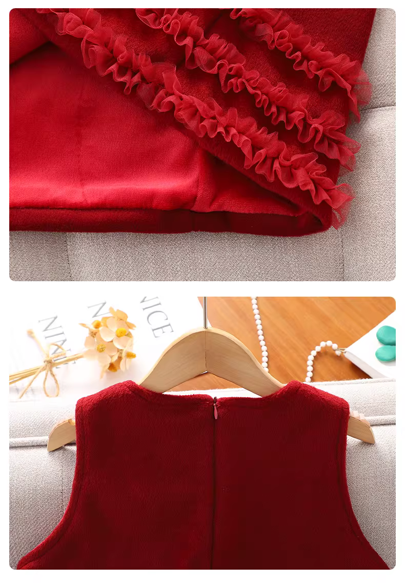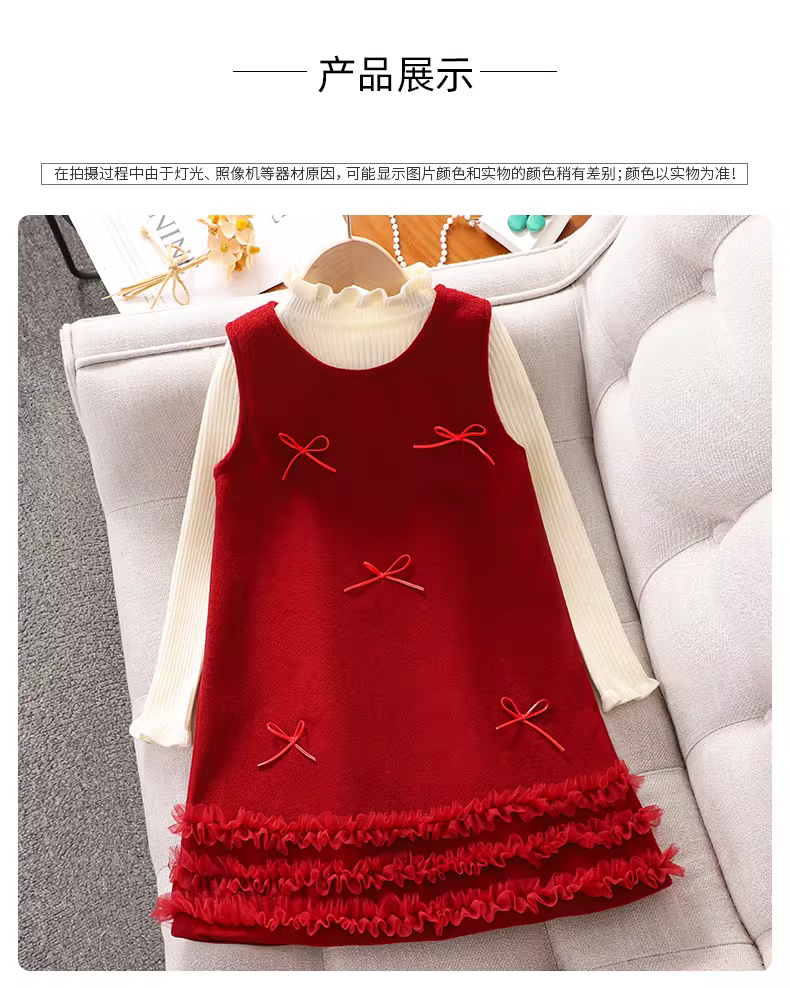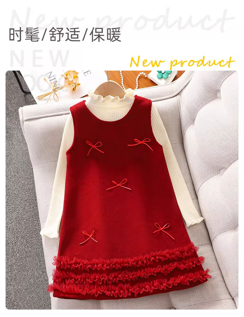 Bộ đồ váy đỏ cho bé gái mùa thu đông Áo len váy năm mới cho trẻ em Quần áo mùa đông cho bé gái Quần áo len lót lông cừu Quần áo năm mới
