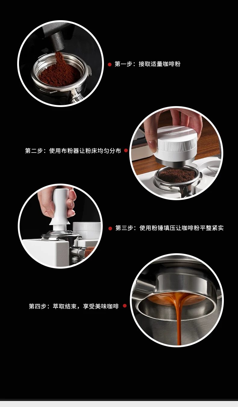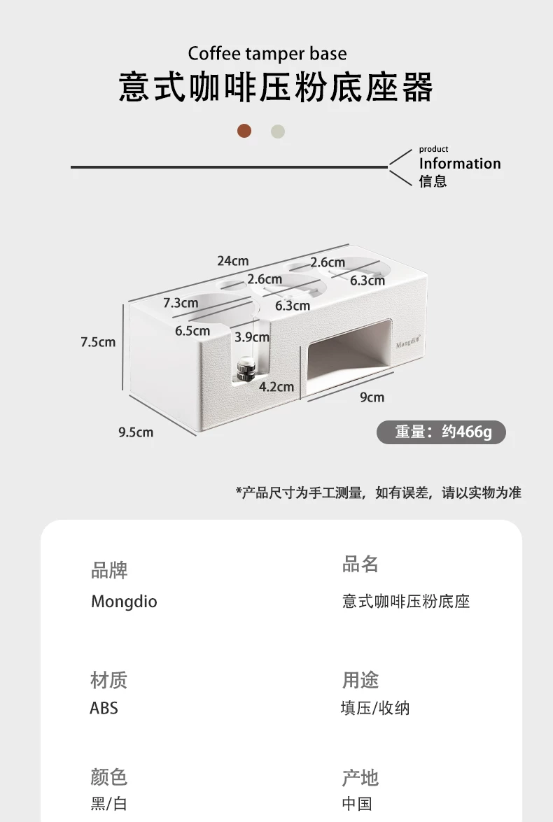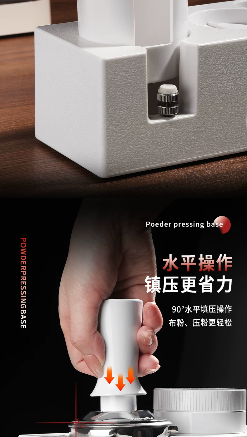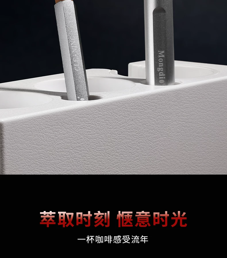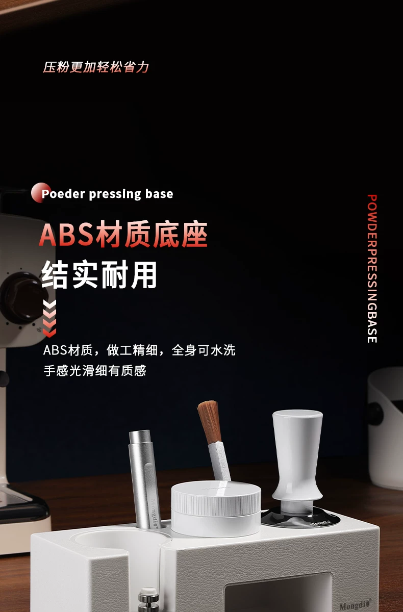 - Bộ dụng cụ pha cà phê Mongdio: đế ép cà phê tự cân bằng, dụng cụ phân phối bột cà phê, búa ép cà phê, tay cầm espresso, bộ dụng cụ lưu trữ