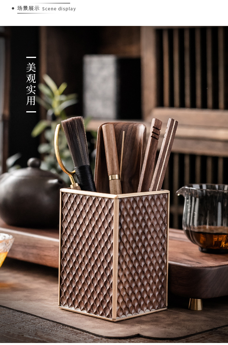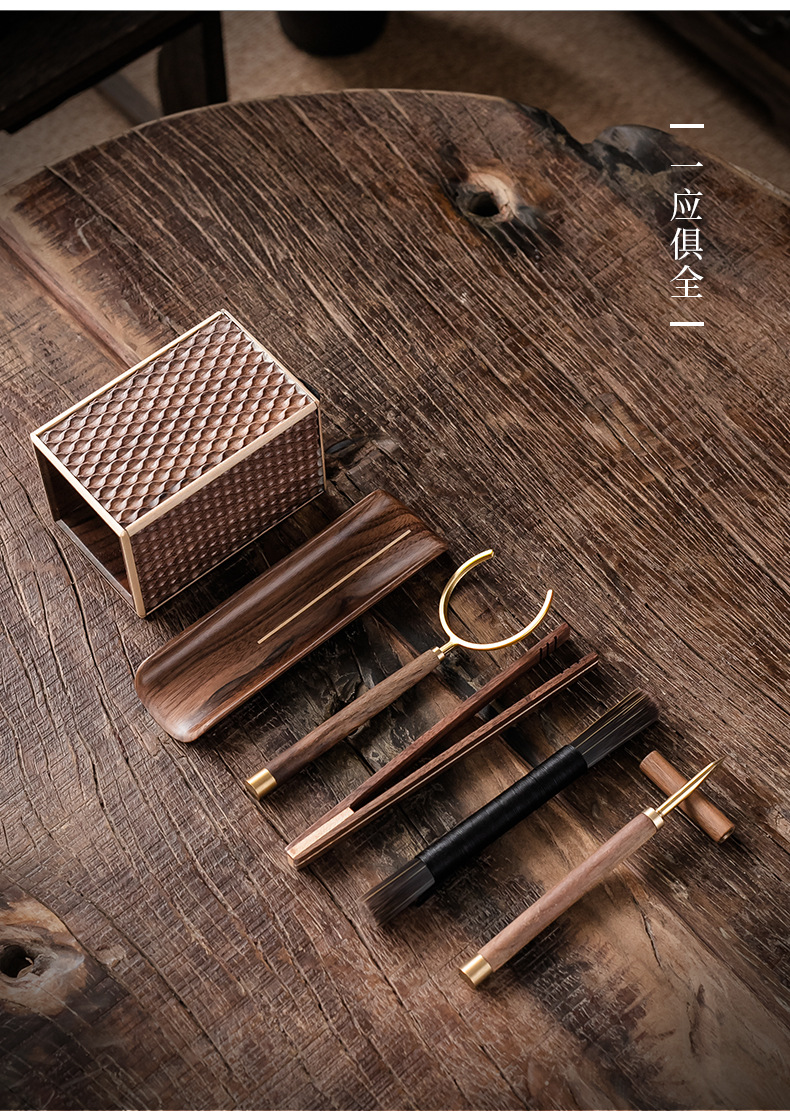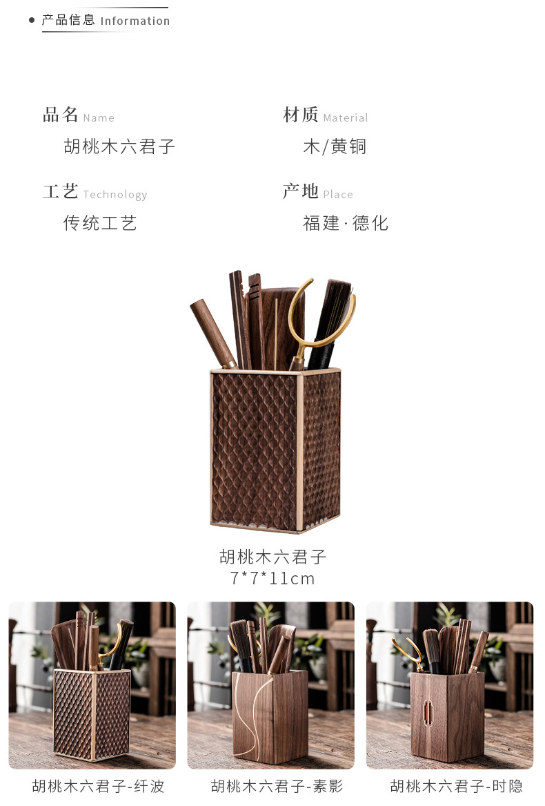 Bộ dụng cụ pha trà 6 quý ông Kung Fu trà đạo bằng Gỗ Óc Chó Bộ dụng cụ pha trà cao cấp chuyên nghiệp dao trà