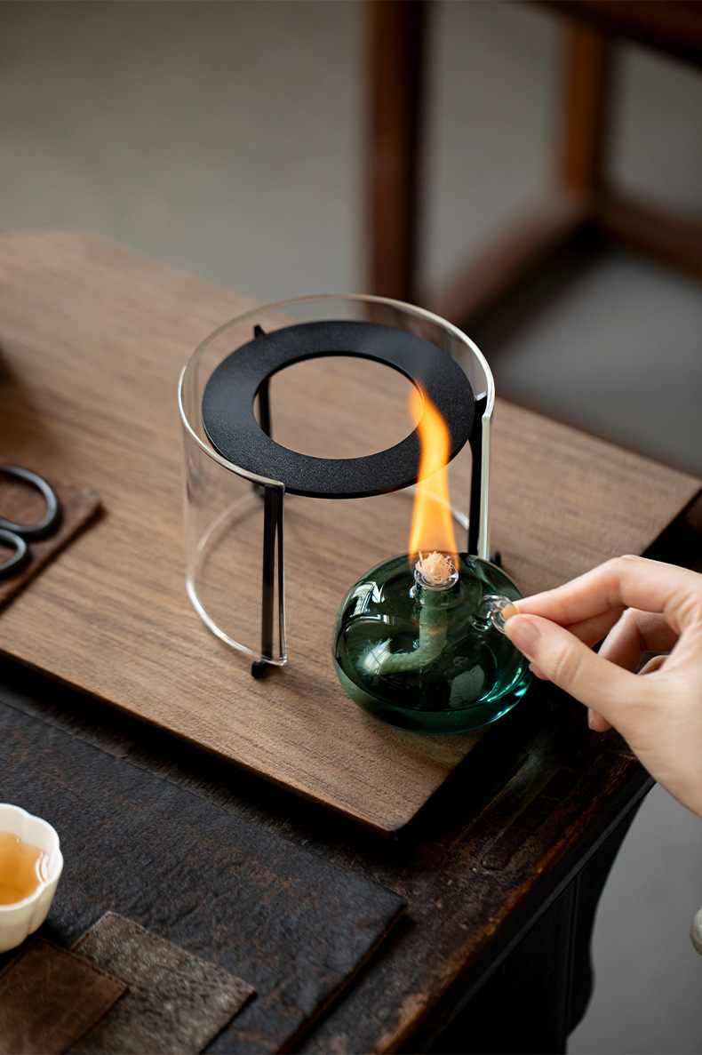 Bộ dụng cụ pha trà bằng kính borosilicate cao cấp có giá đỡ bằng sắt, máy pha trà nóng, bếp giữ nhiệt trà, bếp cồn, bếp đun trà bằng lửa trực tiếp