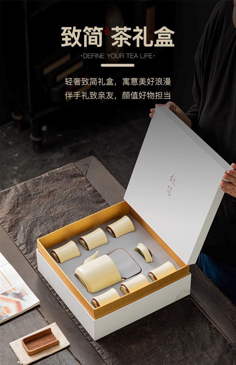 - Bộ dụng cụ pha trà công phu cốc trà gốm sứ hộp quà dung tích lớn khay trà óc chó đơn giản gia dụng sang trọng