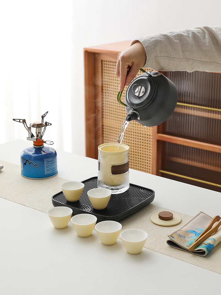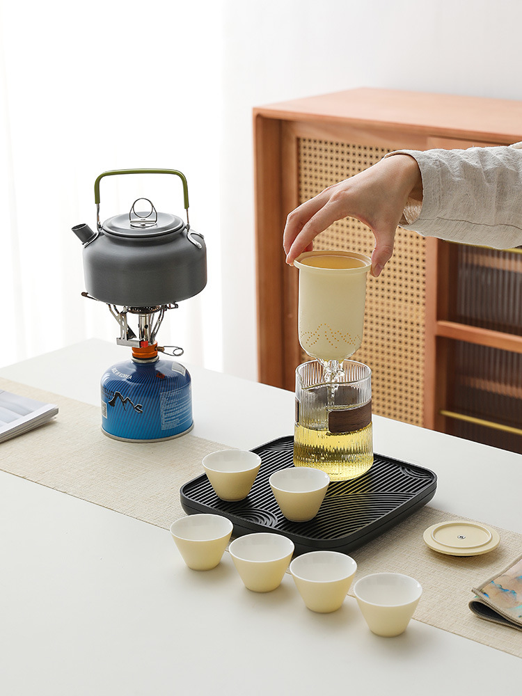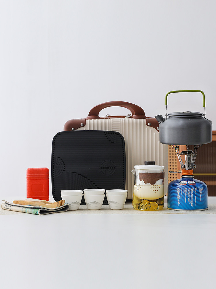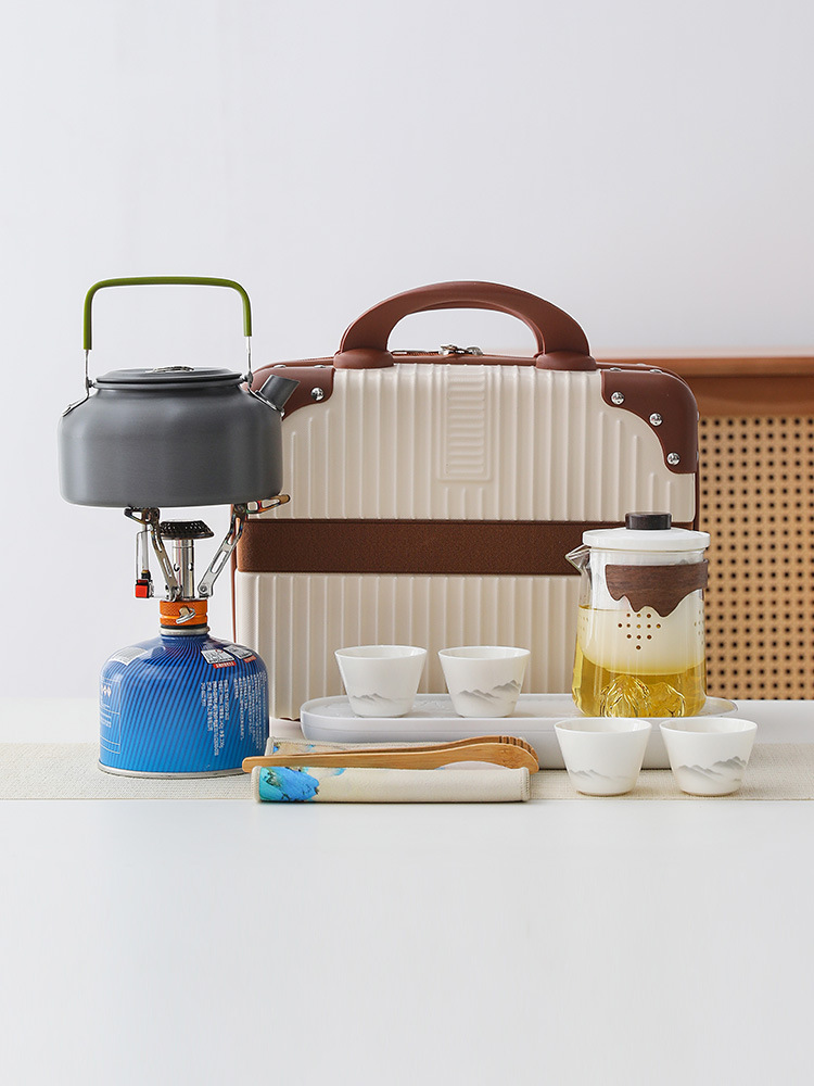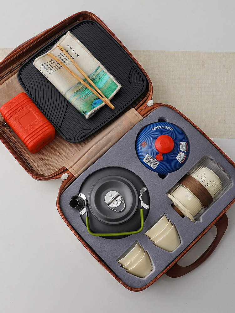 Bộ dụng cụ pha trà du lịch nước đun nước ngoài trời, túi đựng đồ cầm tay cắm trại trên xe có bếp kẹp, dụng cụ pha trà Kung Fu pha trà