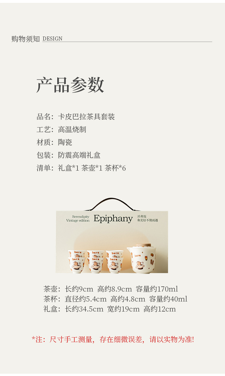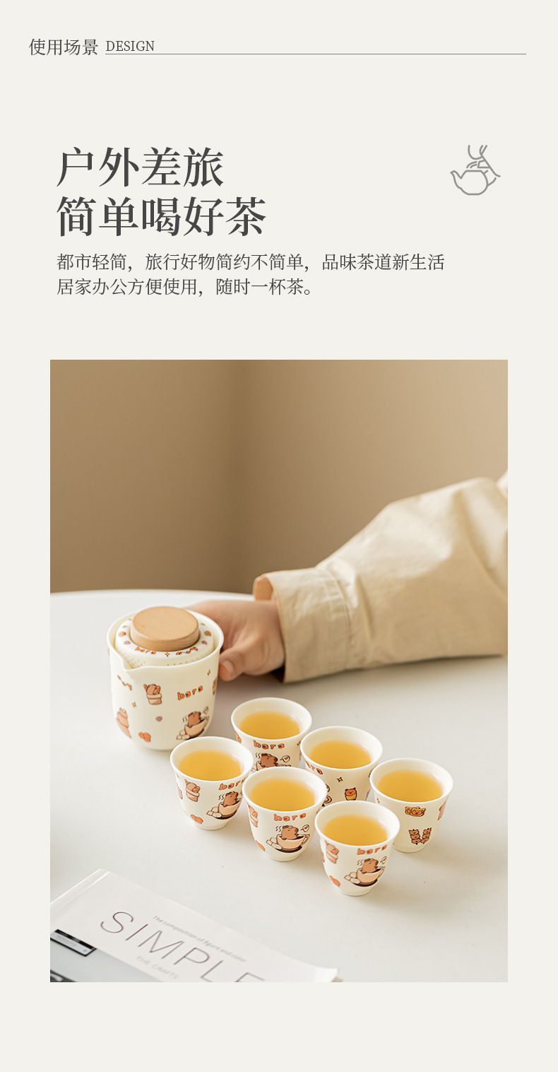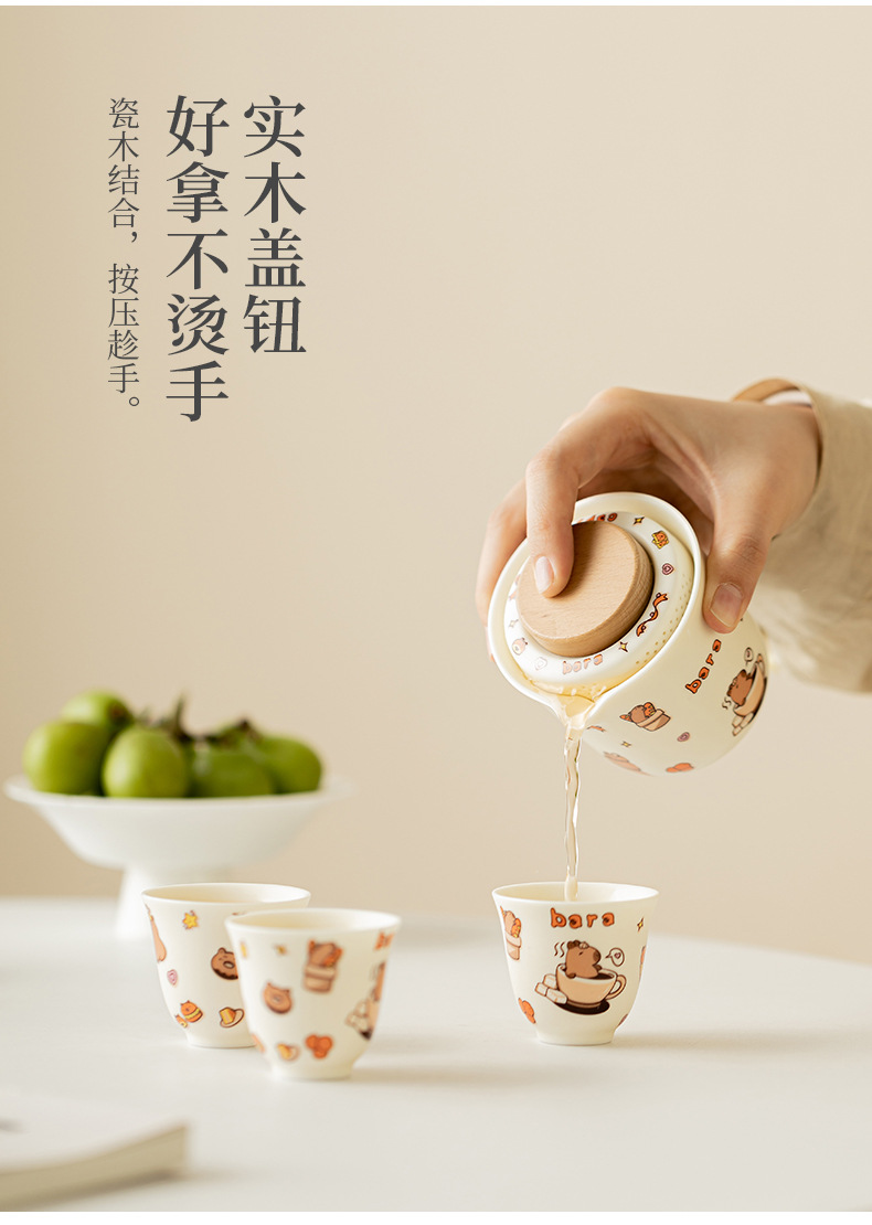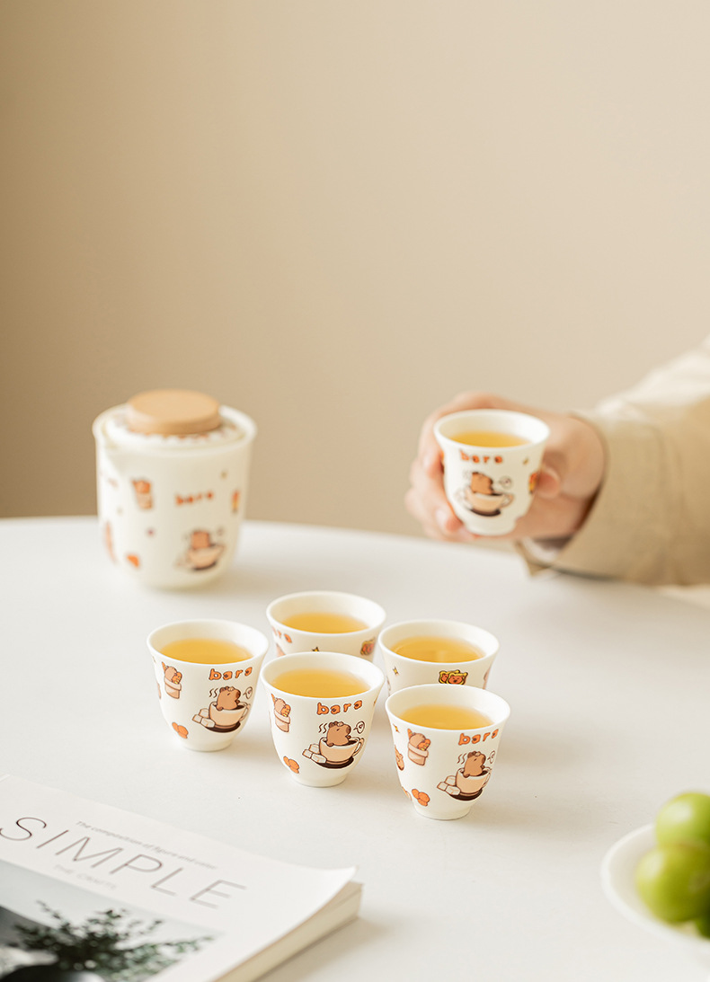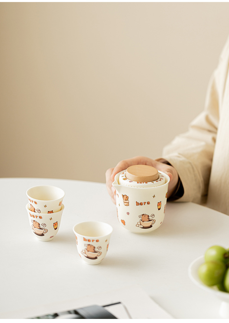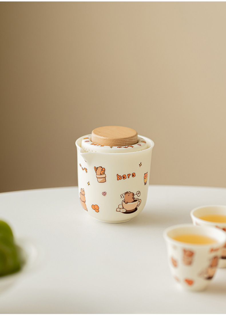 Bộ dụng cụ pha trà Kapibara ấm pha trà cầm tay gốm sứ ấm pha trà cốc trà dụng cụ pha trà Kung Fu gia dụng hộp quà tặng lưu niệm