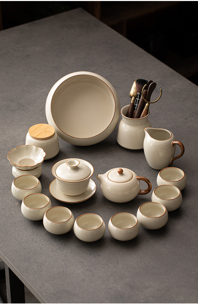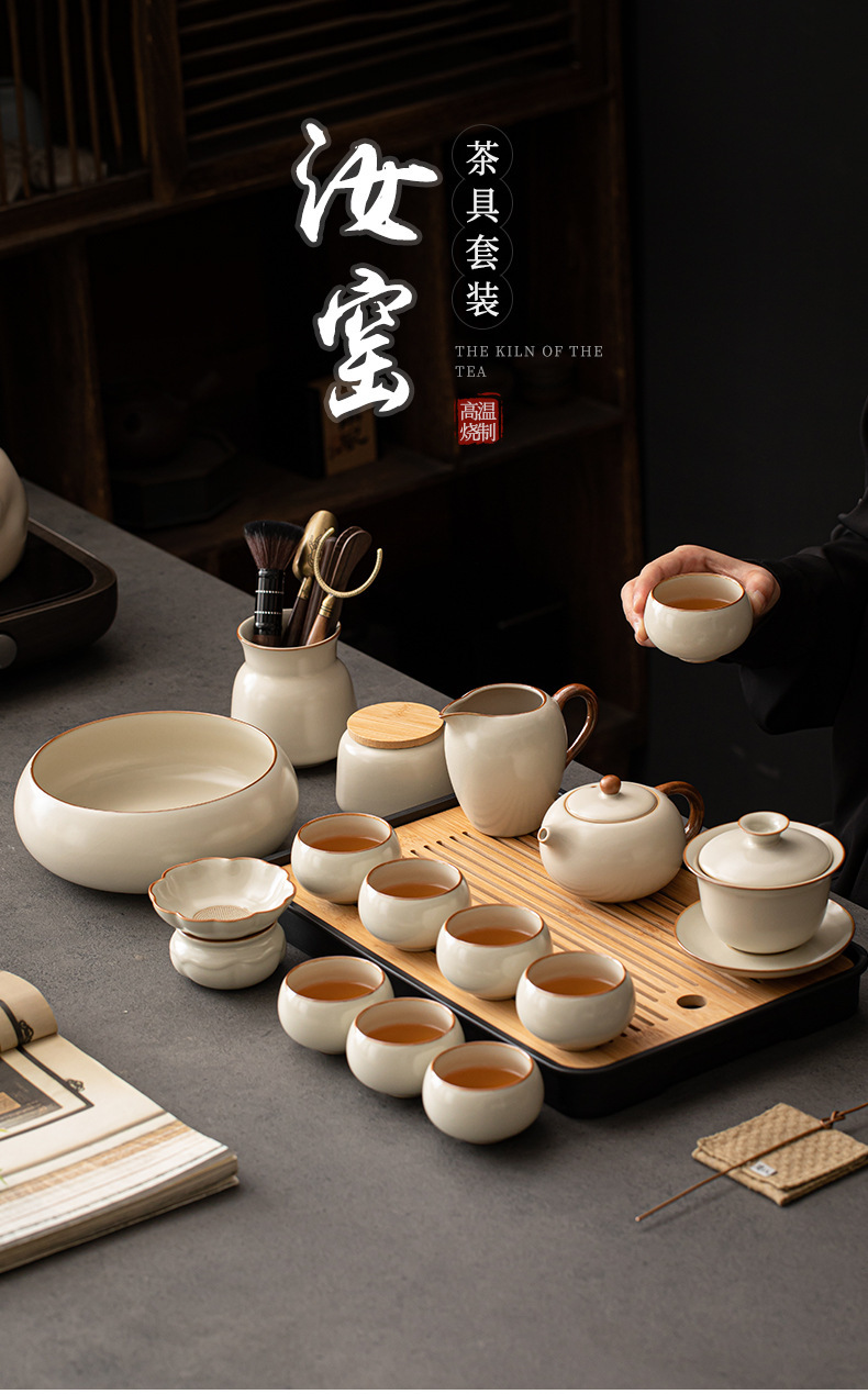 - Bộ dụng cụ pha trà Kung Fu Ru Kiln Bộ dụng cụ pha trà uống trà văn phòng mẫu mới 2025 bộ cốc trà ấm trà