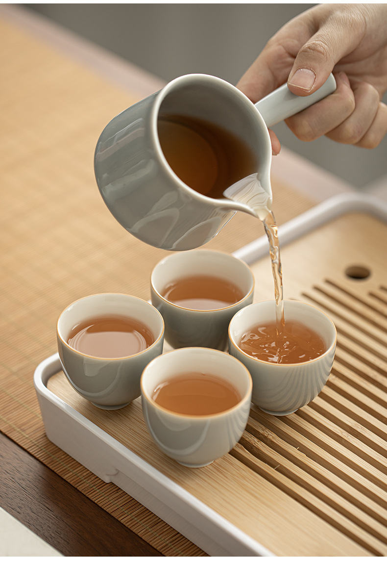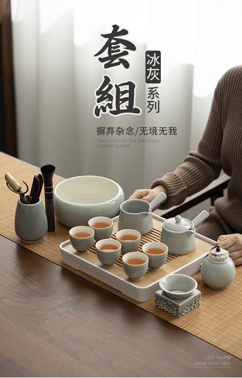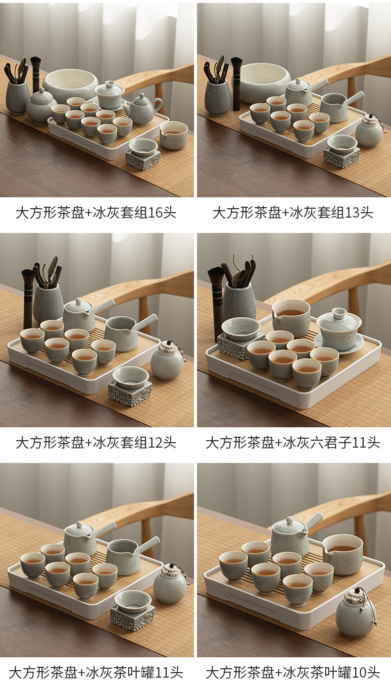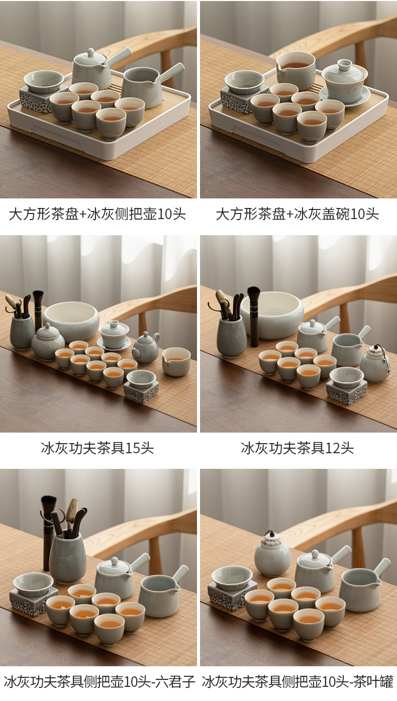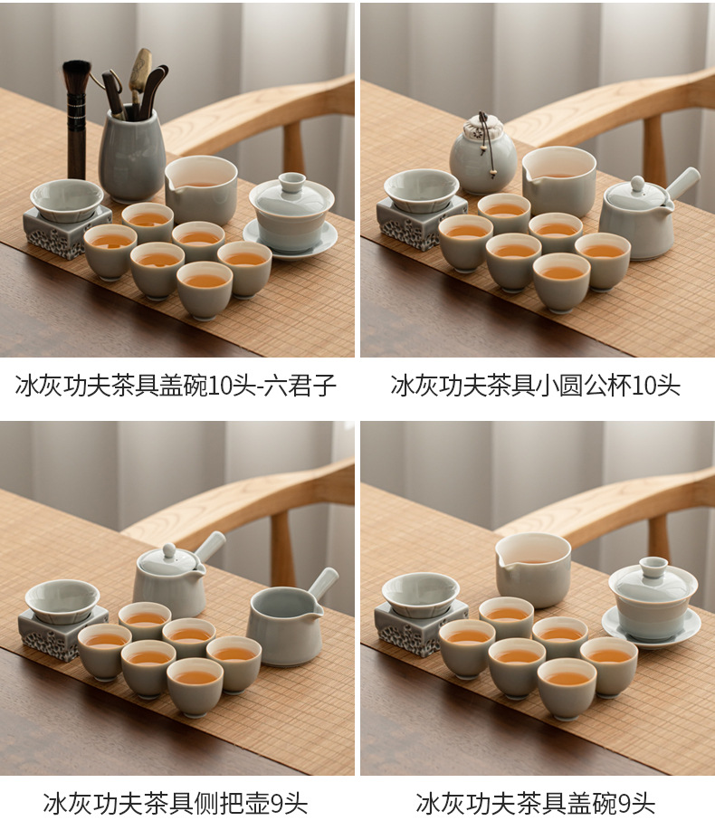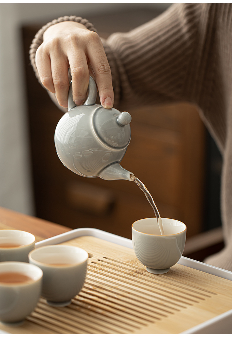 - Bộ dụng cụ pha trà Kung Fu tráng men màu xám đá Khay trà kiểu Nhật đựng nước cốc trà gốm sứ ngoài trời gia dụng nguyên Bộ pha trà