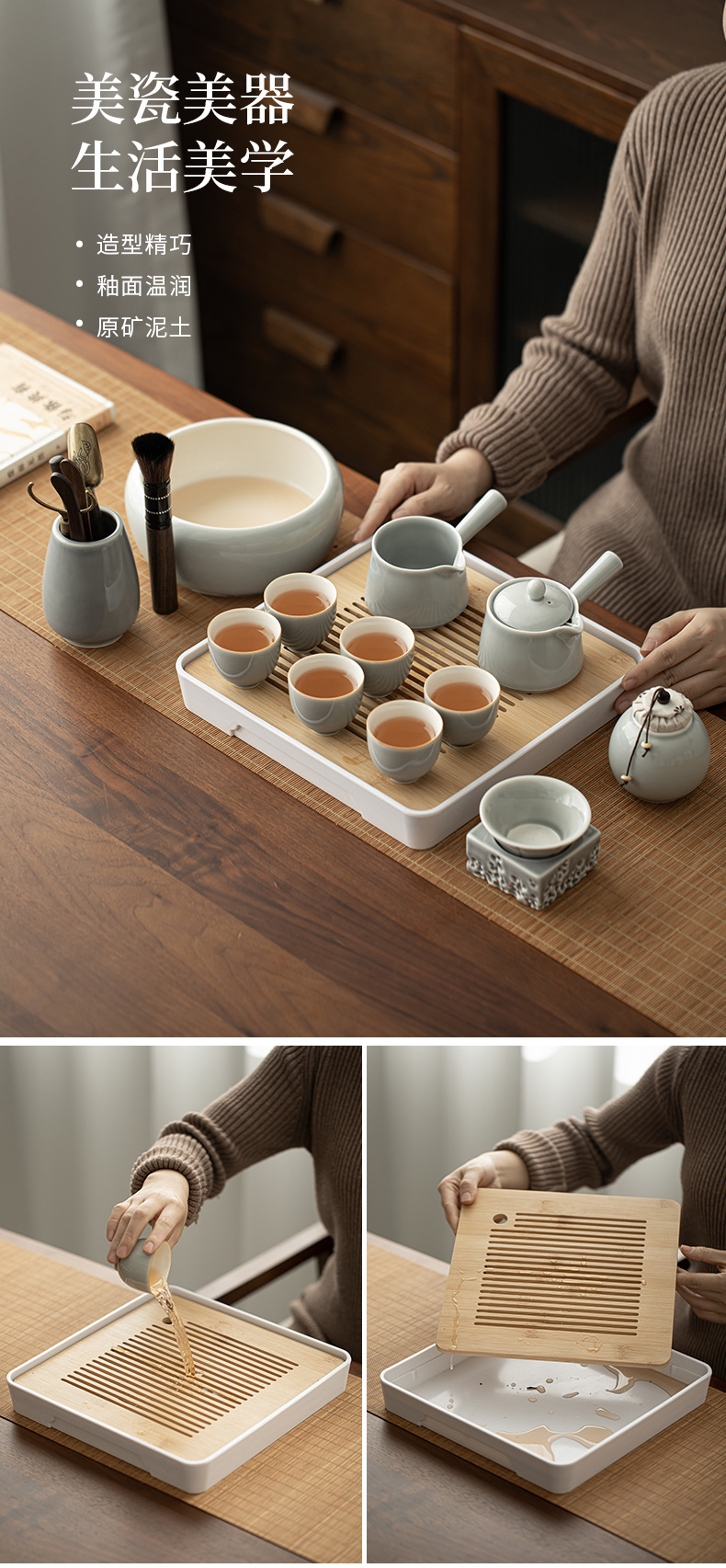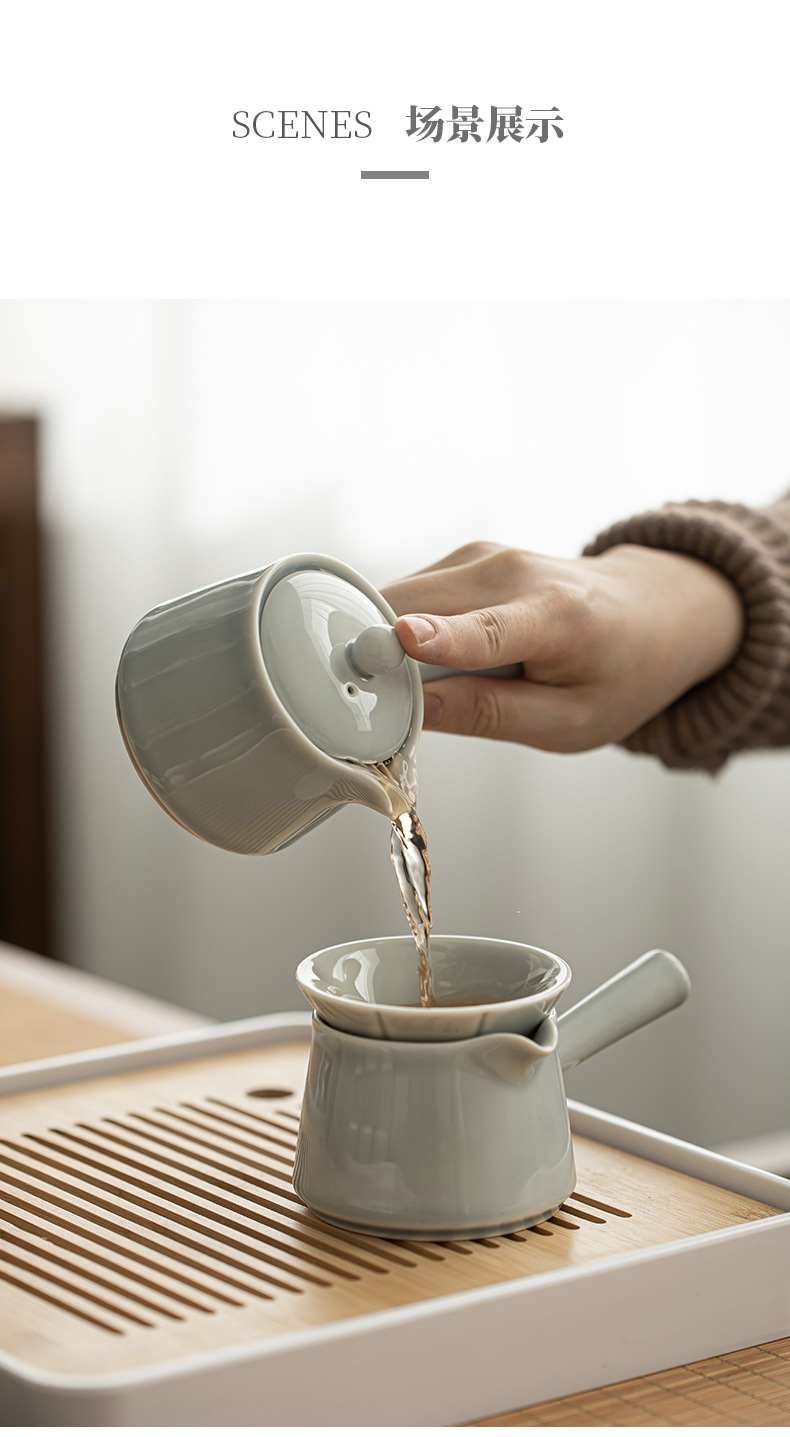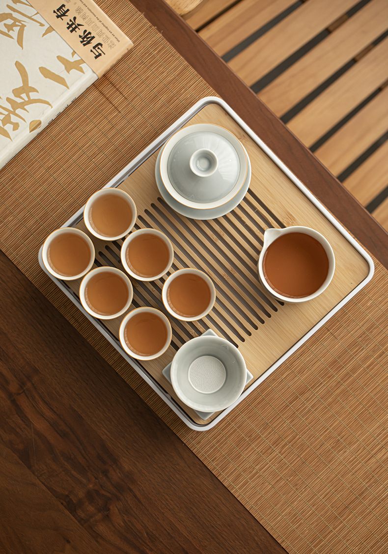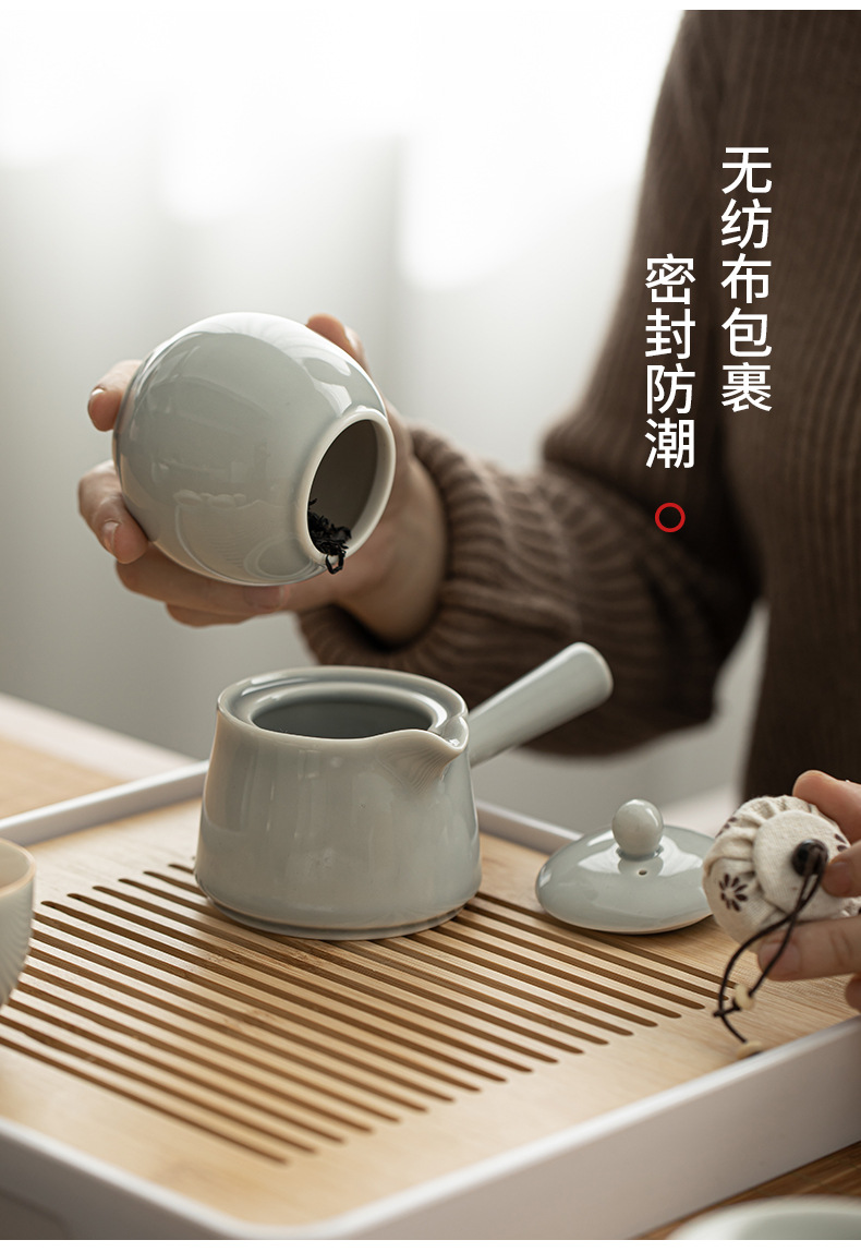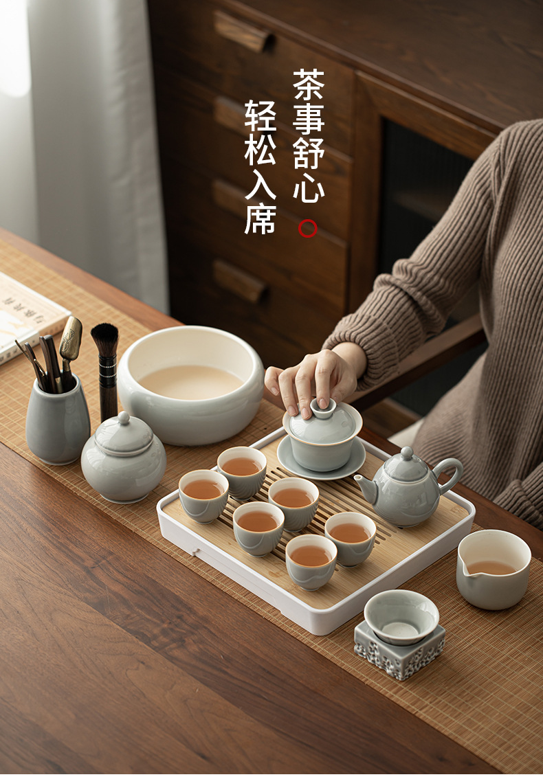 - Bộ dụng cụ pha trà Kung Fu tráng men màu xám đá Khay trà kiểu Nhật đựng nước cốc trà gốm sứ ngoài trời gia dụng nguyên Bộ pha trà