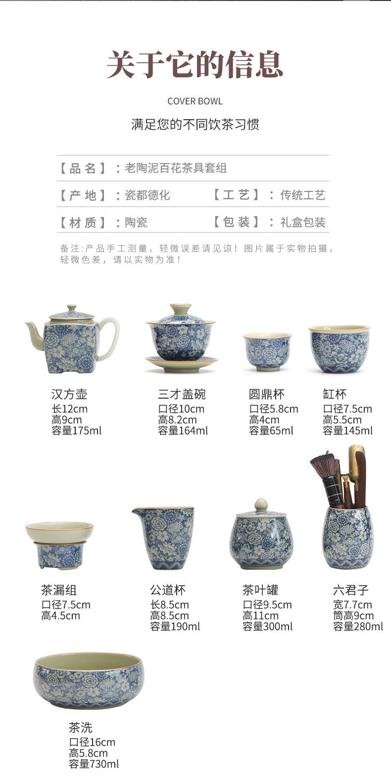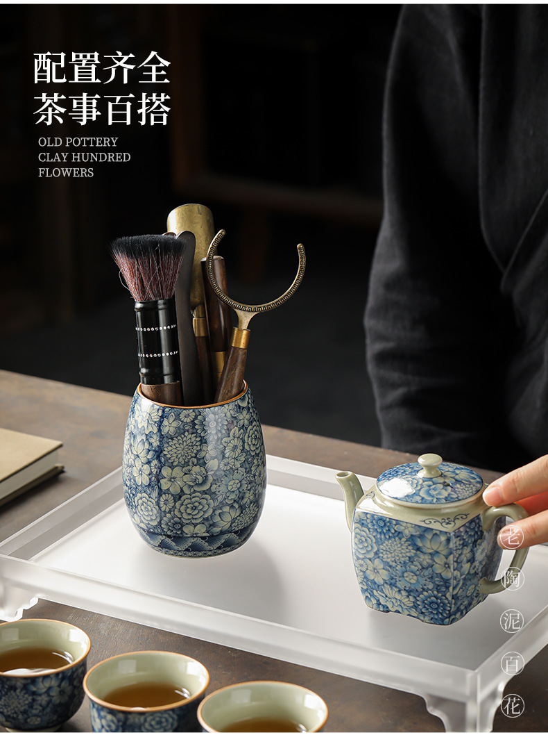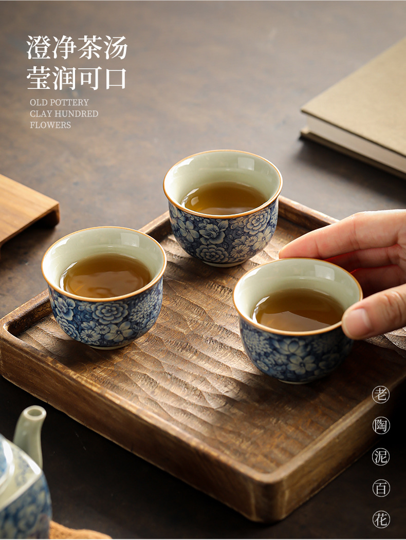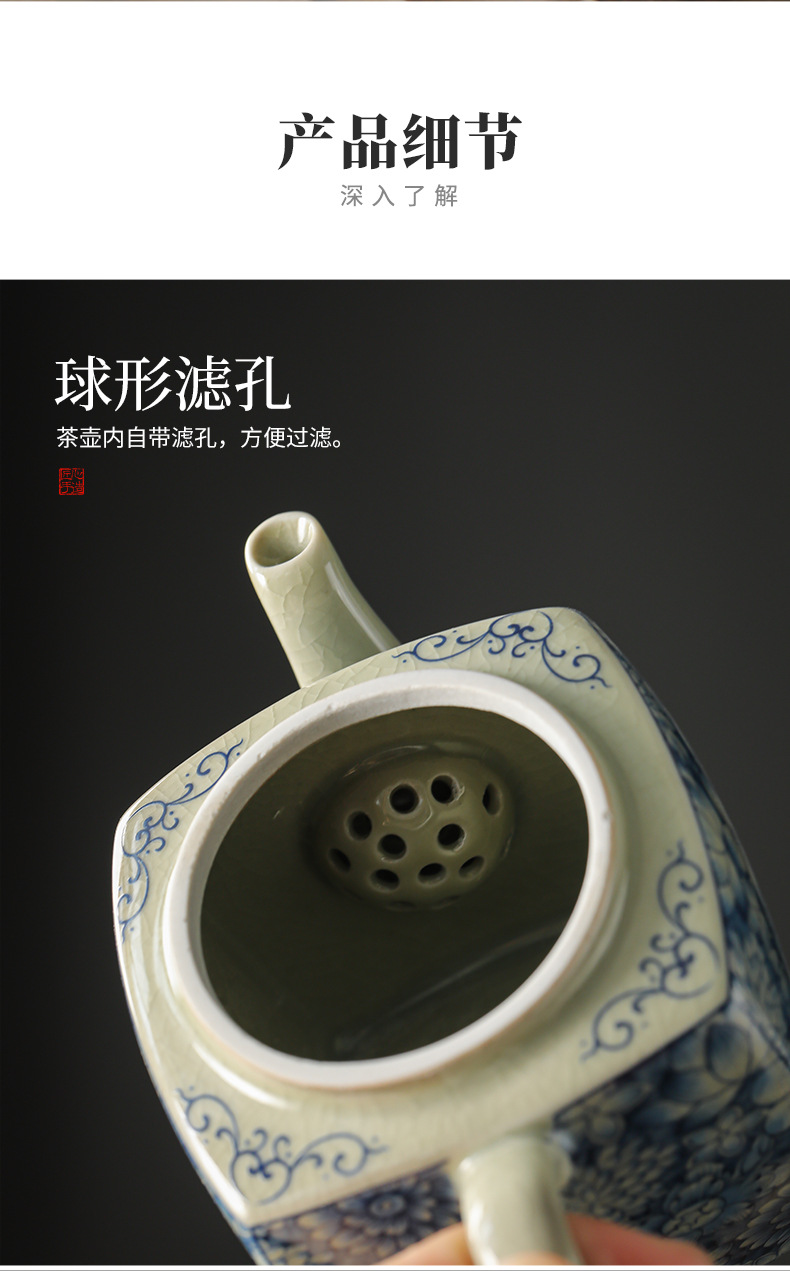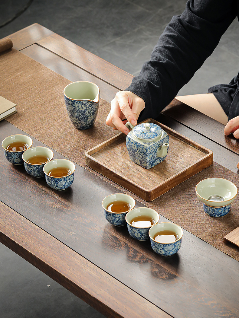 - Bộ dụng cụ pha trà Kung Fu xanh trắng đất sét cũ Ấm pha trà gốm sứ phòng khách gia dụng cốc trà Hộp quà tặng cao cấp