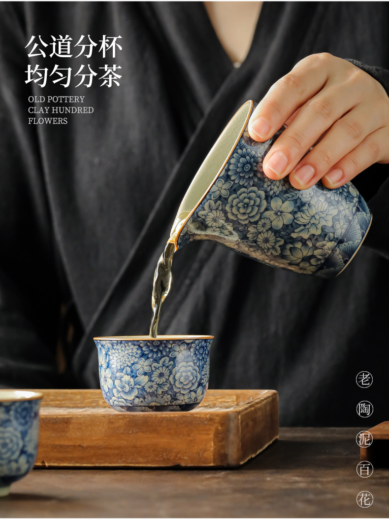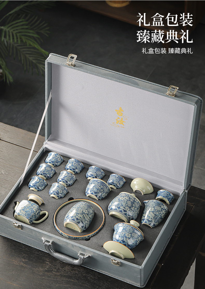 Bộ dụng cụ pha trà Kung Fu xanh trắng đất sét cũ Ấm pha trà gốm sứ phòng khách gia dụng cốc trà Hộp quà tặng cao cấp