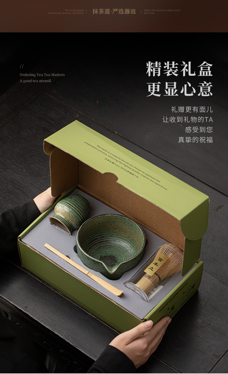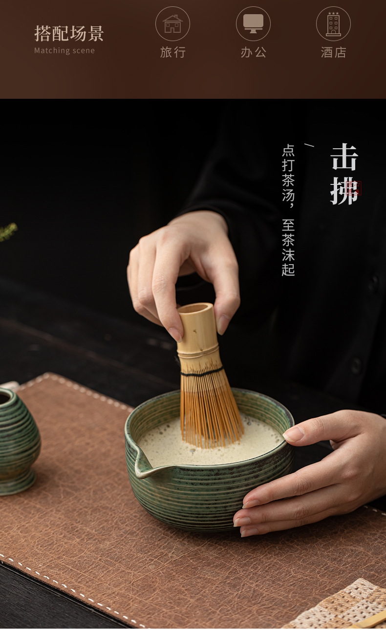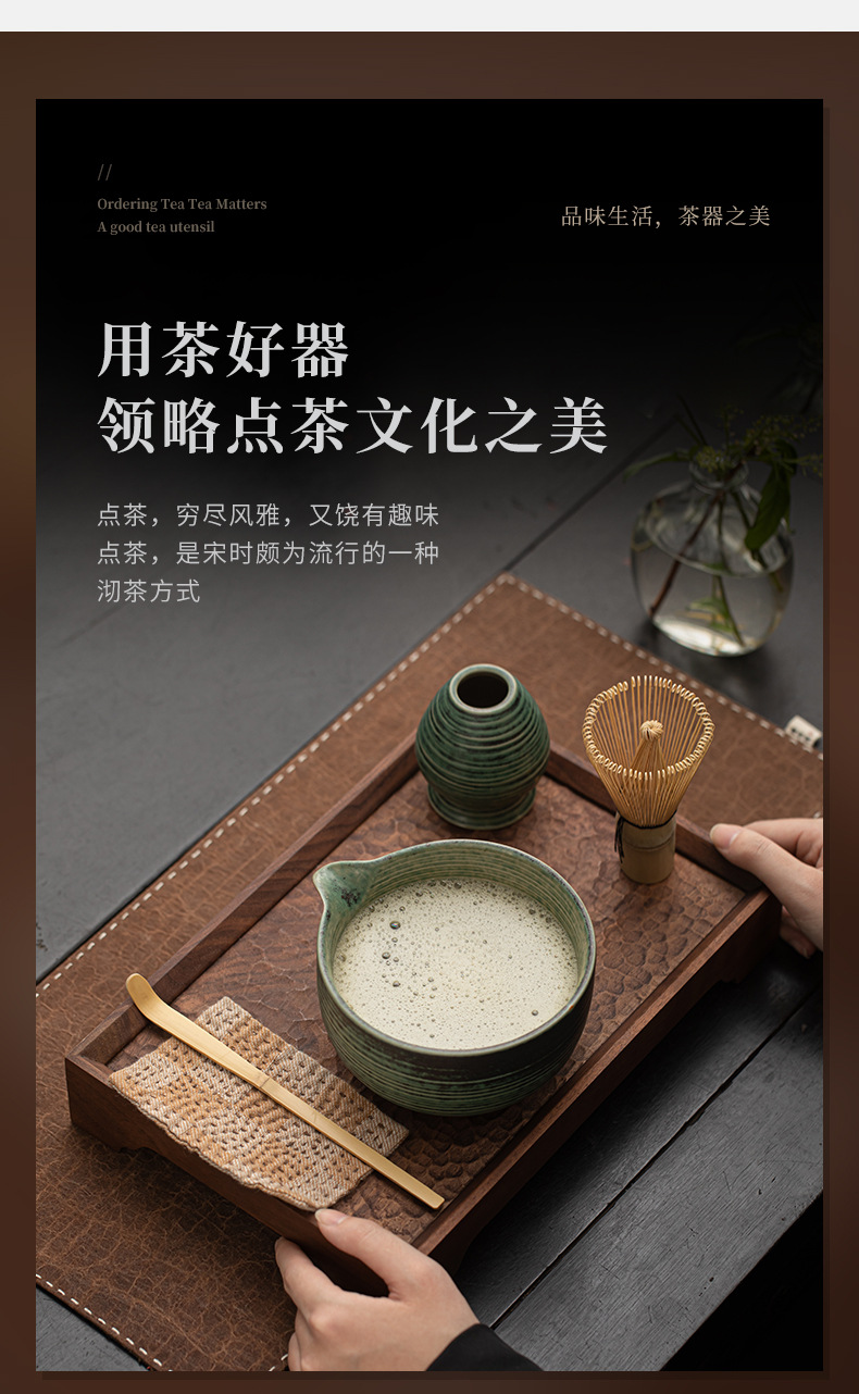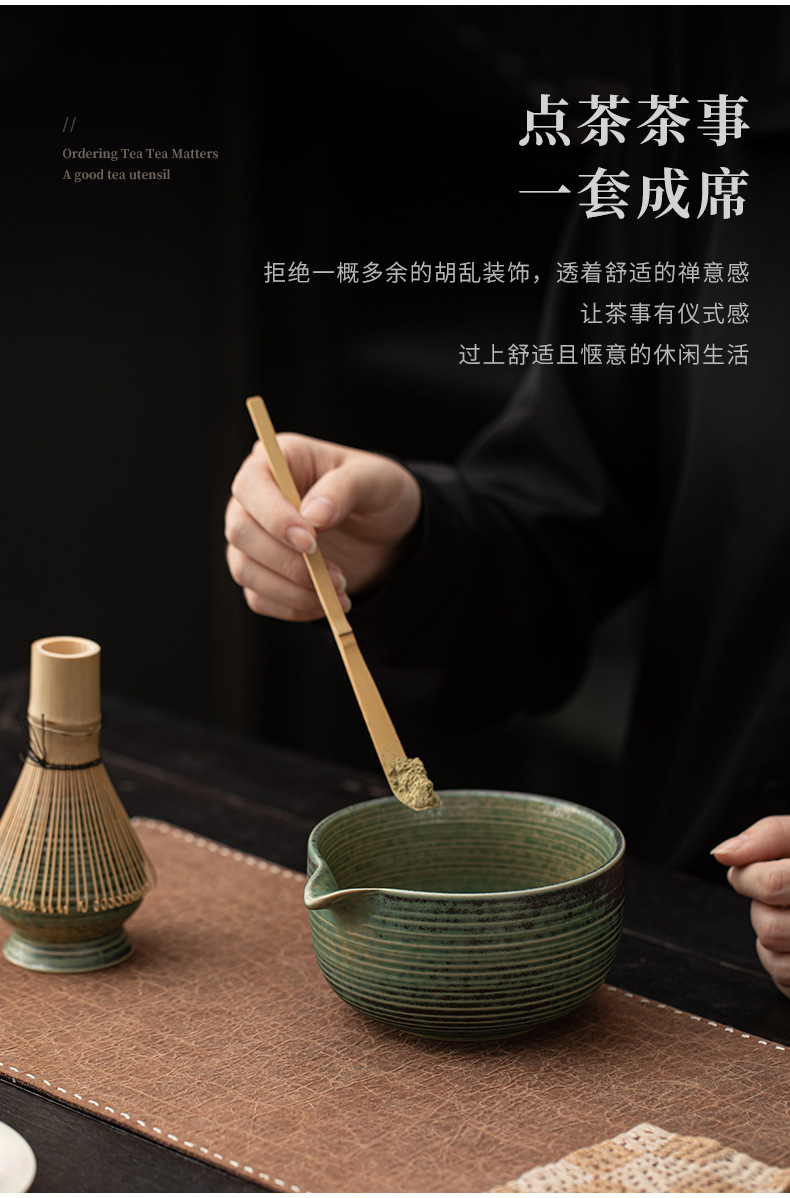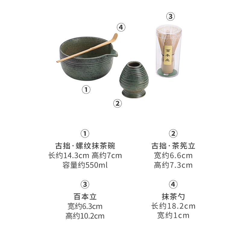 - Bộ dụng cụ pha trà matcha kiểu Nhật Bản, gồm bát matcha gốm sứ, dụng cụ đánh matcha, giá đỡ, phong cách cổ điển thời nhà Tống, phụ kiện trà đạo.
