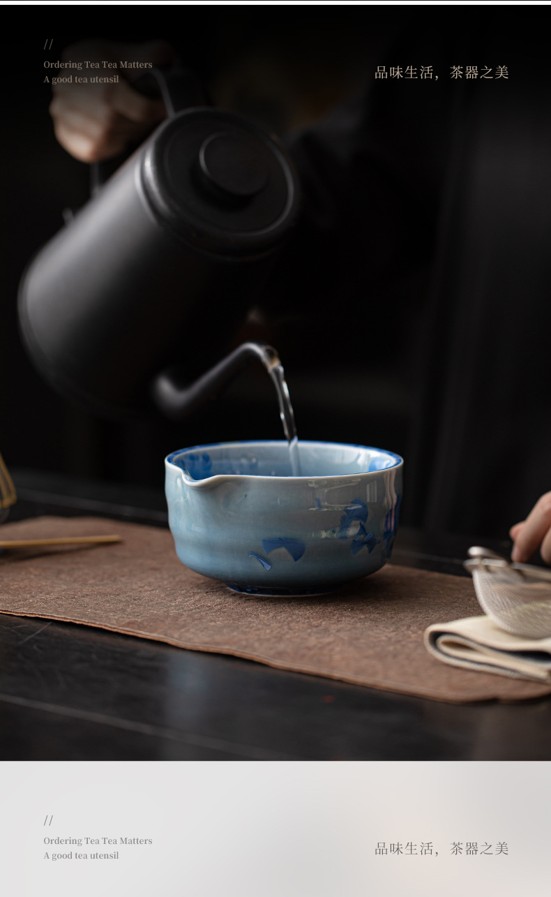 - Bộ dụng cụ pha trà Nhật Bản gồm 8 món: chén trà, dụng cụ đánh trà, rây trà, men gốm nung kết tinh thể hình bán xoắn hoa băng matcha.