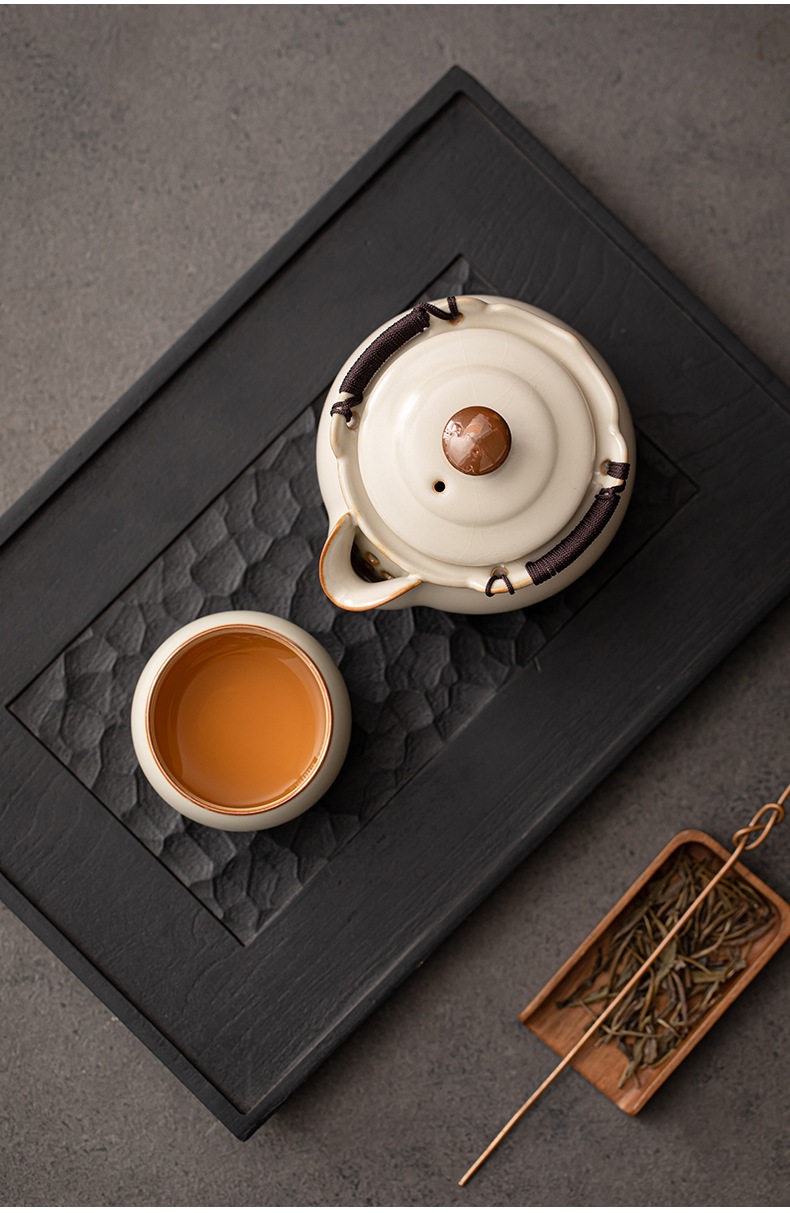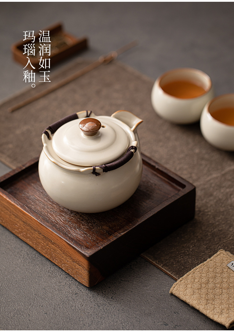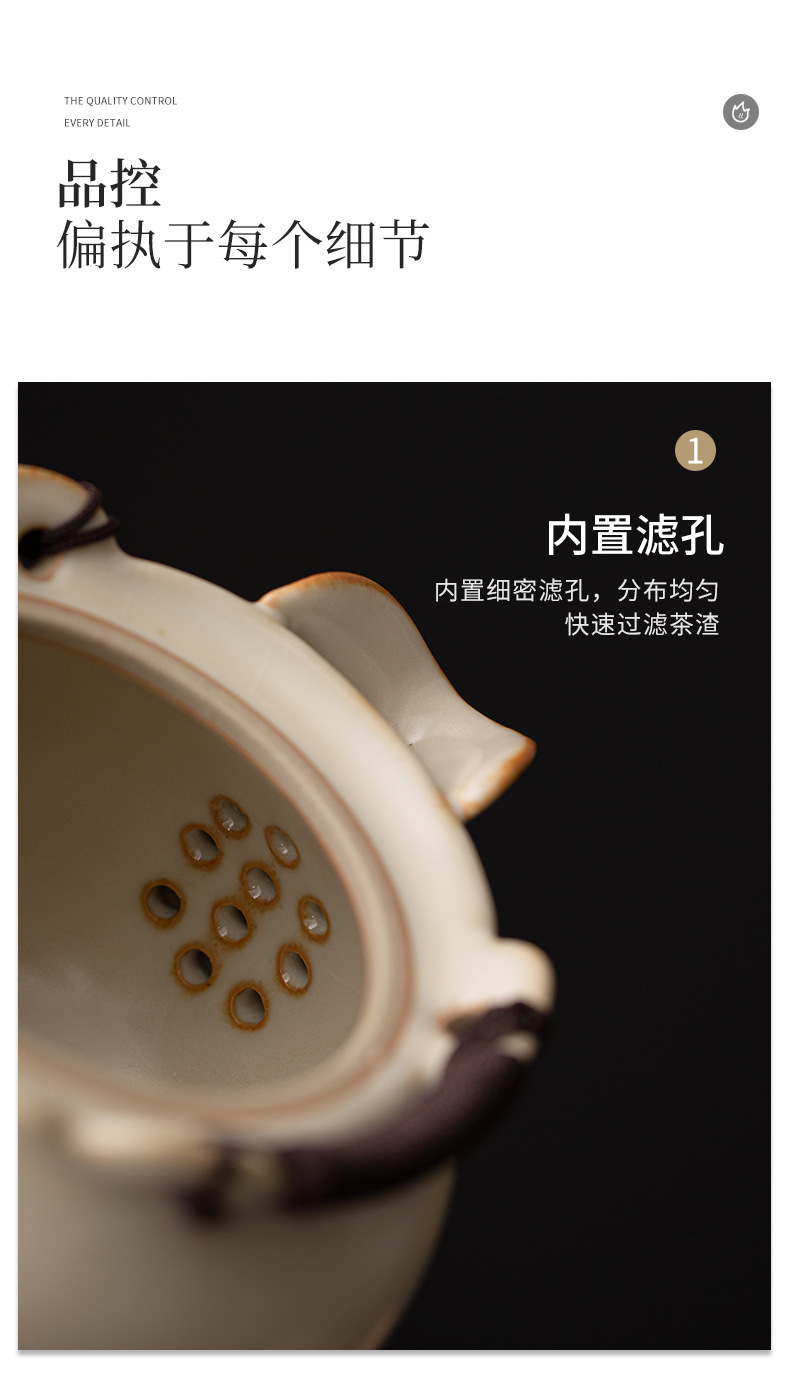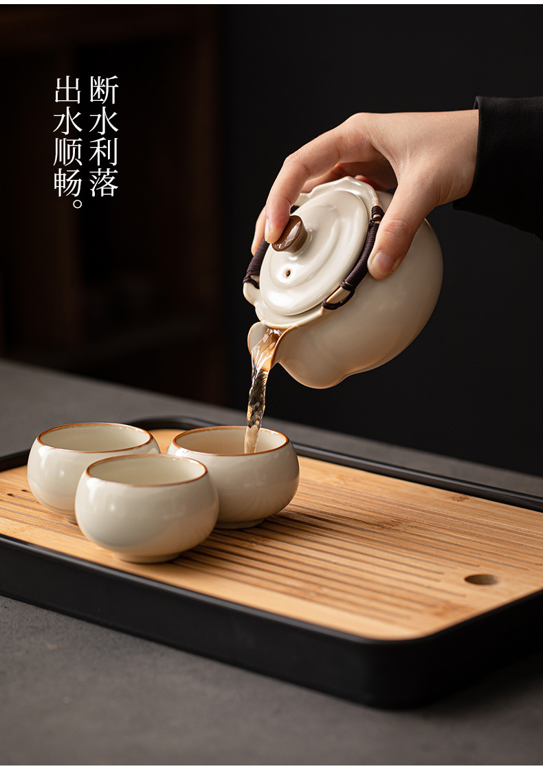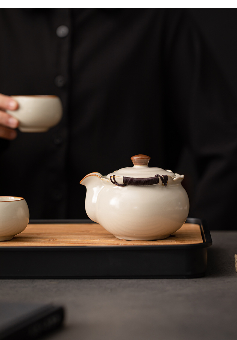 - Bộ dụng cụ pha trà Ru Kiln mẫu mới 2024 bộ bát nắp cao cấp sang trọng nhẹ gia dụng ấm cầm tay cốc trà Kung Fu bộ pha trà