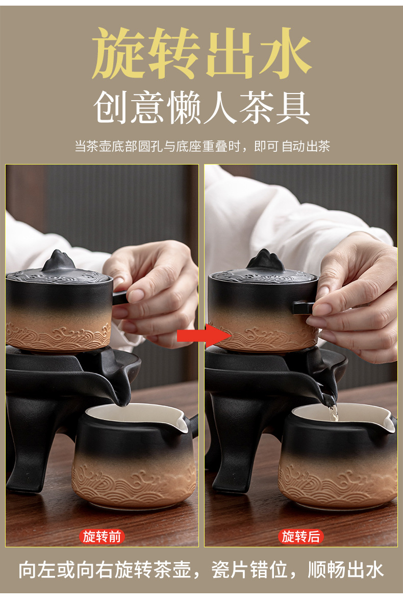 - Bộ dụng cụ pha trà tự động sóng bộ pha trà lười dụng cụ pha trà Kung Fu gốm văn phòng gia dụng ấm trà