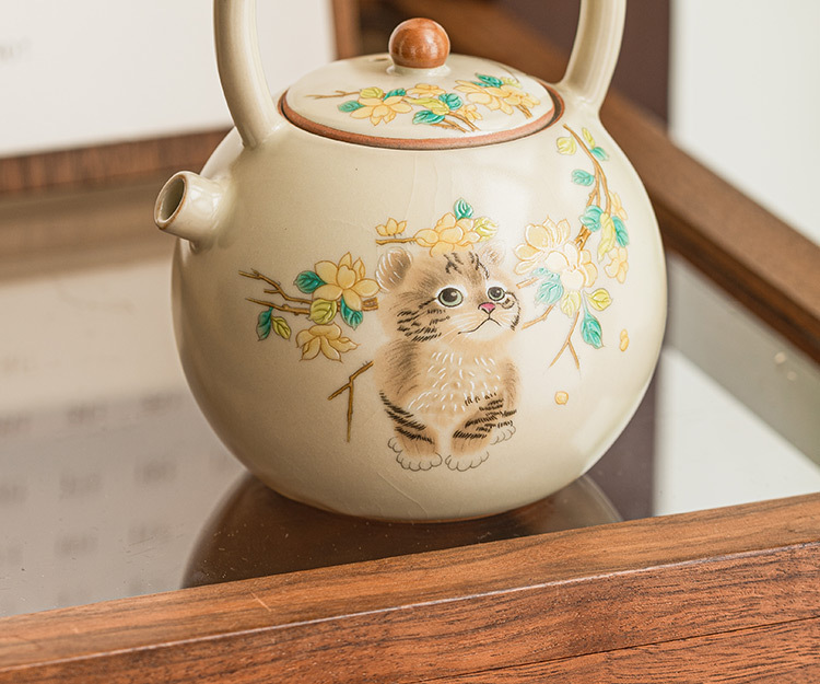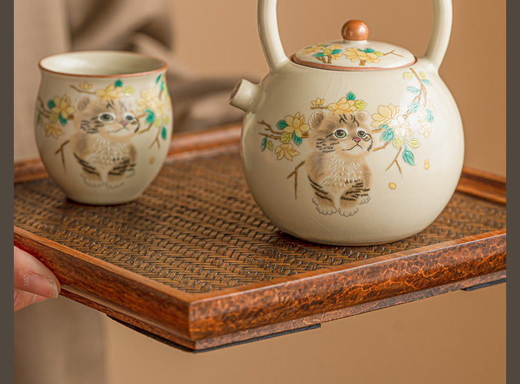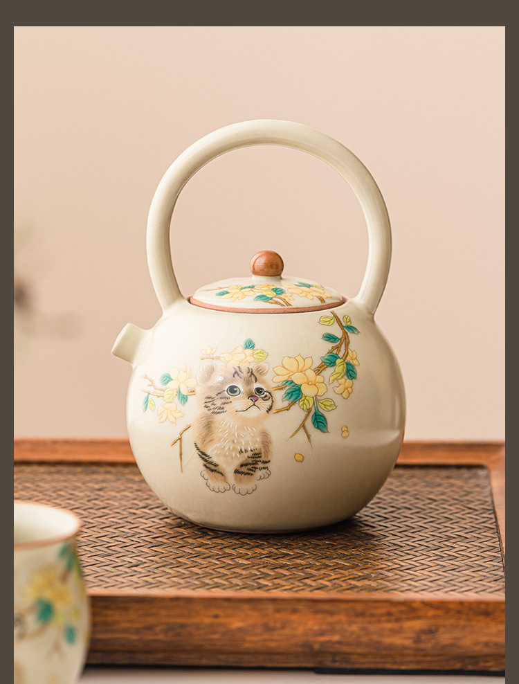 - Bộ dụng cụ trà ấm trà ấm trà ấm trà nhỏ pha trà gia dụng ấm đơn có nắp mở bằng gốm Sứ có thể nâng