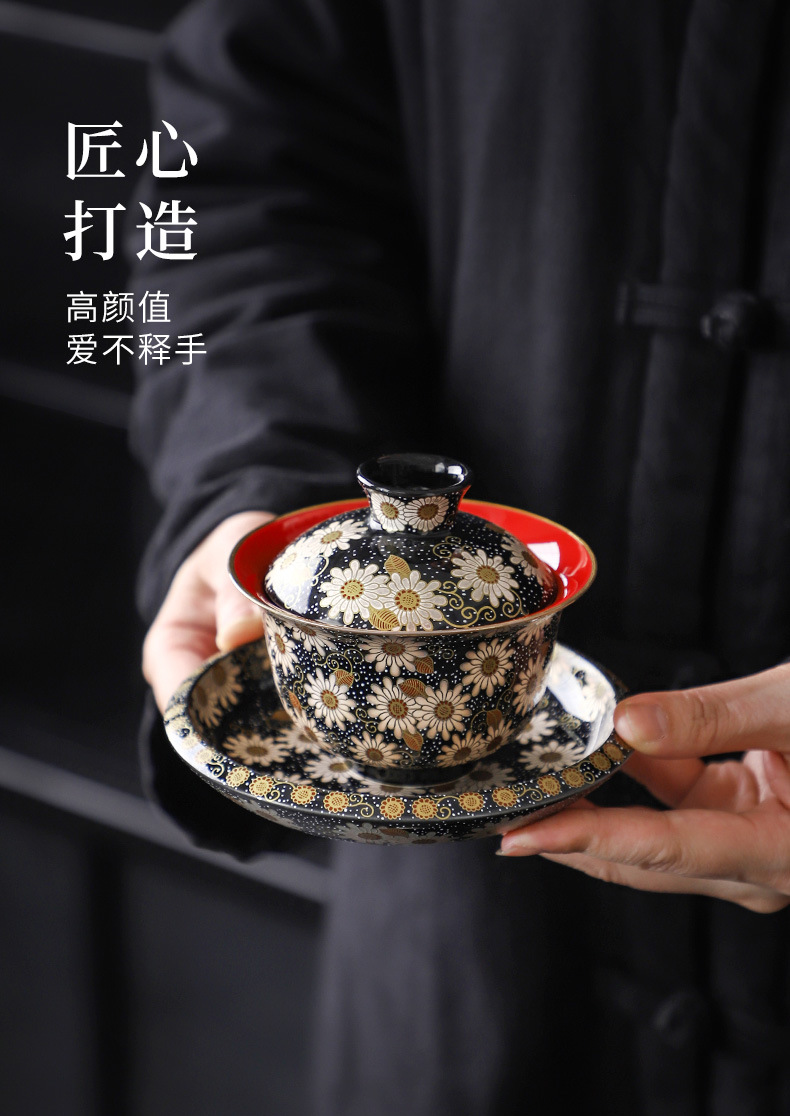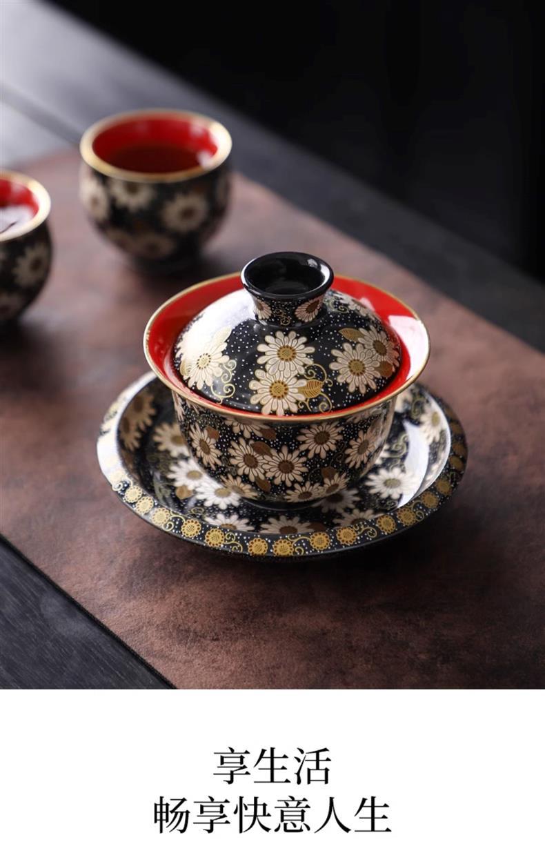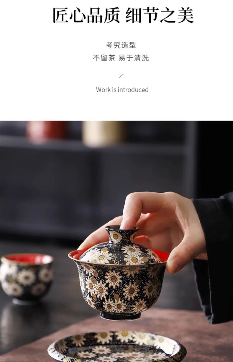 - Bộ dụng cụ trà cao cấp ba nắp Jingdezhen Bộ tách trà gốm sứ tách trà bát pha trà có nắp bán buôn tinh tế
